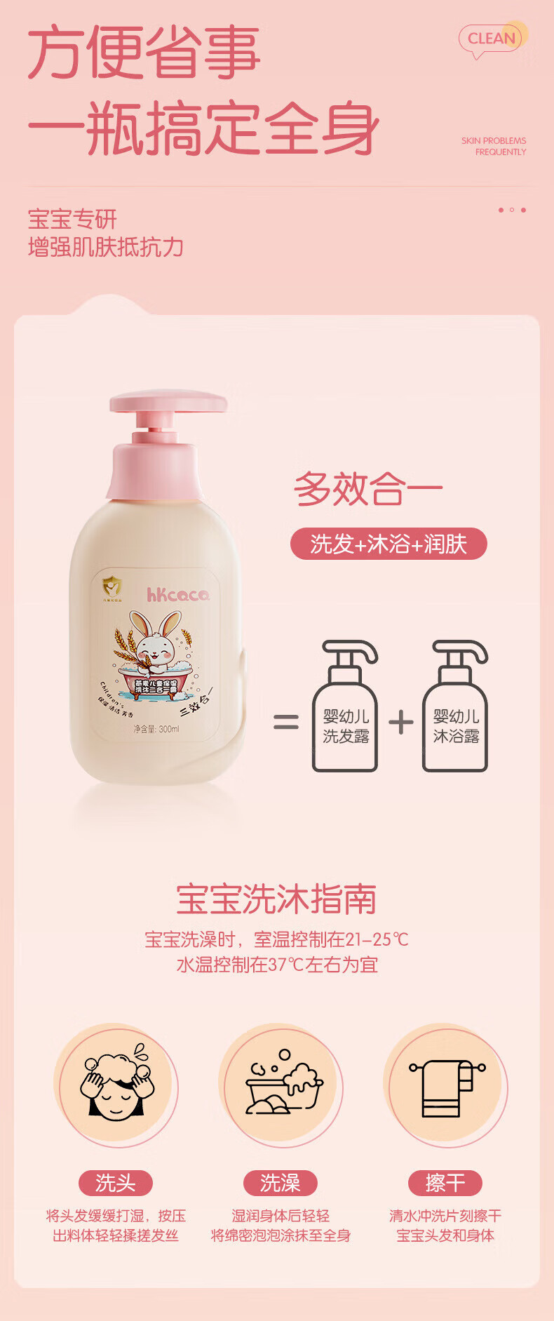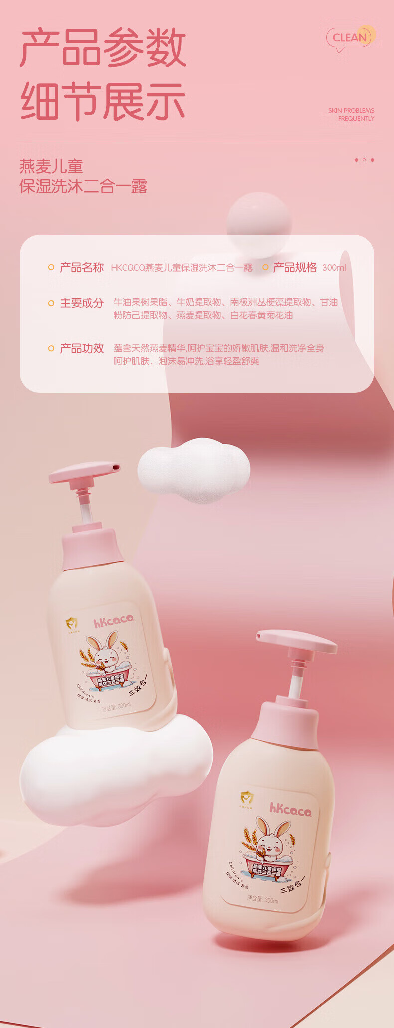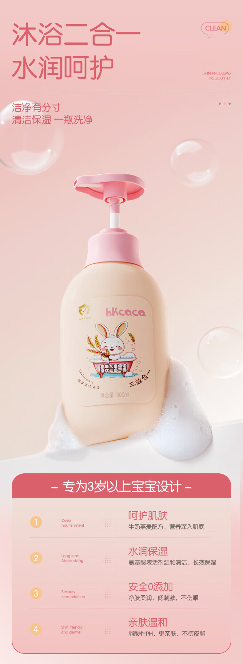 HKCQCQ燕麦牛奶洗沐二合一宝宝专用不肤 燕麦牛奶味儿宝宝洗沐合一300ml