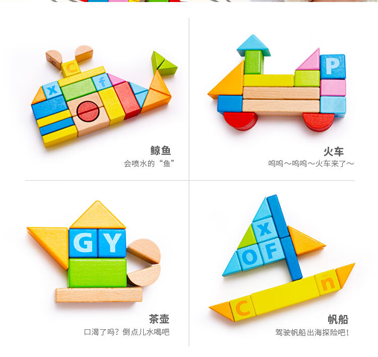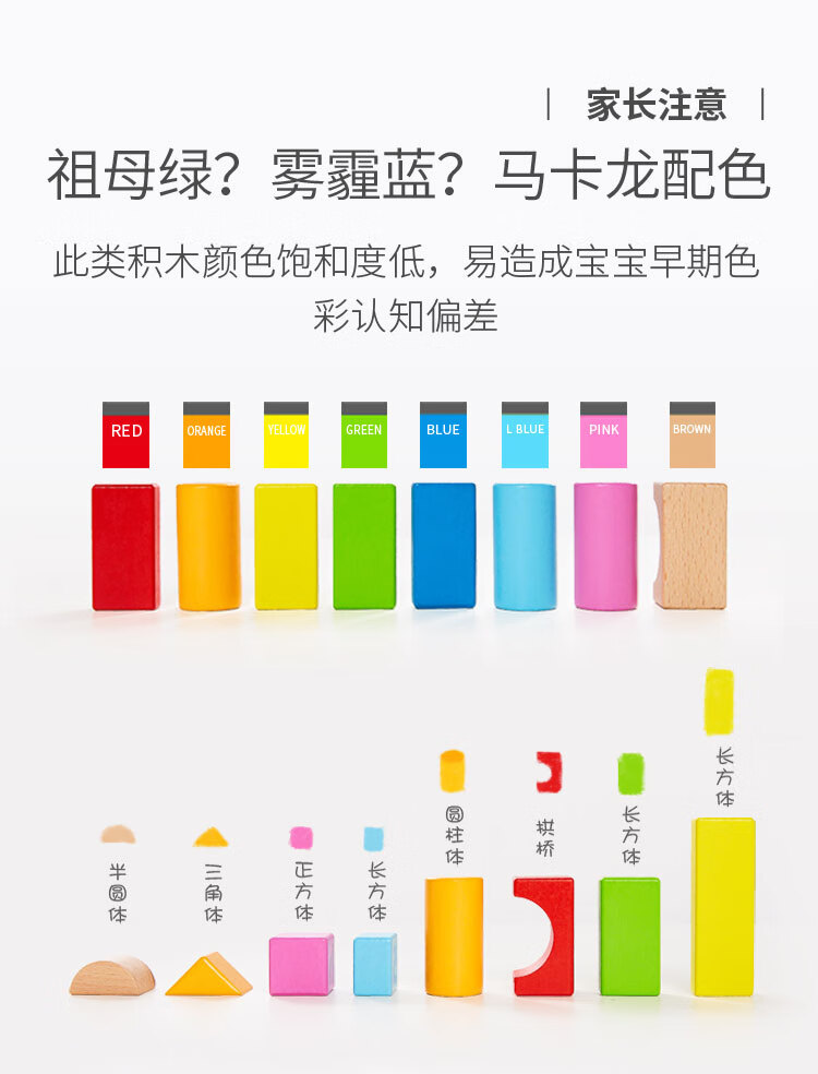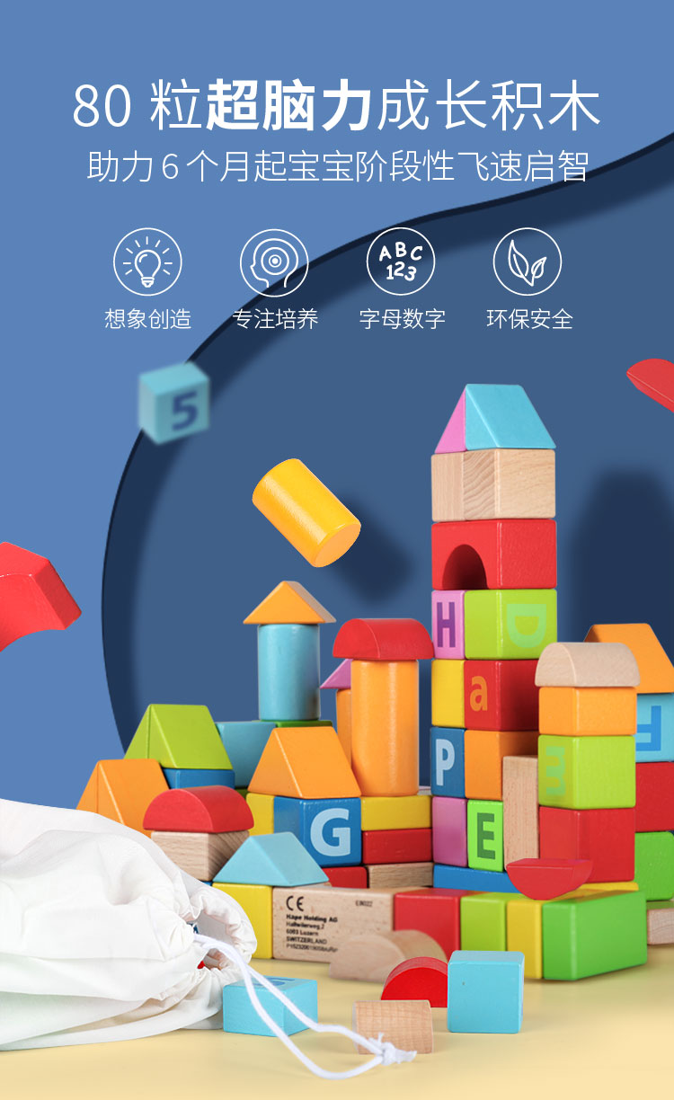 Hape木质积木 大颗粒自由拼装早教启蒙 益智玩具儿童礼物 80粒盒装积木 高密度山毛榉 1-3Y