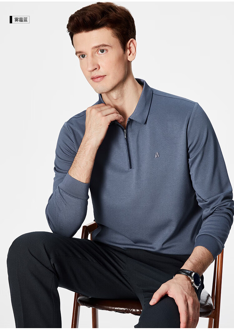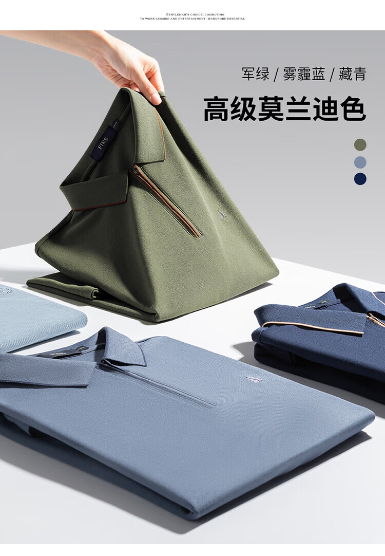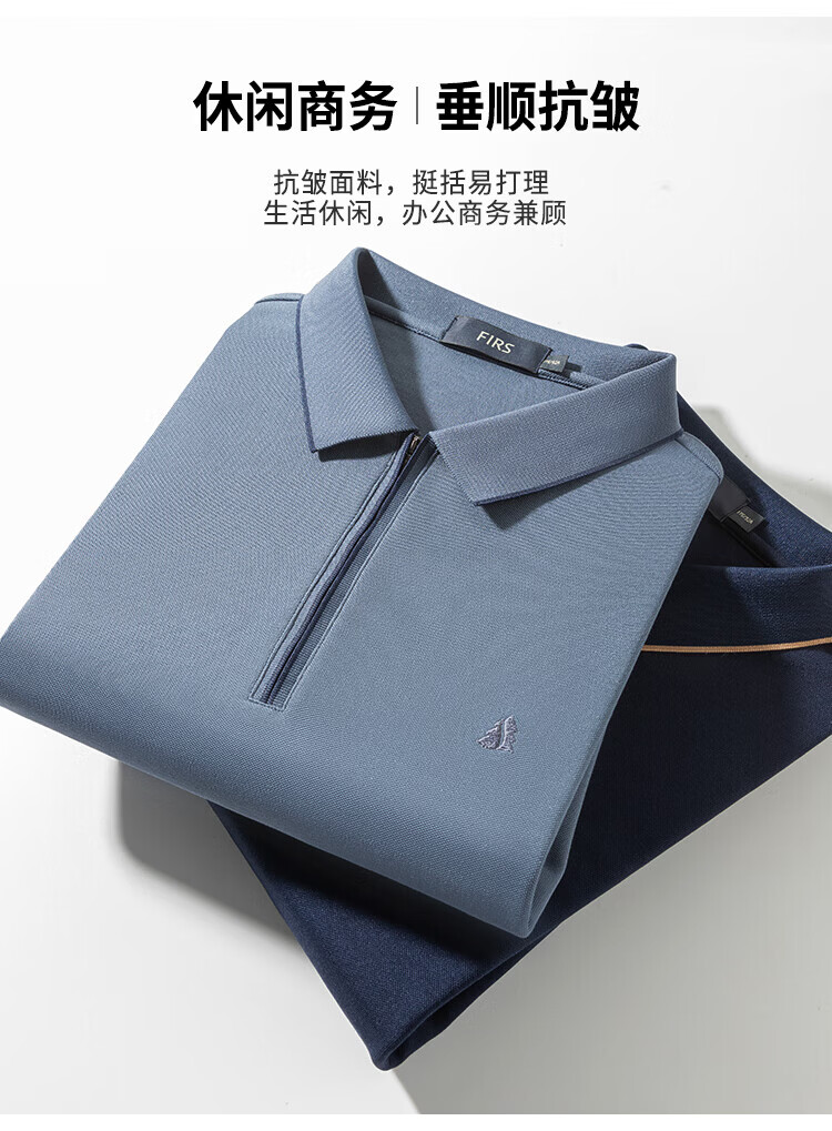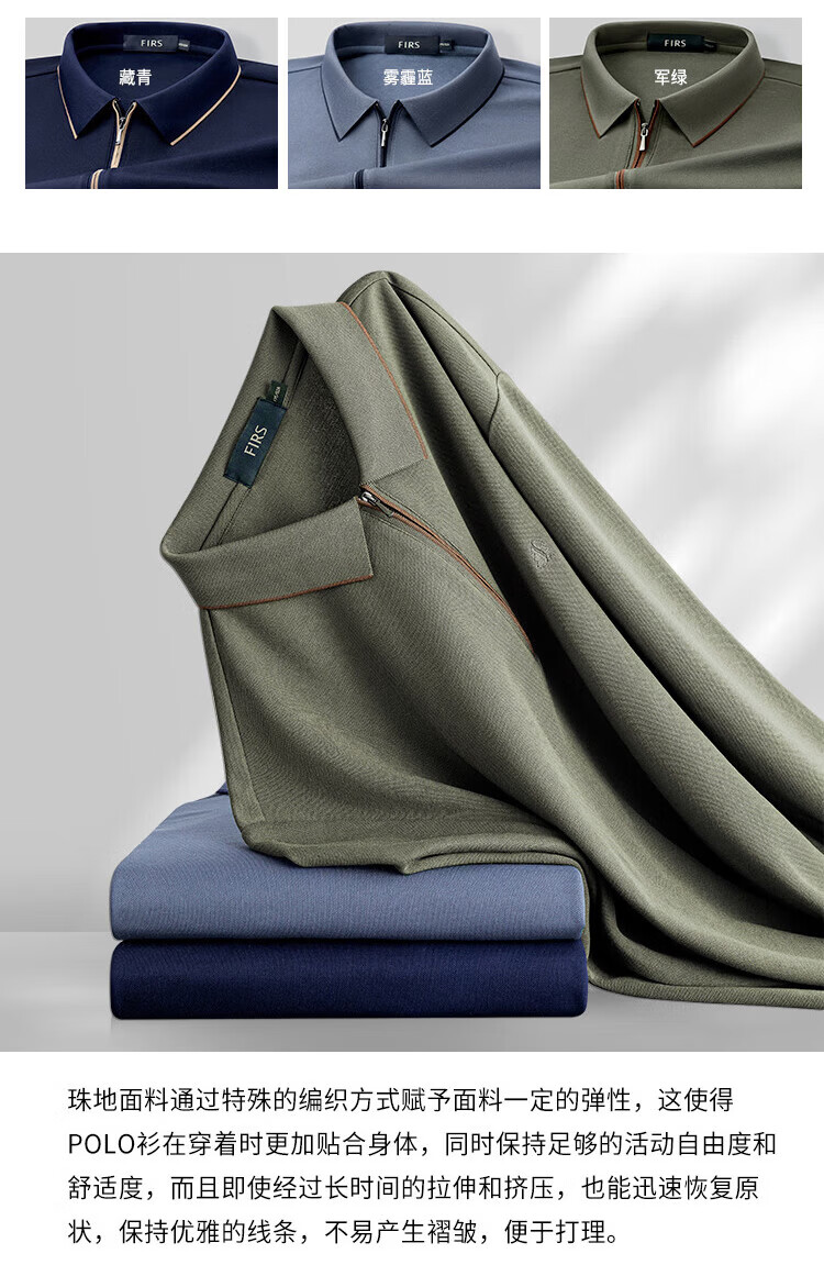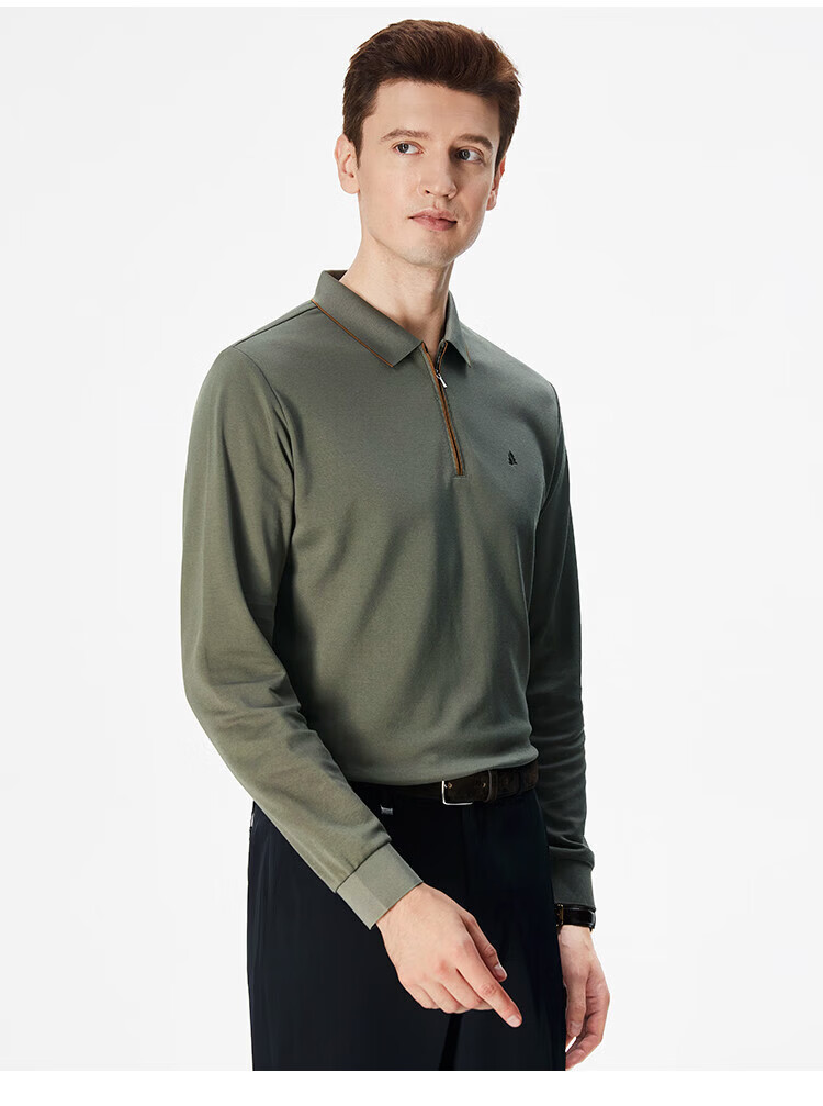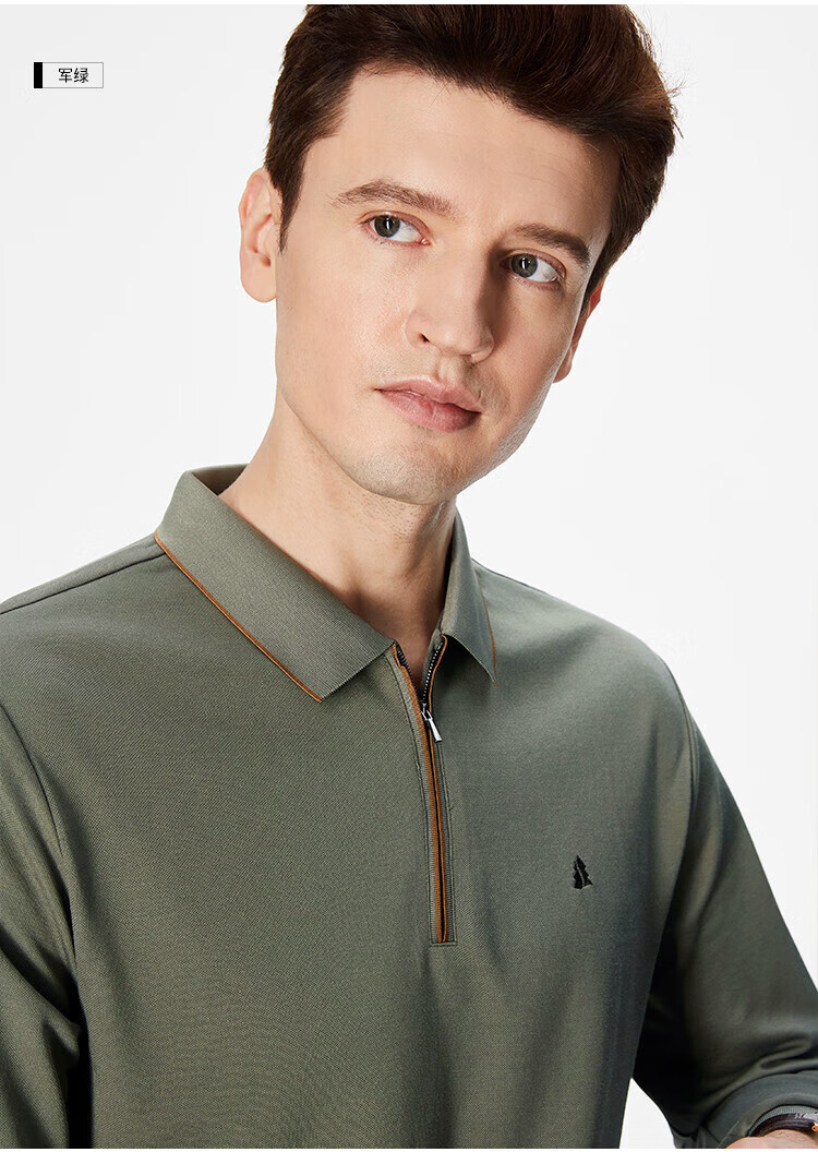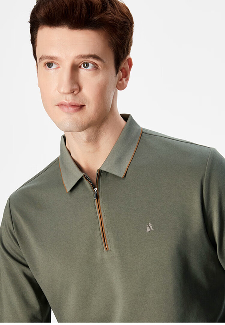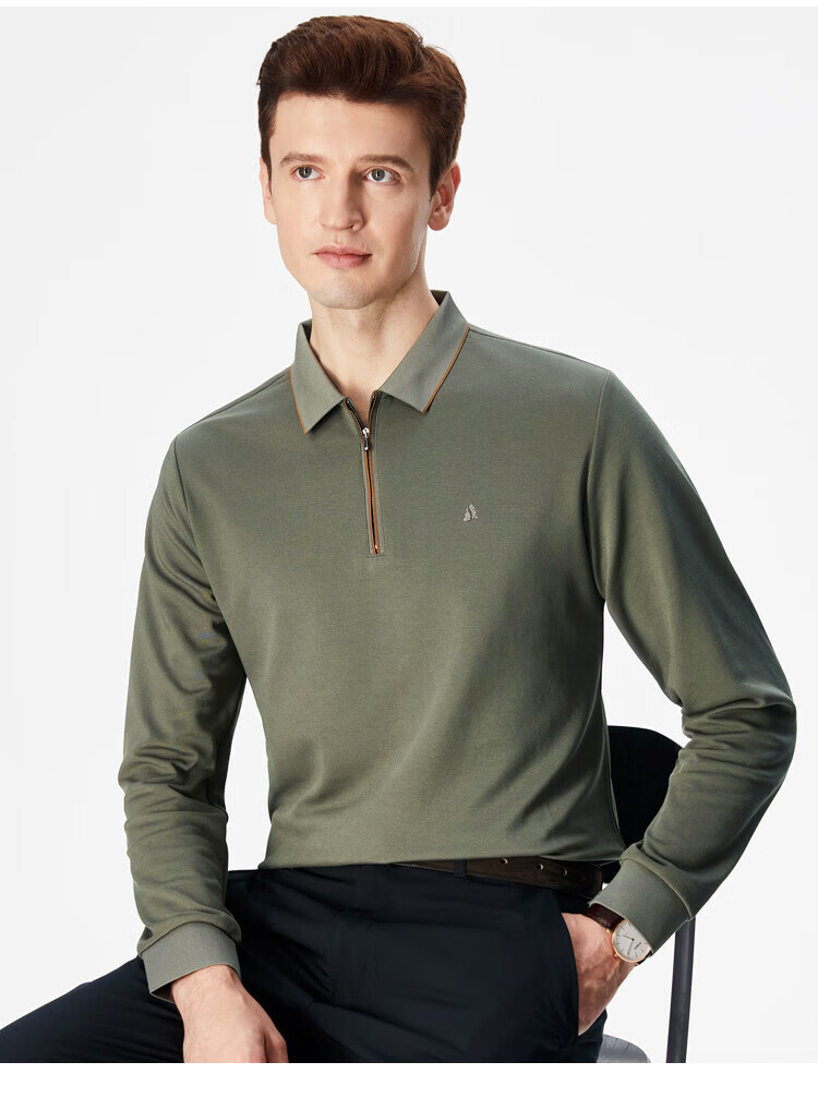杉杉(FIRS)POLO衫长袖男春秋款商务休闲打底上衣亲肤舒适翻领刺绣衣服男装 军绿 M (170/88A)