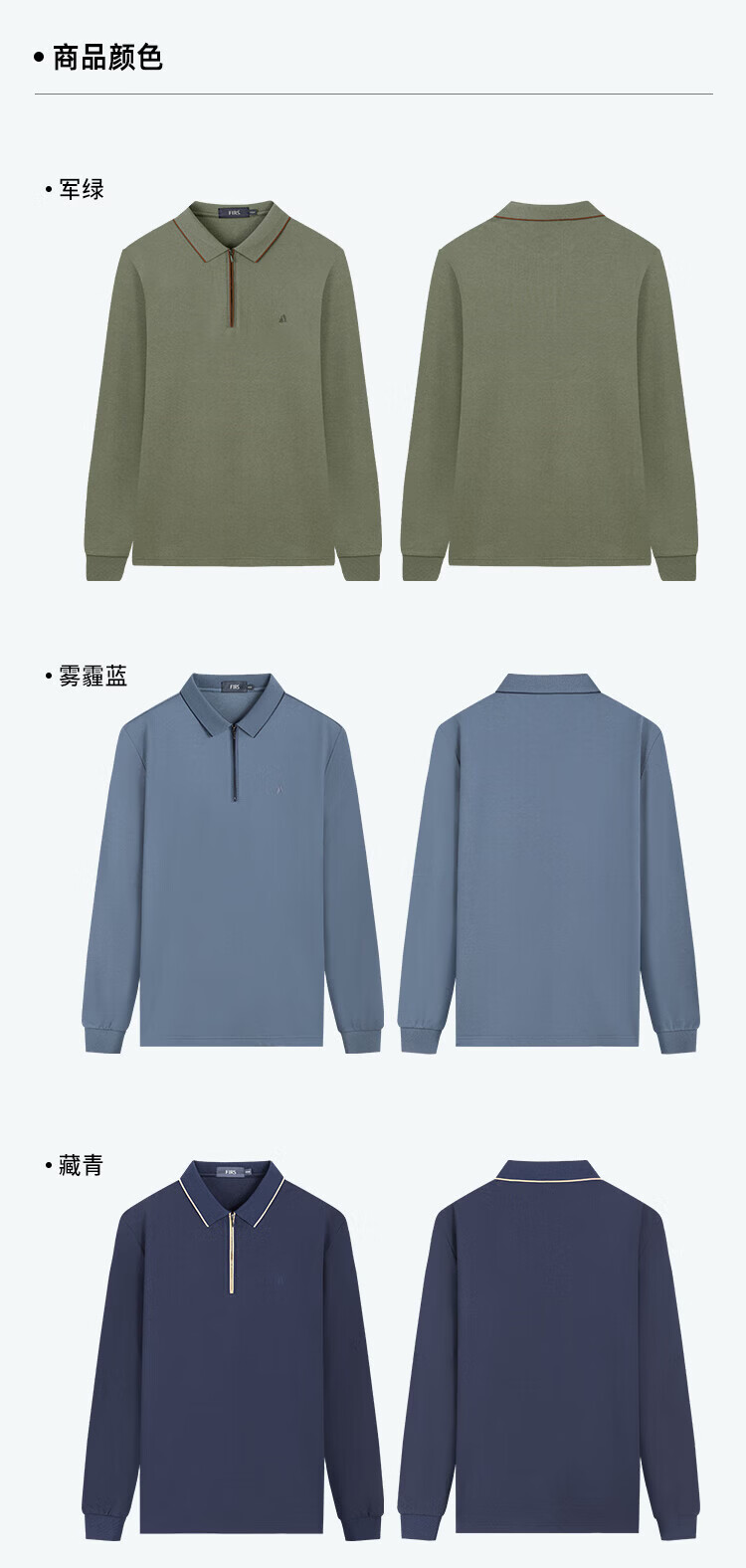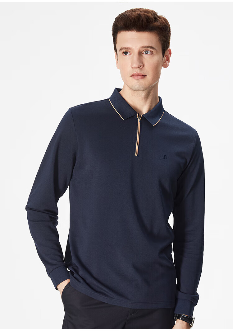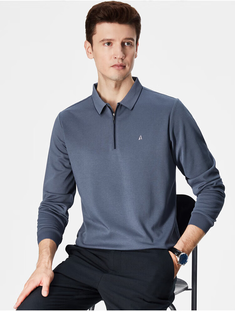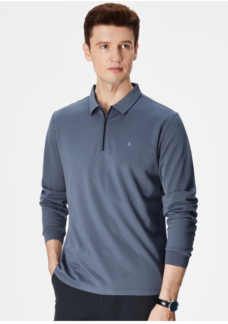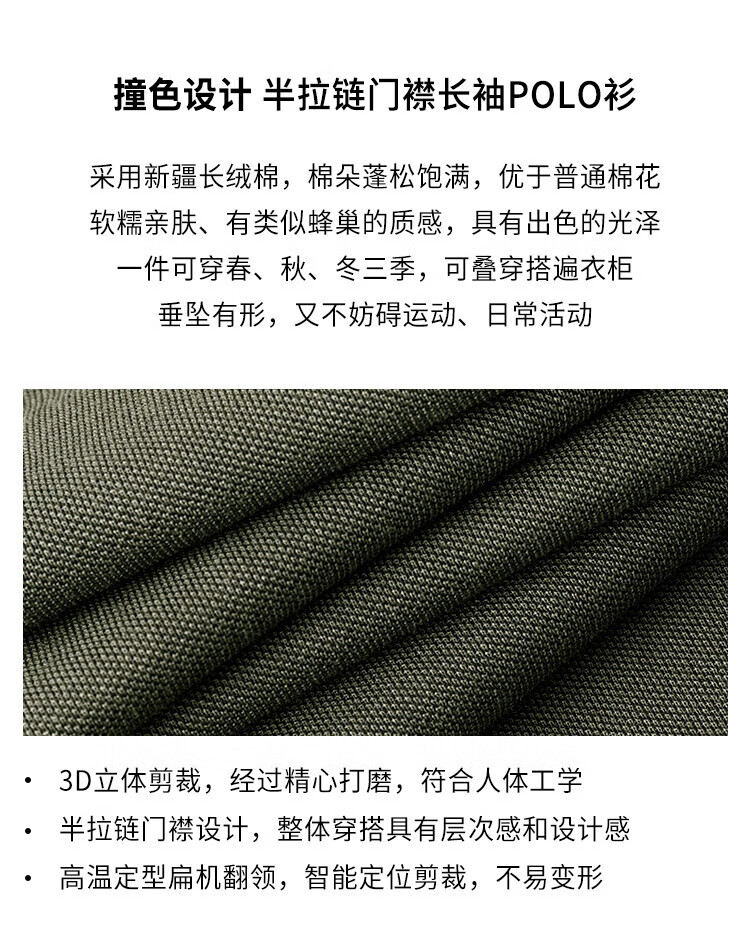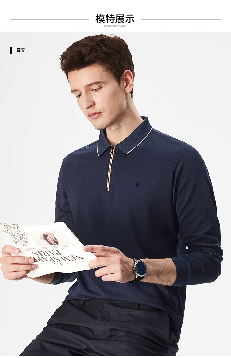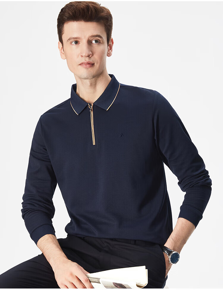 杉杉(FIRS)POLO衫长袖男春秋款商务休闲打底上衣亲肤舒适翻领刺绣衣服男装 军绿 M (170/88A)