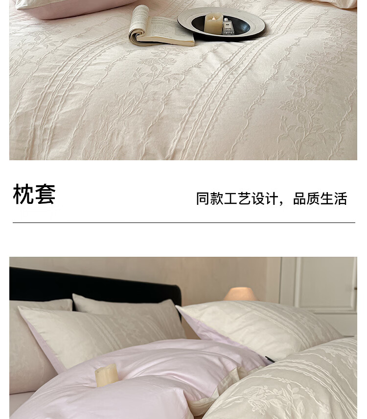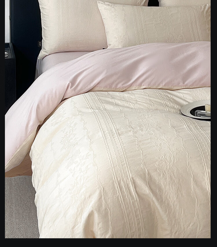 ROLAND LIVE高级感春夏全棉厚织大提花轻奢四件套被套床单家用纯棉床上用品 KZ 全棉提花四件套-克拉拉香槟驼 标准 床单款 【被套200*230cm】