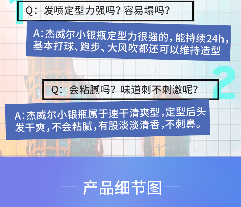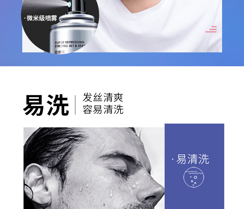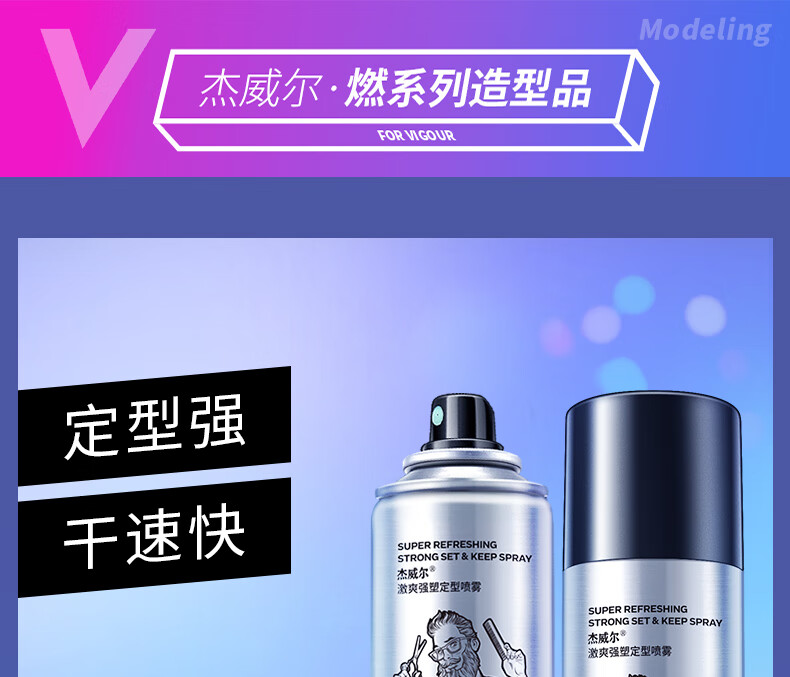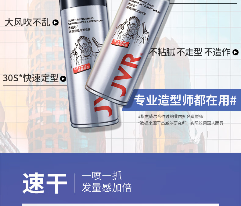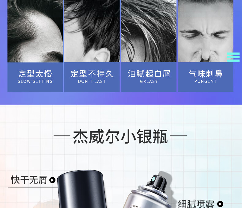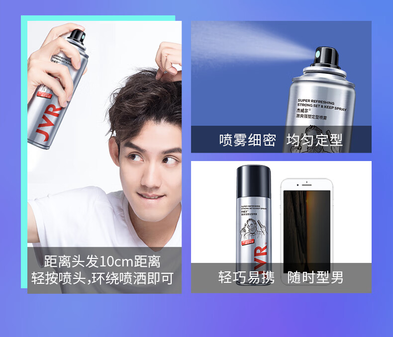 杰威尔男士发胶定型喷雾造型干胶发喷持久定型发蜡发泥蓬松旅行装80ml