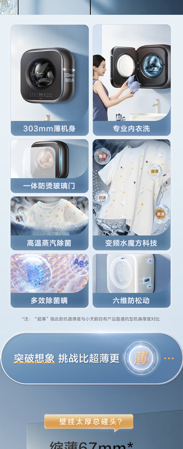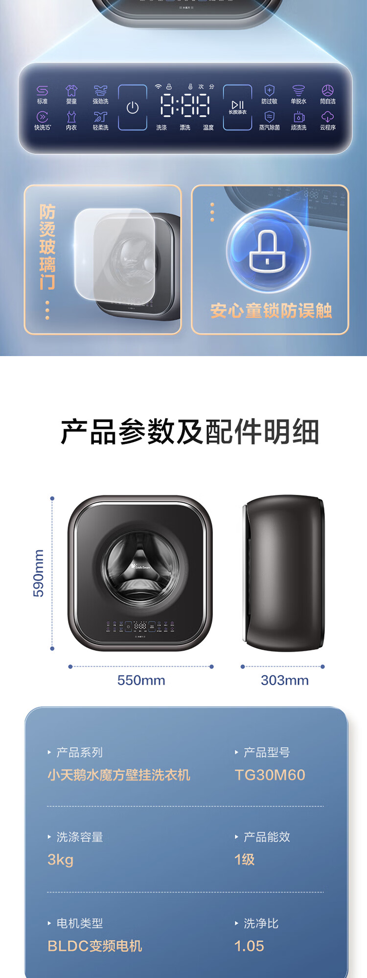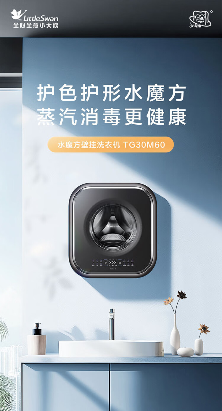 小天鹅(LittleSwan)小海绵2.0轻享版 内衣洗衣机小型全自动家用 3KG壁挂 婴儿 迷你 超薄 TG30M60 以旧换新 国家补贴