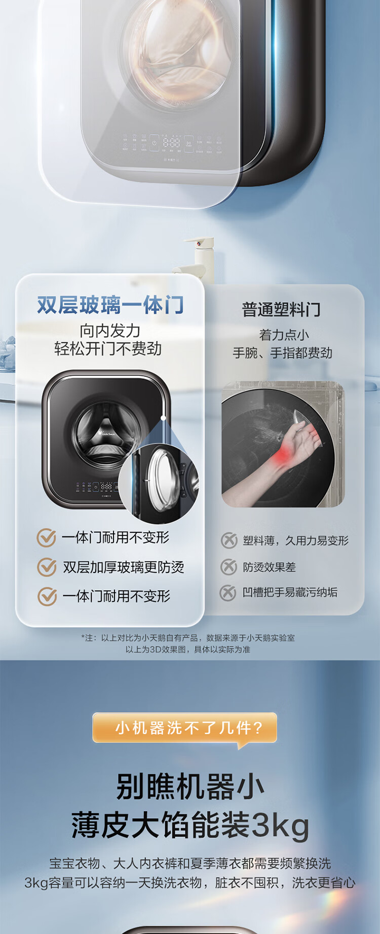 小天鹅(LittleSwan)小海绵2.0 内衣洗衣机小型全自动家用 3KG壁挂洗烘一体 婴儿 迷你 TD30M80W 以旧换新 国家补贴