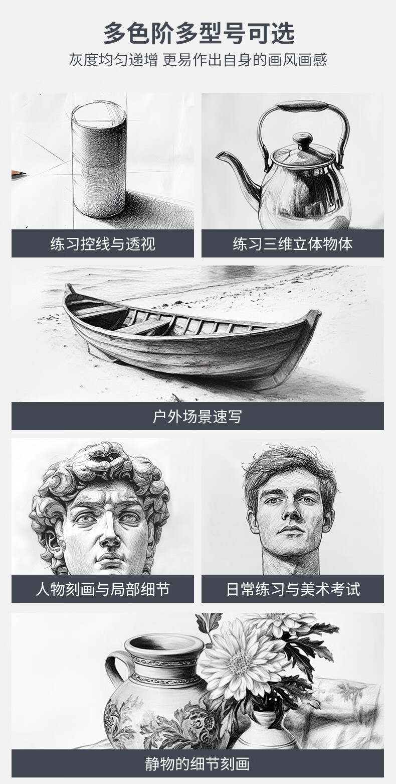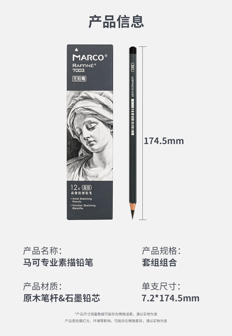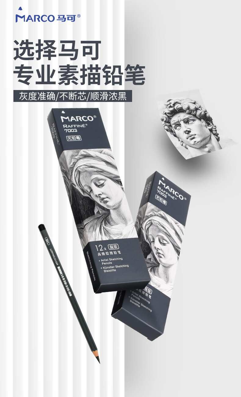 马可(MARCO)素描铅笔12支混装全套原木专业美术六角杆手绘速写绘图笔学生考试初学者画画专用美术写生