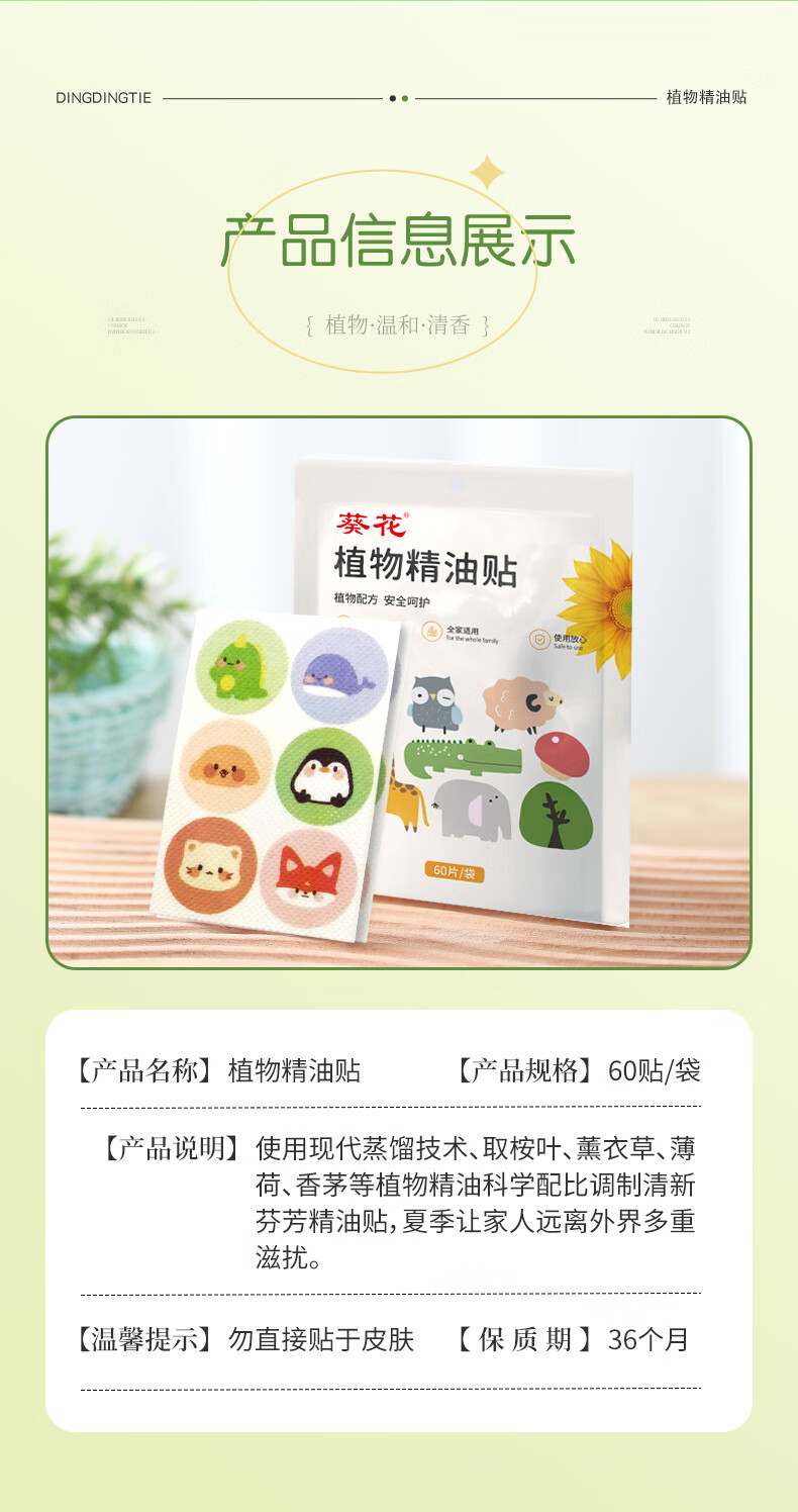 葵花植物精油防蚊贴儿童婴儿防蚊贴宝宝防护神器儿童成人专用驱蚊贴纸 葵花植物精油贴【5袋300贴】