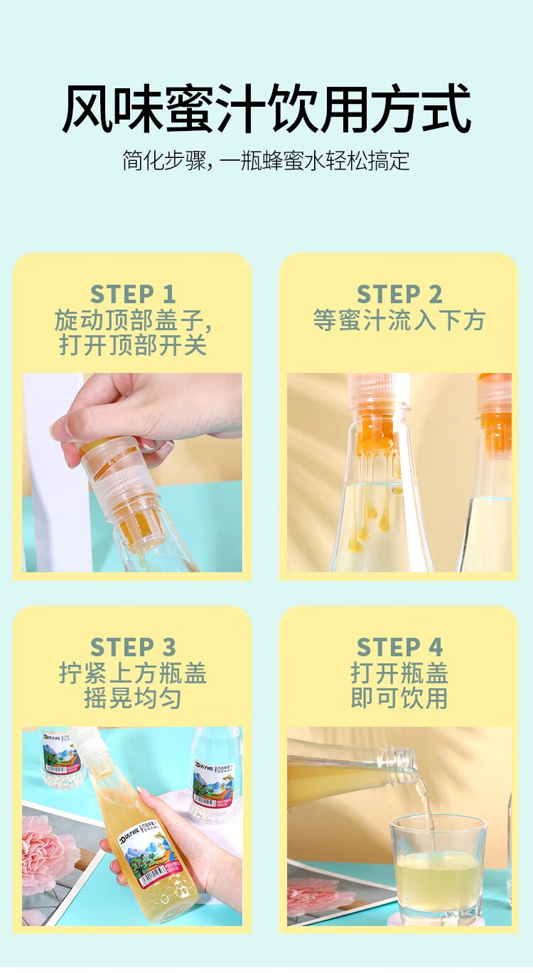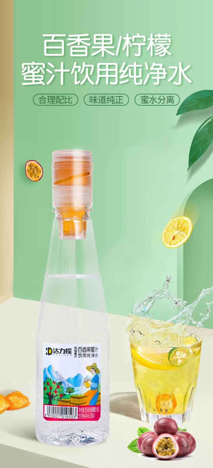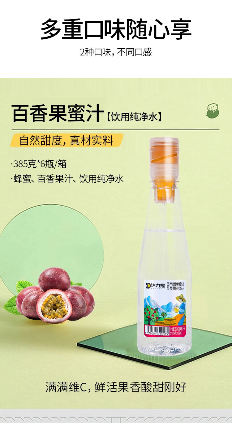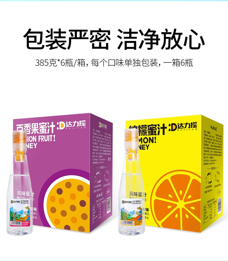 达力摇蜂蜜水385g*6瓶新鲜柠檬小青柑百香果蜜汁分离饮料 百香果蜂蜜水385g*6瓶【整箱装】