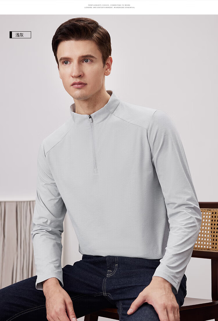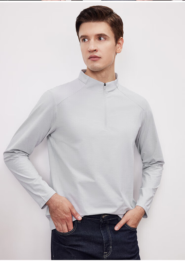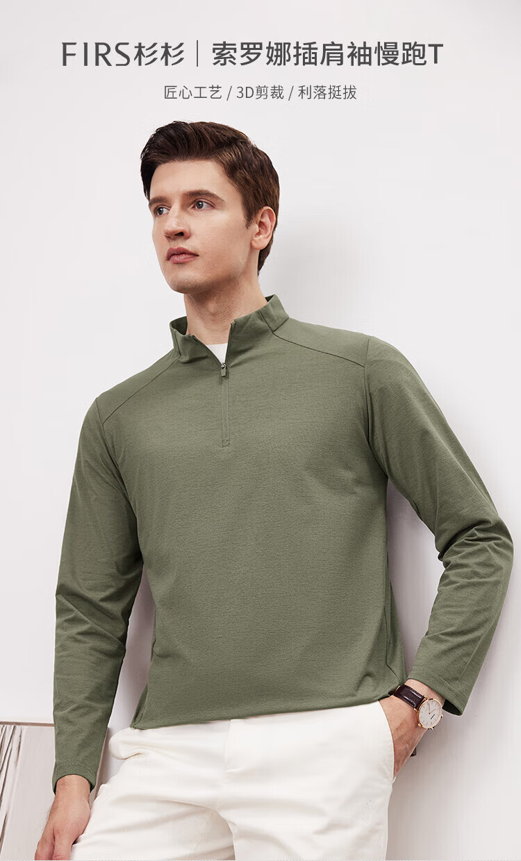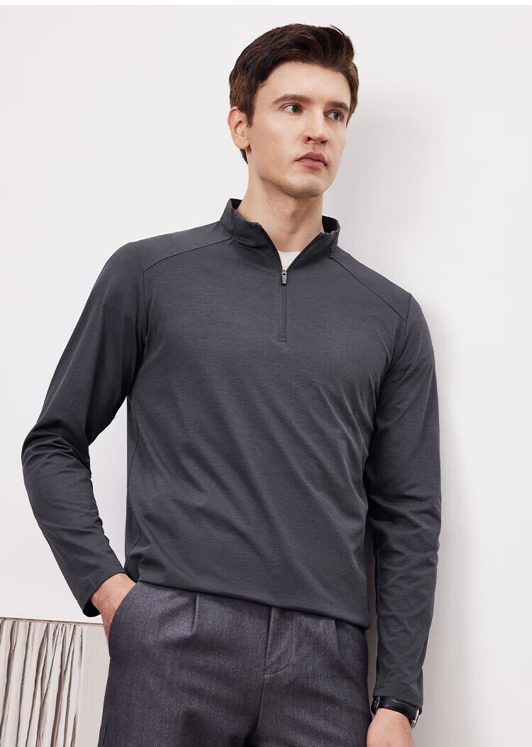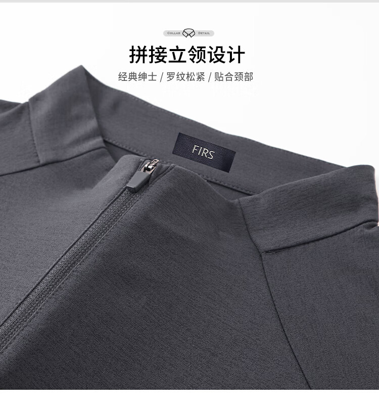 杉杉(FIRS)2025春秋款拼接立领设计拉链门襟舒弹袖口索罗娜肌理慢跑长袖T恤 黑灰 L 170/88A/L
