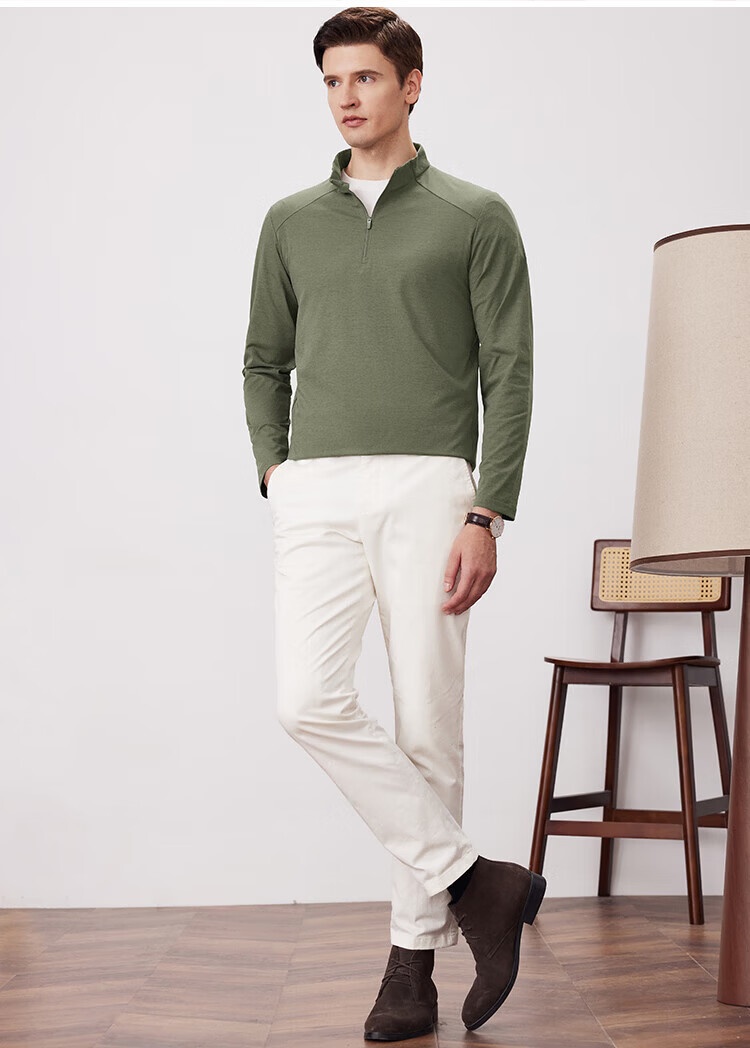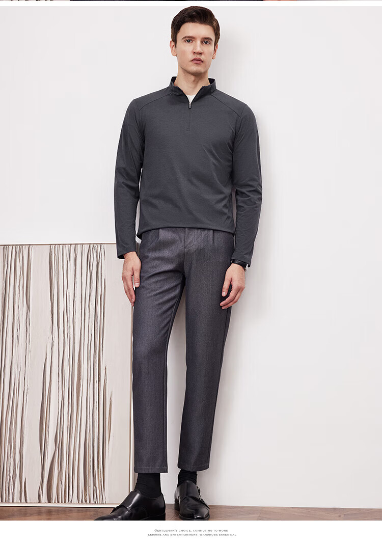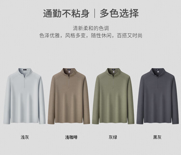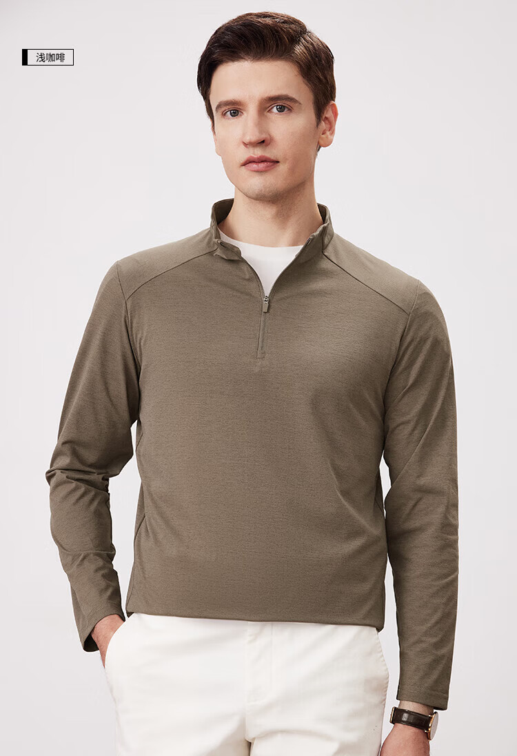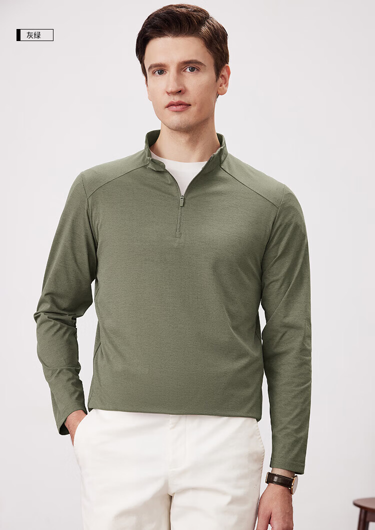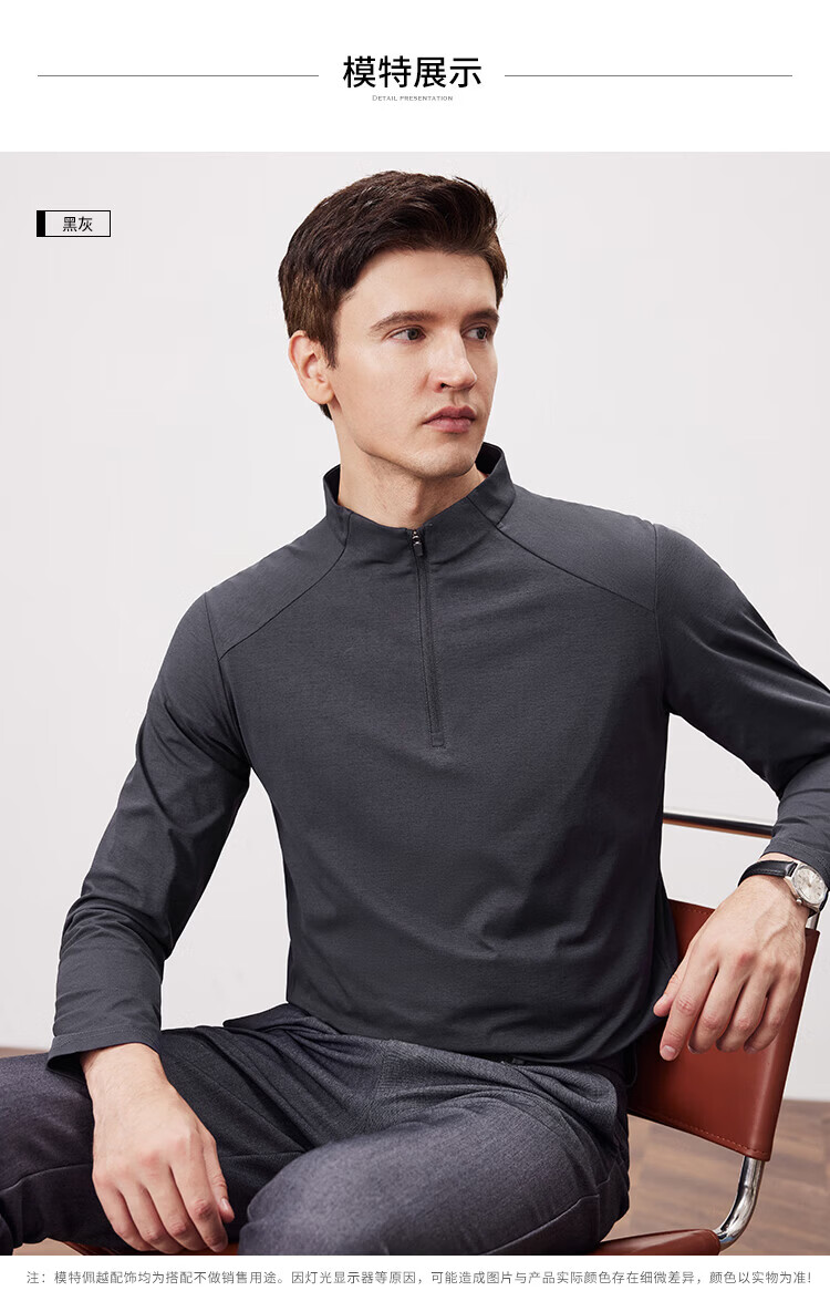 杉杉(FIRS)2025春秋款拼接立领设计拉链门襟舒弹袖口索罗娜肌理慢跑长袖T恤 黑灰 L 170/88A/L