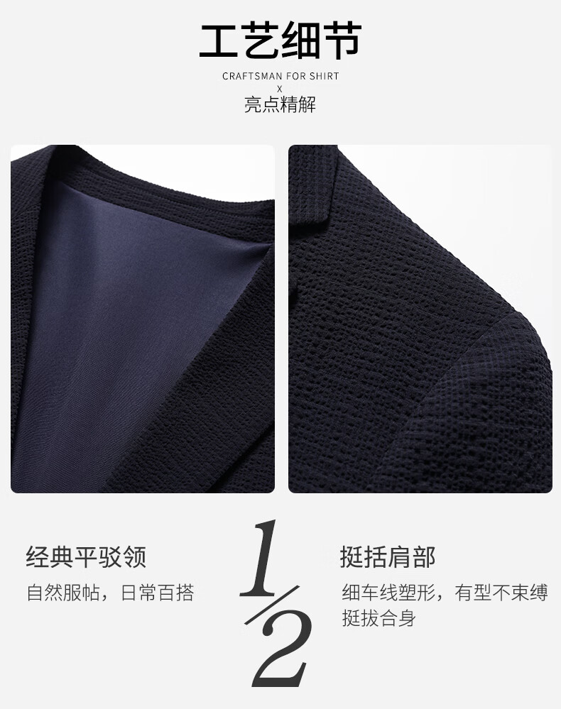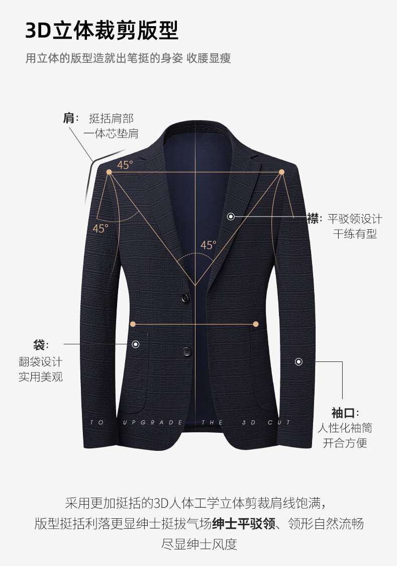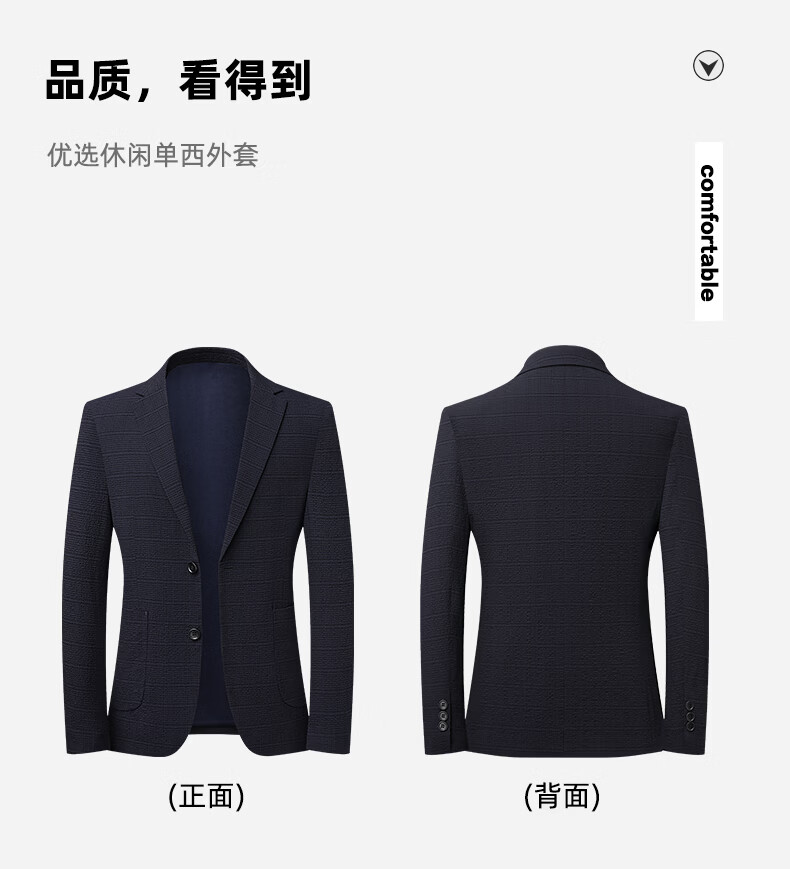 SHANSHAN杉杉西服外套2026年春季新款长袖百搭平驳领西装中青年休闲衣服男 蓝色 46 /170