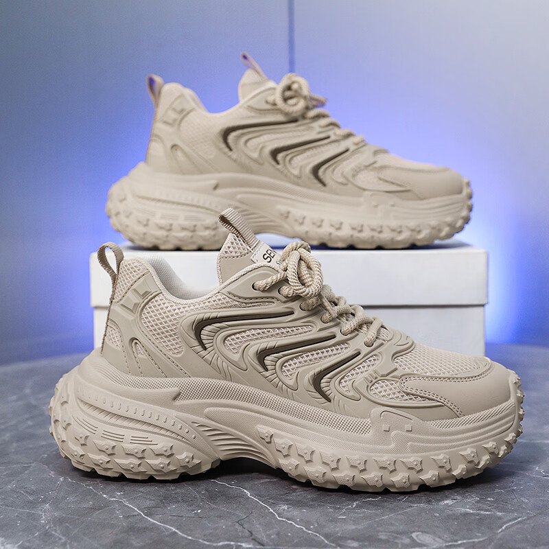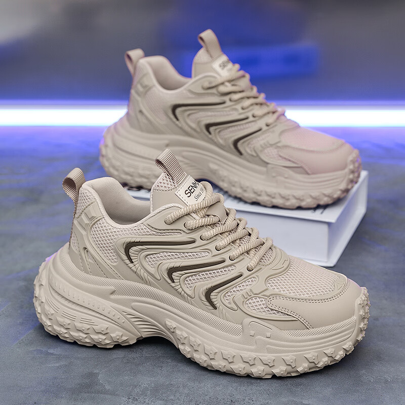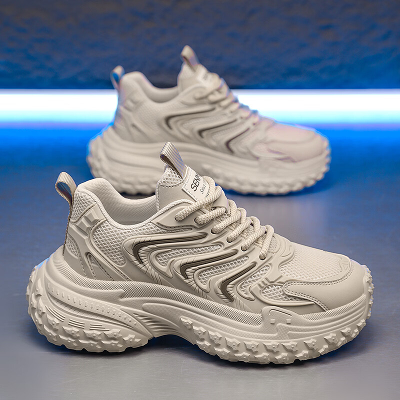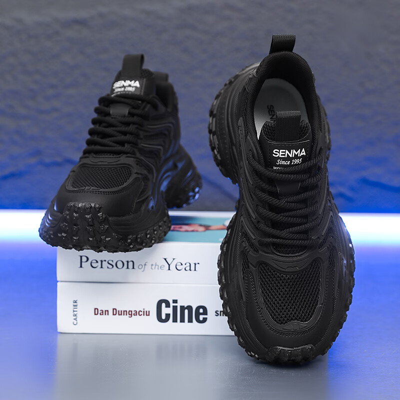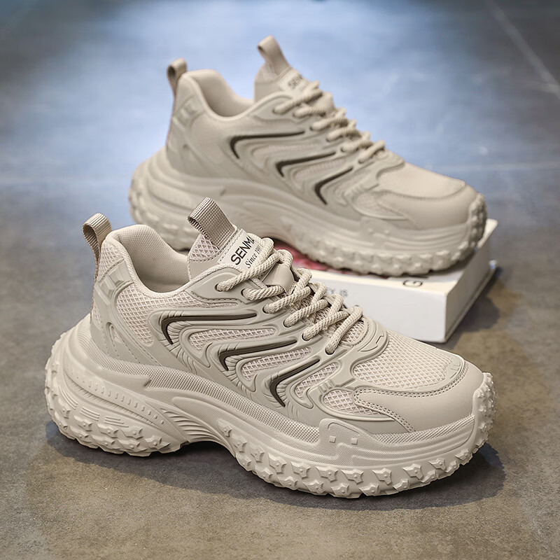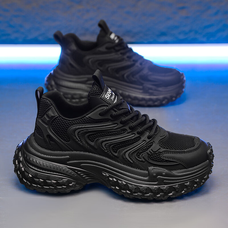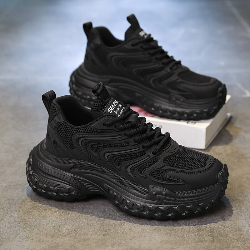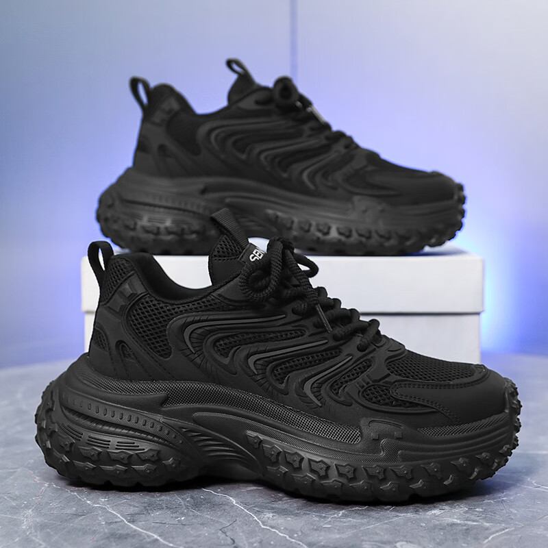森馬老爹鞋男2026新款春季百搭休闲鞋青少年增高防滑轮胎厚底运动潮鞋 黑灰【基础款】 39 标准码数/现货秒发