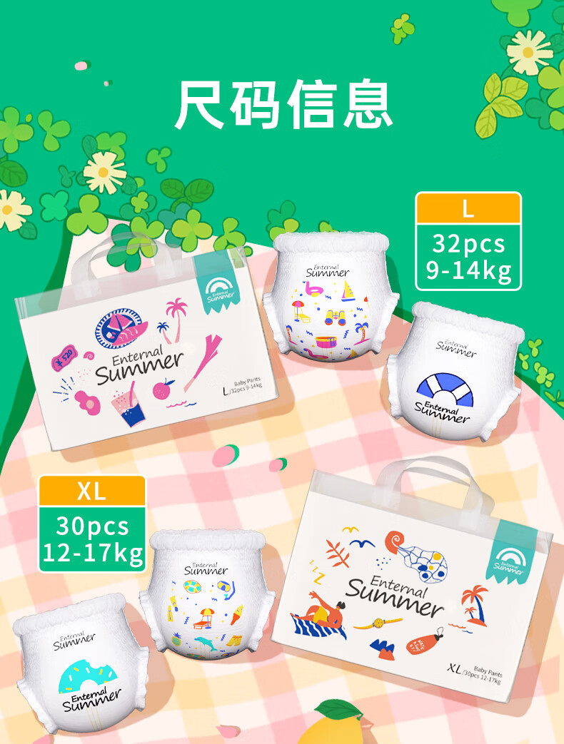 盛夏光年 夏日么么茶拉拉裤XXXL码24片(18kg+)训练裤超薄透气特大码尿不湿