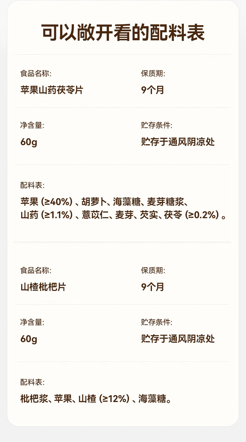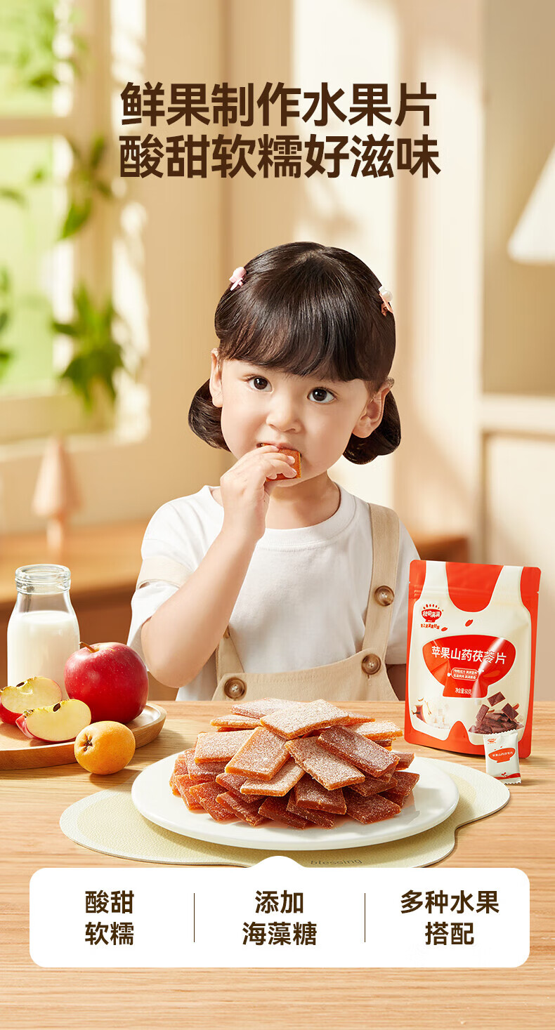 秋田满满山楂枇杷片开胃儿童零食苹果山药茯苓片水果条享婴幼儿宝宝辅食谱 苹果山药茯苓果片60g