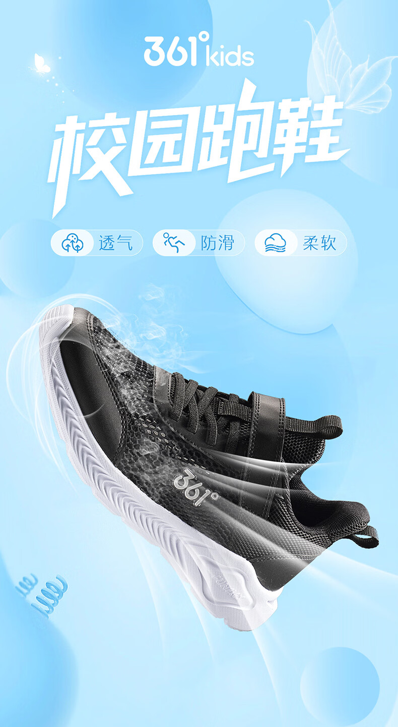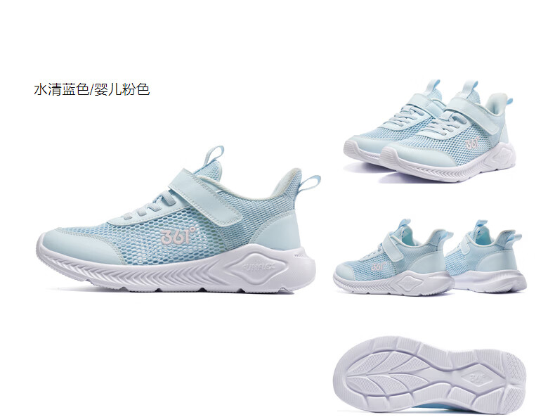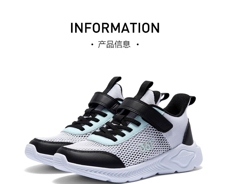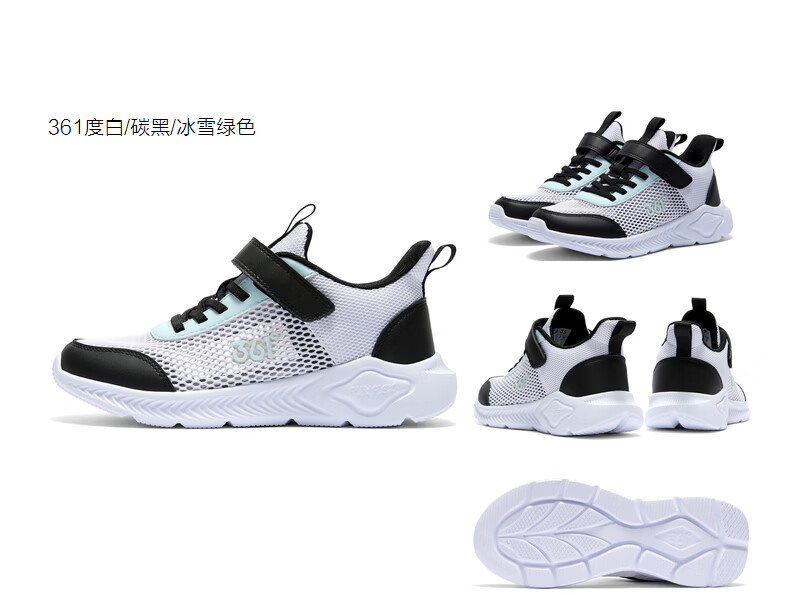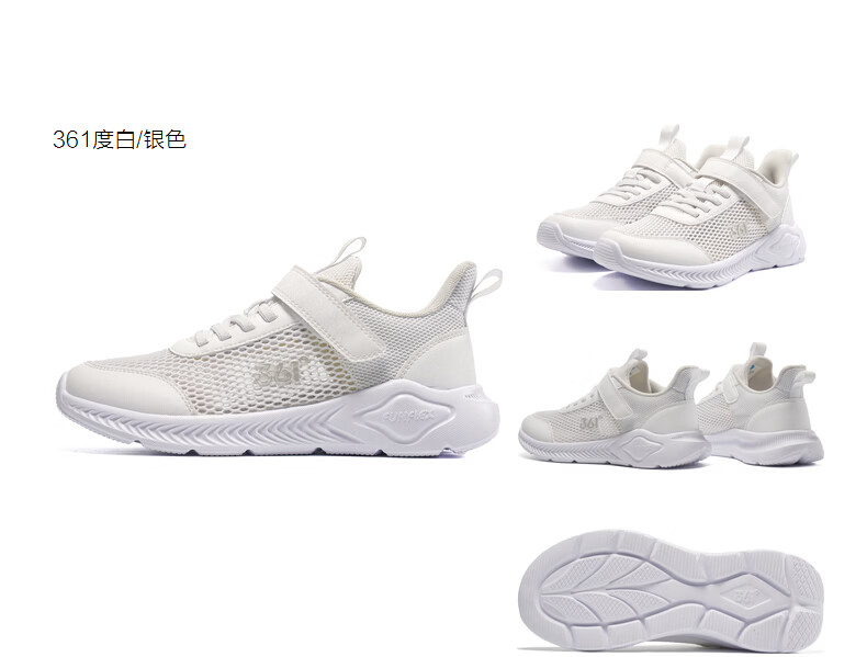 361°儿童运动鞋跑鞋2025夏季男女童3-12岁轻便大网孔跑鞋白30