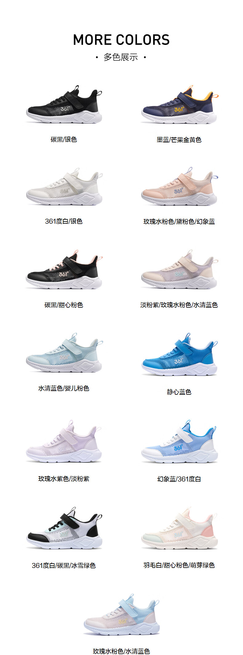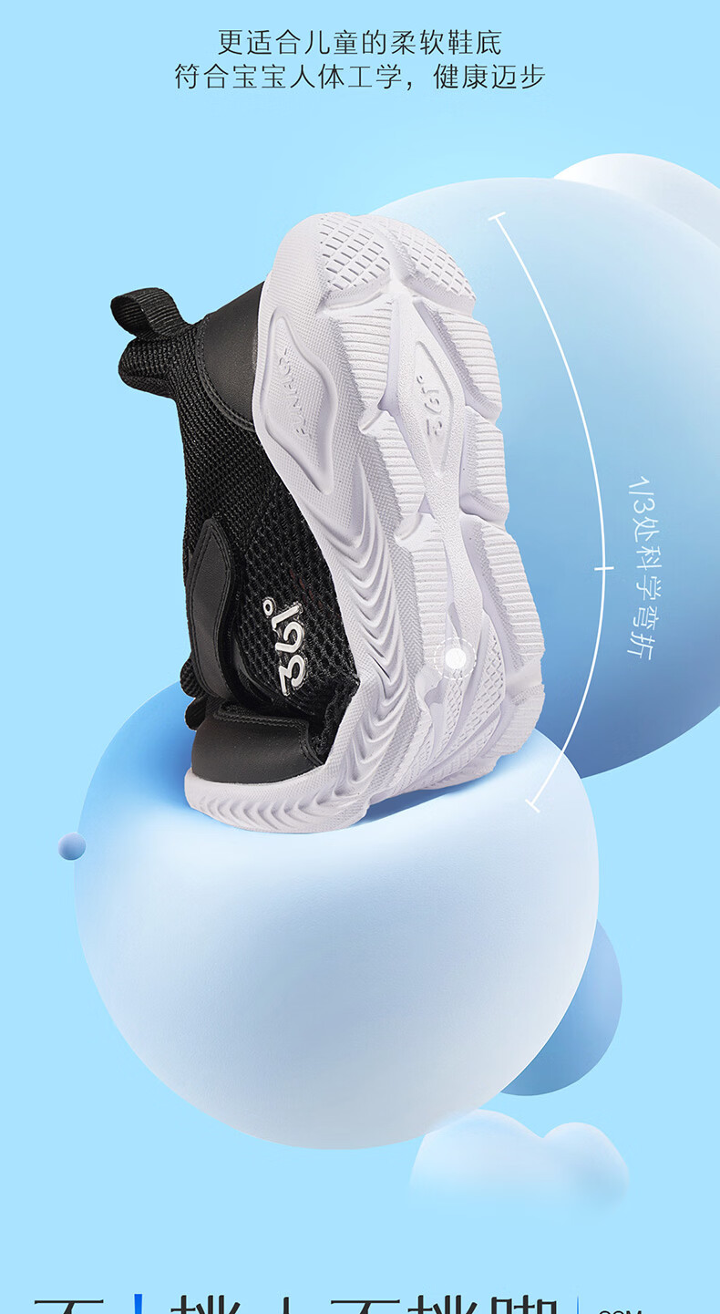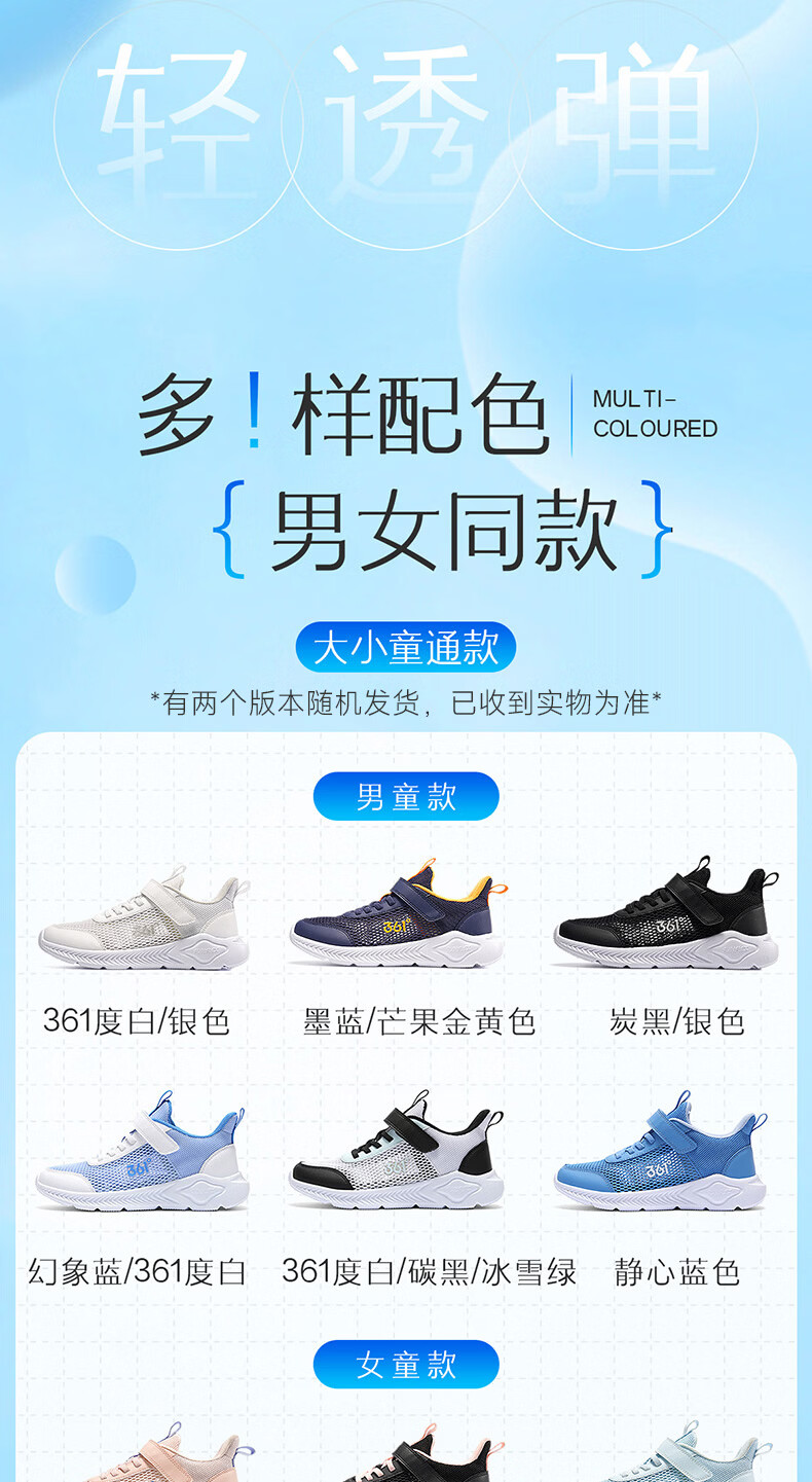 361°儿童运动鞋跑鞋2025夏季男女童3-12岁轻便大网孔跑鞋白30