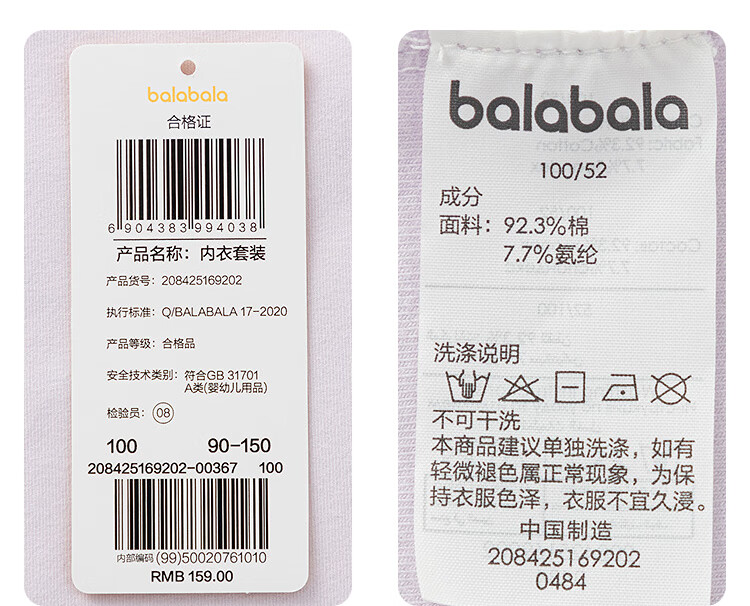 巴拉巴拉儿童内衣套装男童女童2件套新款童装秋冬舒适秋衣秋裤棉睡衣