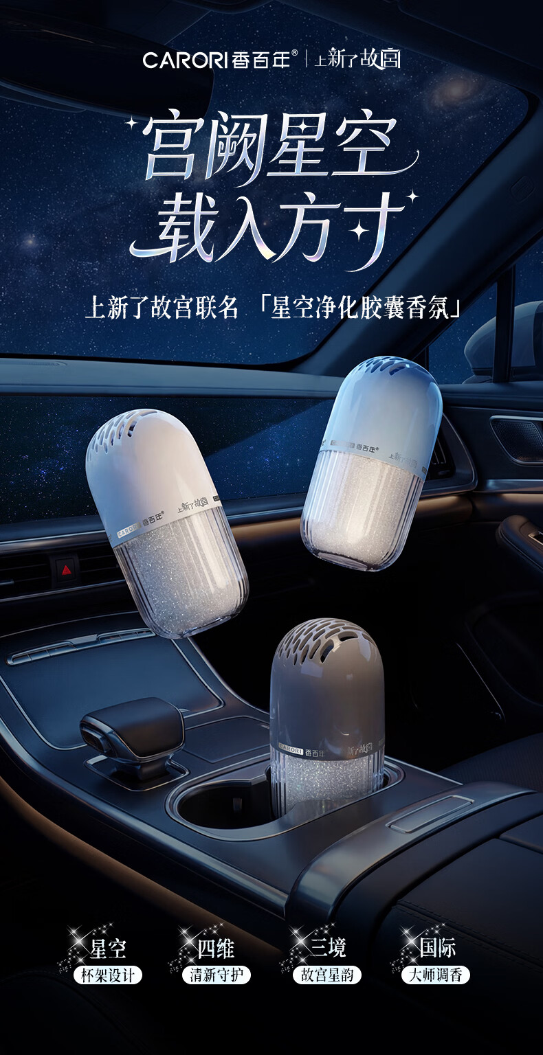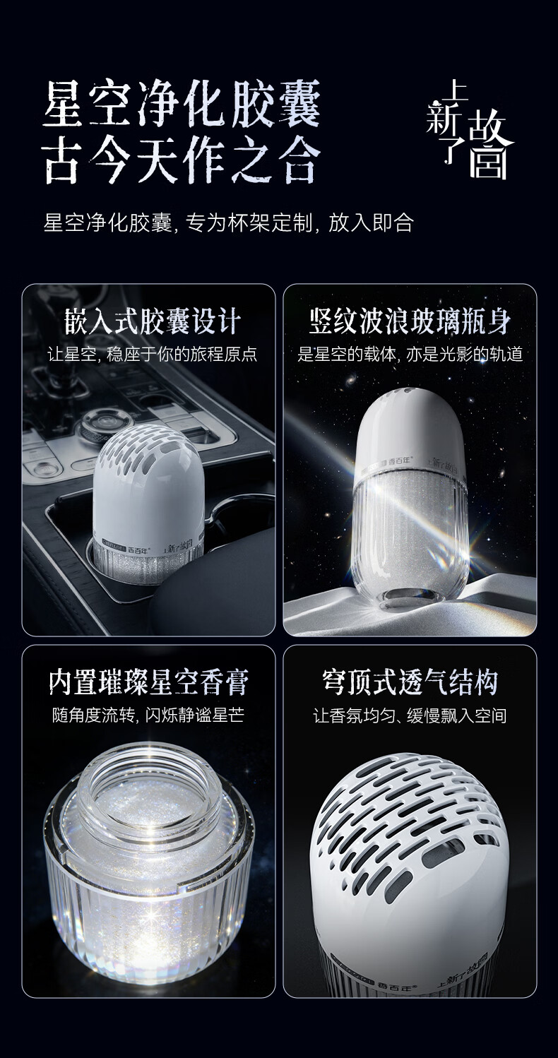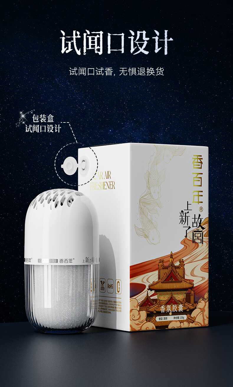 香百年车载香薰香水固体杯架式车内摆件新车内除异味香氛香膏 故宫联名款-白茶1瓶