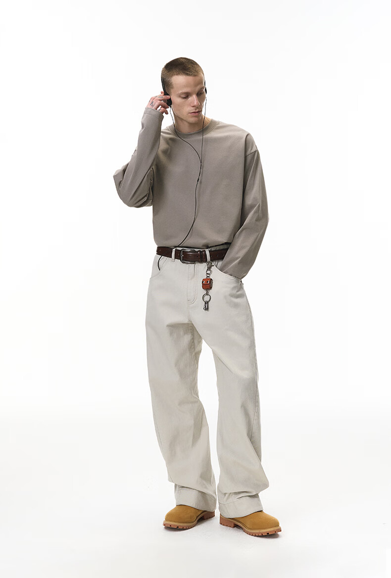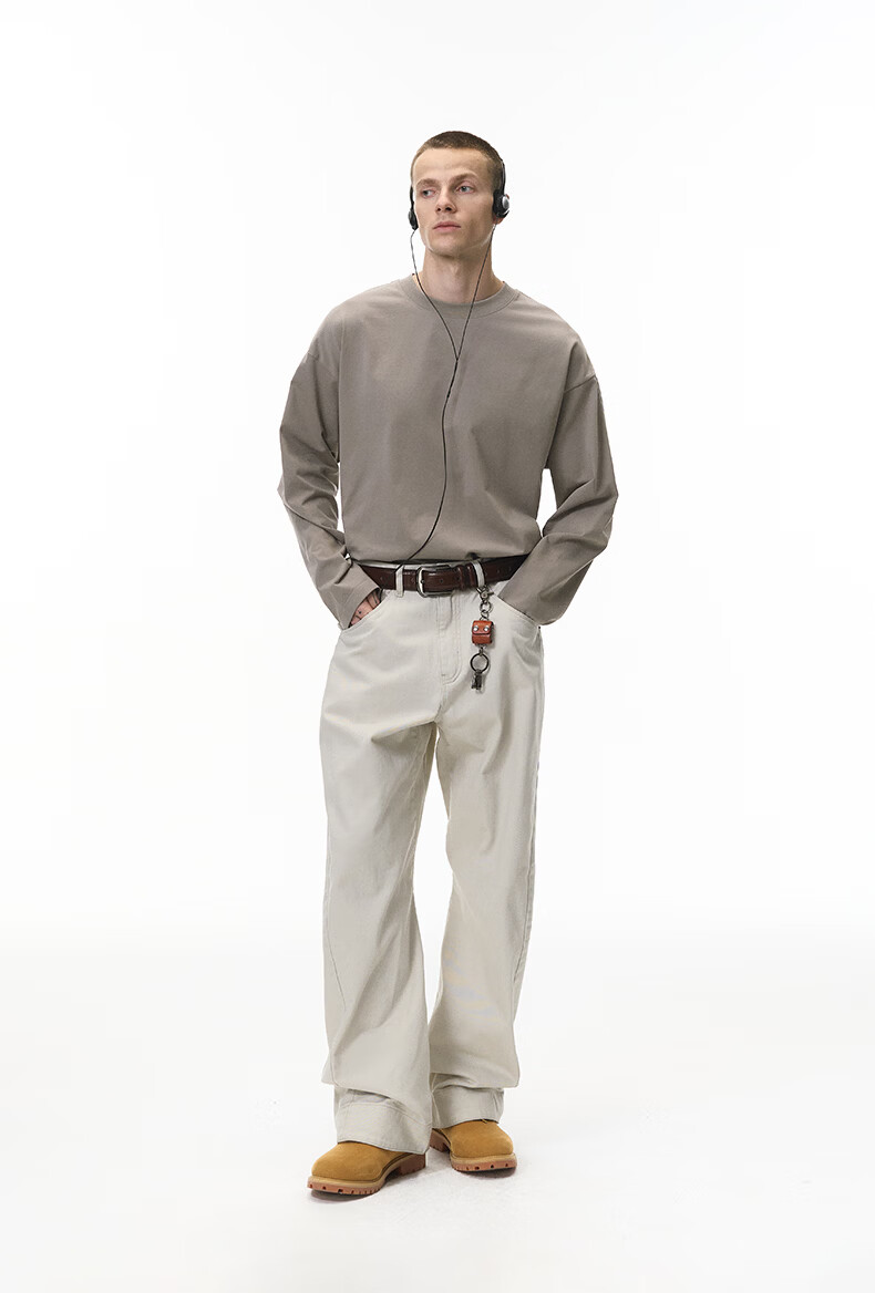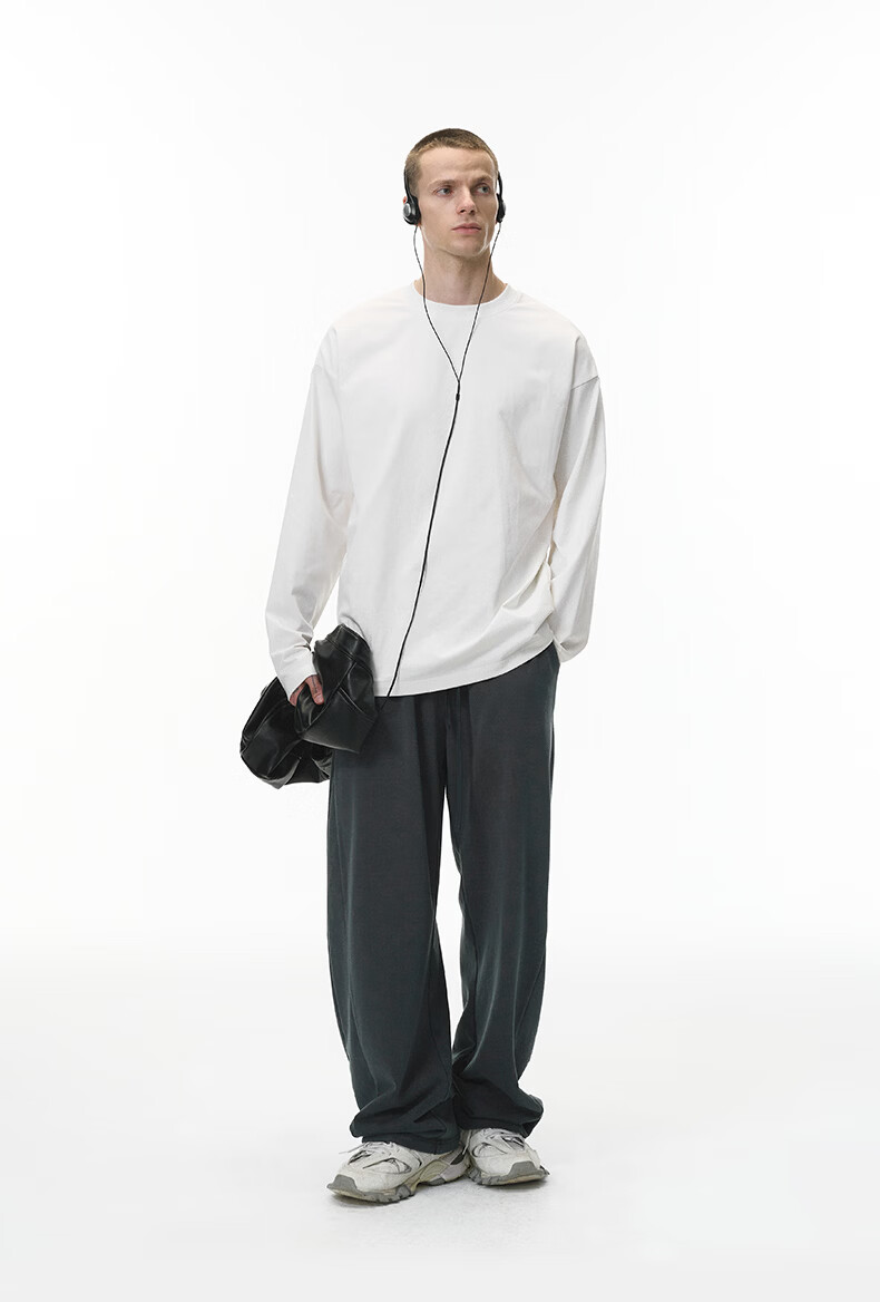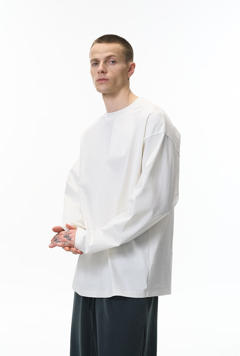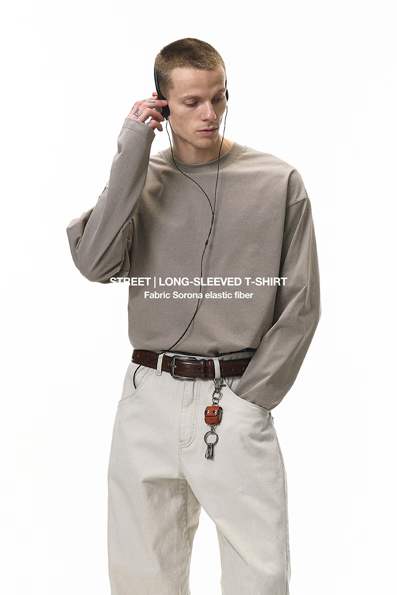 【京东直采】|索罗娜弹力长袖t恤26春季新款美式260G重磅打底衫男 花灰 M