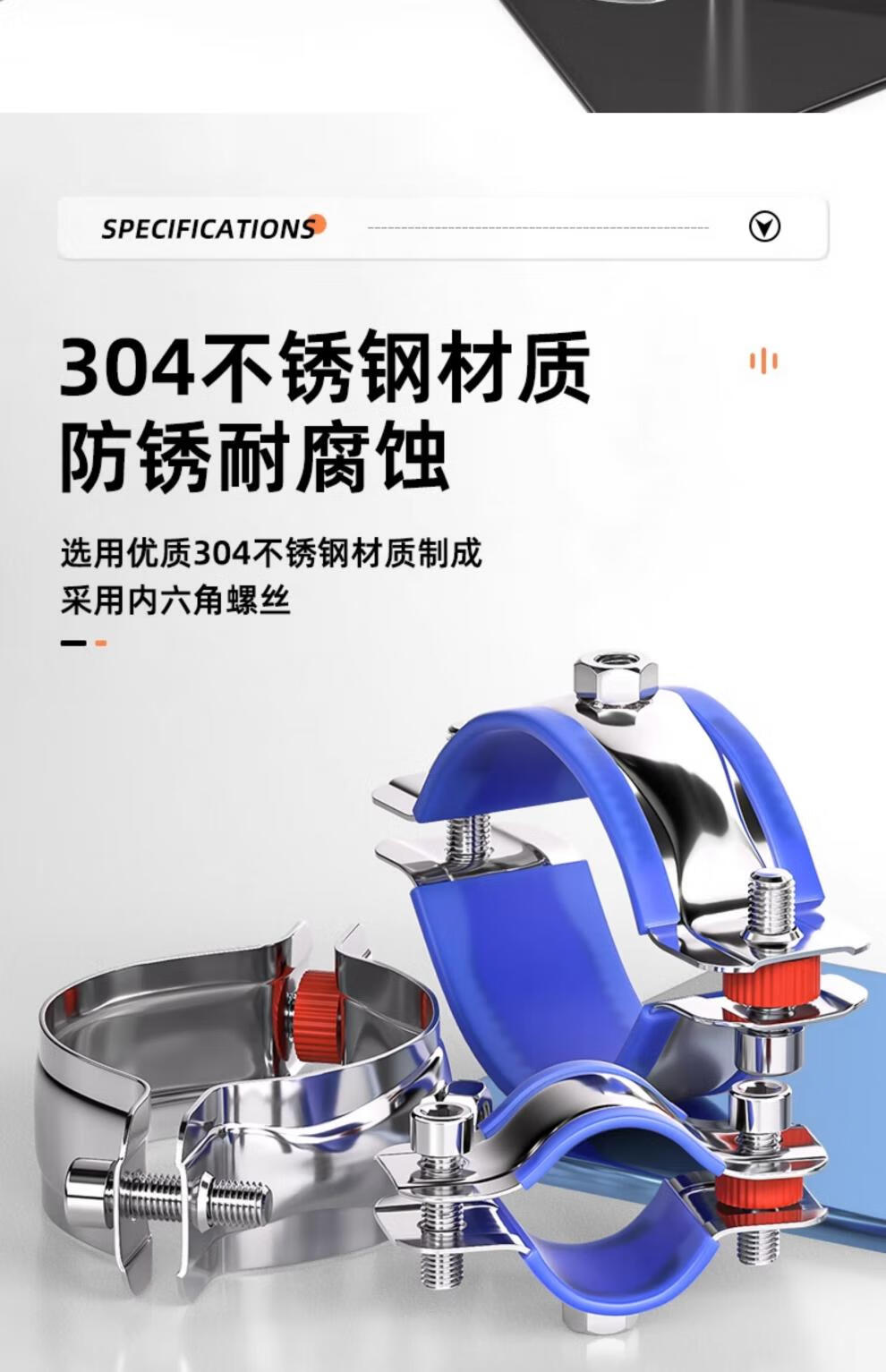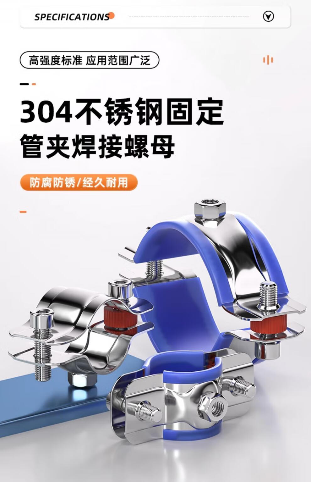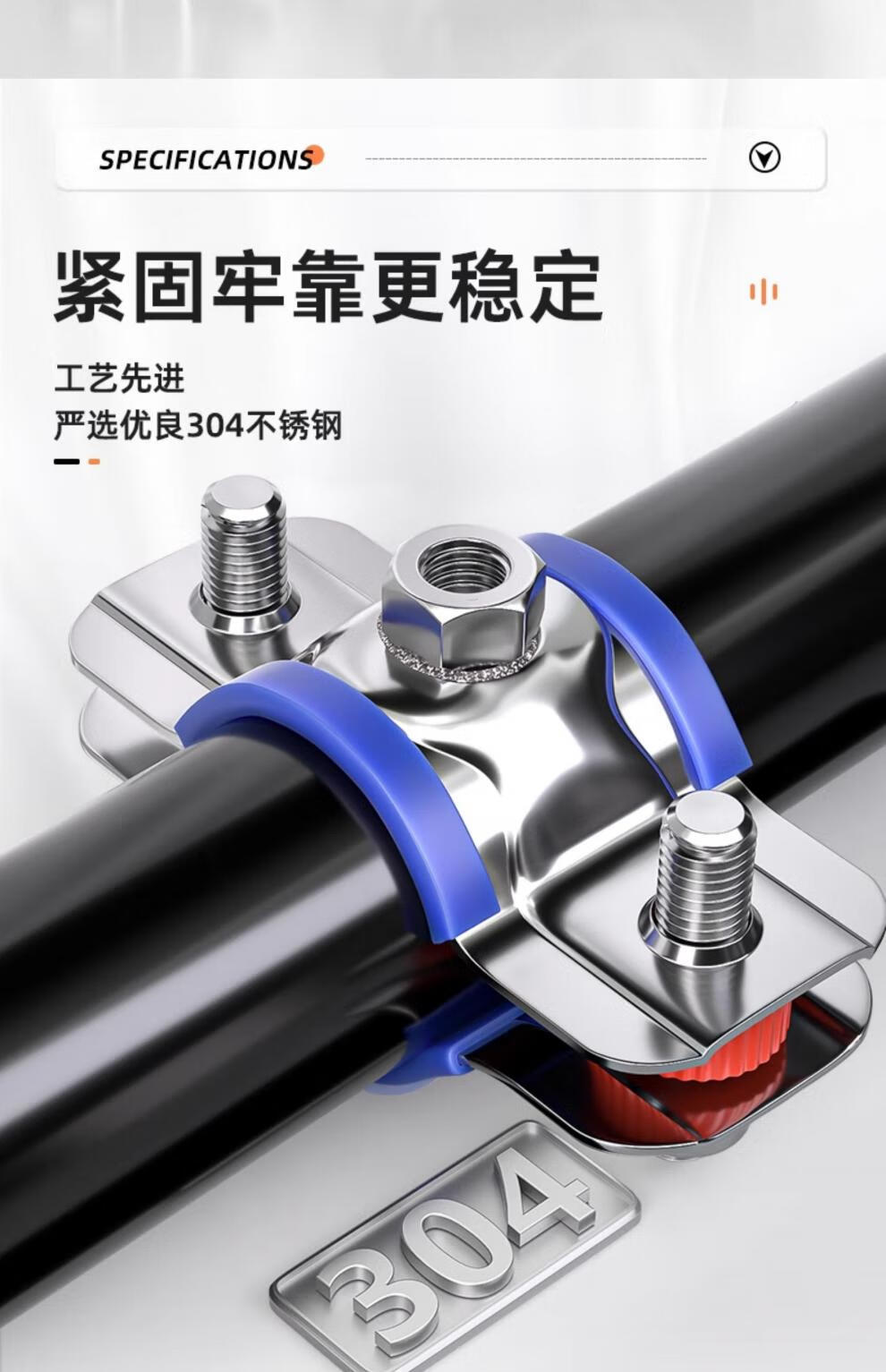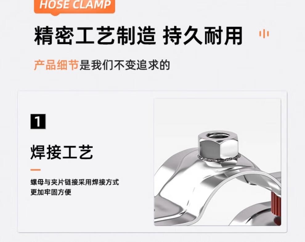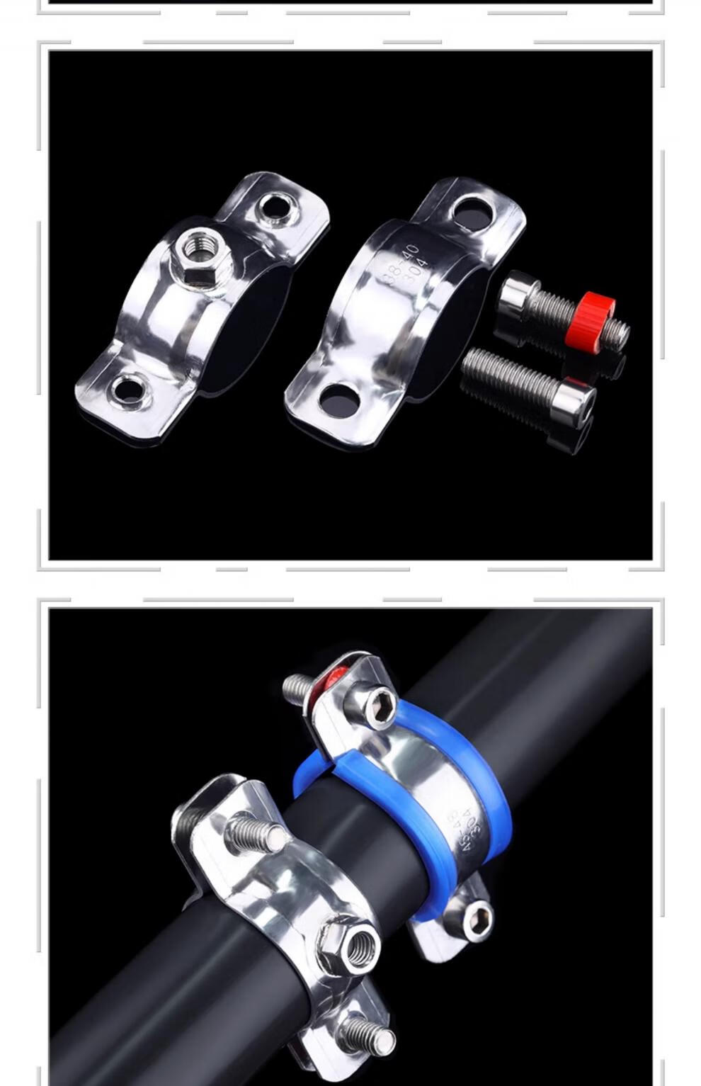 天卓五金304不锈钢固定管支架焊螺帽卡扣抱箍管夹PPR水管夹子管道管卡卡箍 带胶套【Φ25-28】带螺母M8-3个