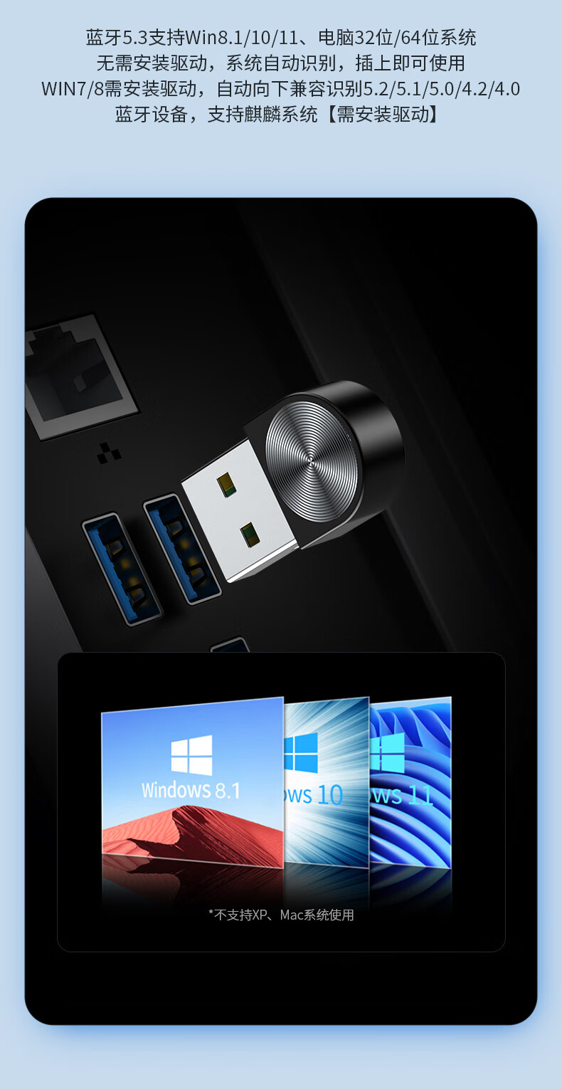 胜为USB蓝牙适配器5.3发射器蓝牙音频接收器适用笔记本台式电脑手机无线蓝牙耳机音响鼠标键盘EBT5003G