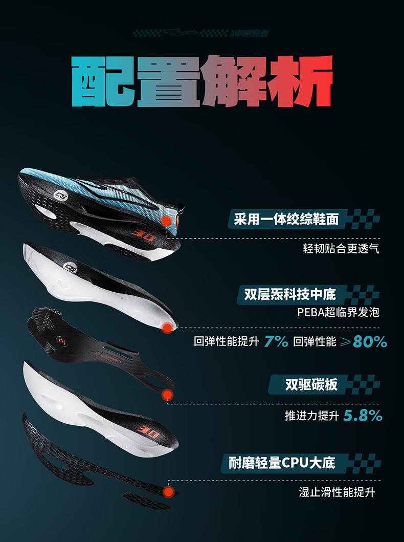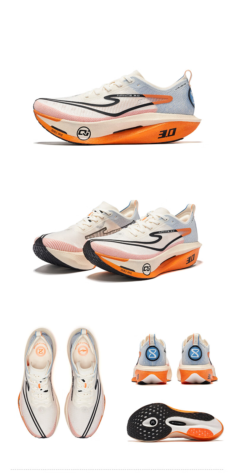 鸿星尔克芷境3代专业马拉松跑鞋PB竞速全掌碳板跑步鞋运动鞋男缓震鞋子男 天鹅色-微晶白/畅想蓝 【男】 42