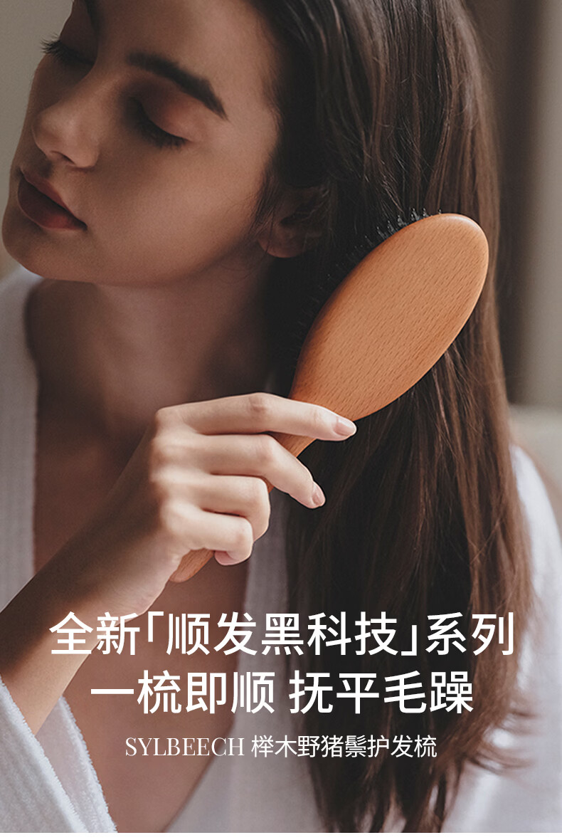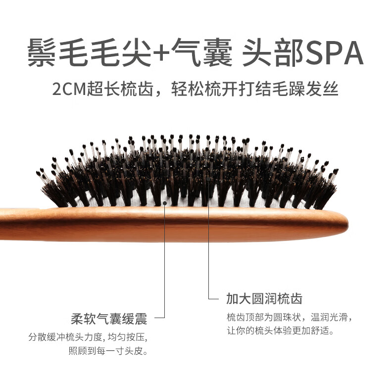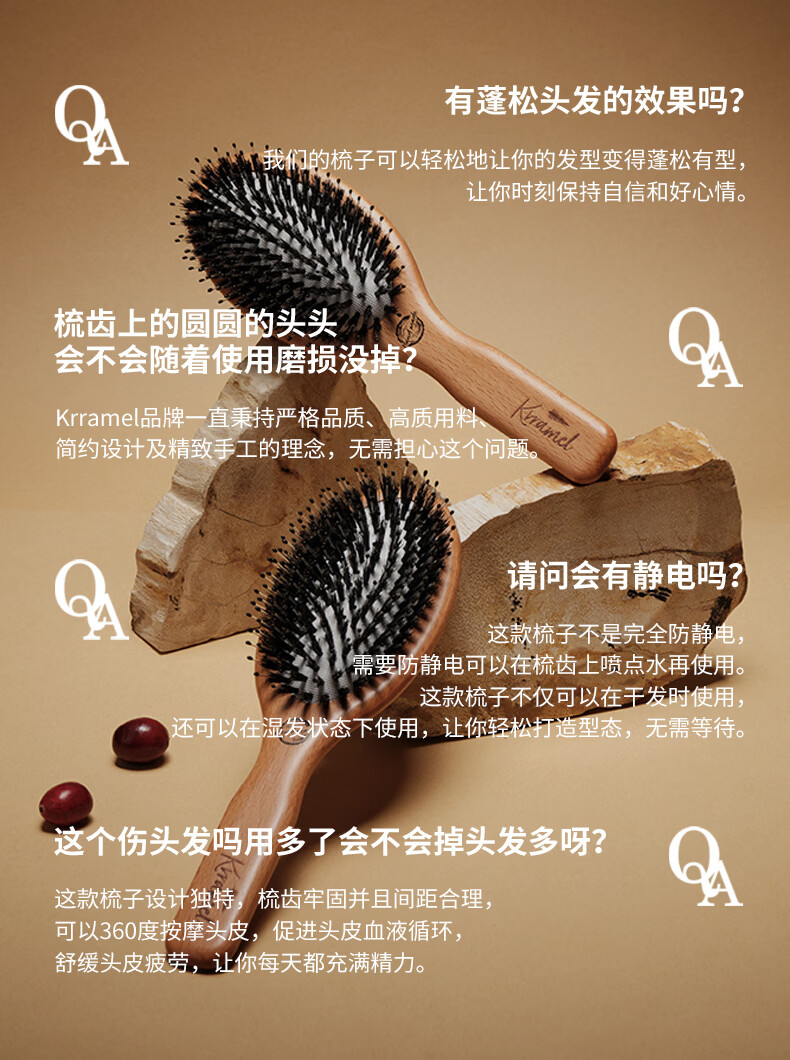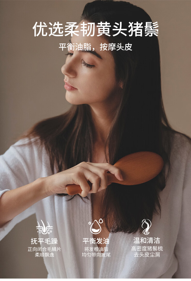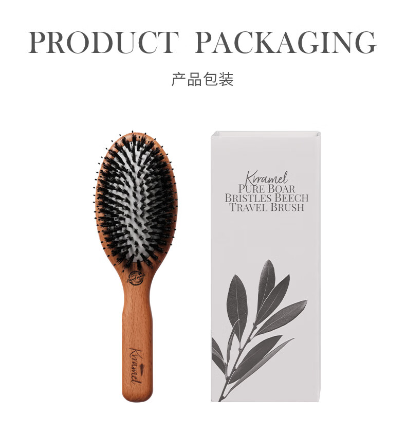 KRRAMEL生日礼物梳子礼物实用礼品送员工女生猪鬃梳礼盒 榉木猪鬃护发梳(尺寸:7x23cm)