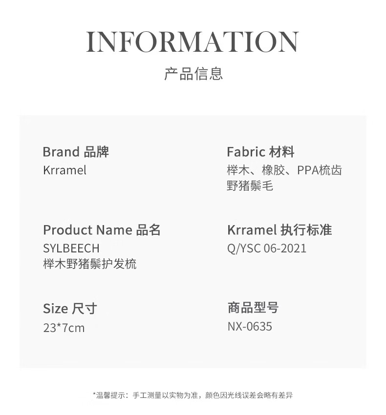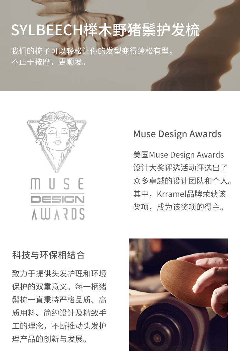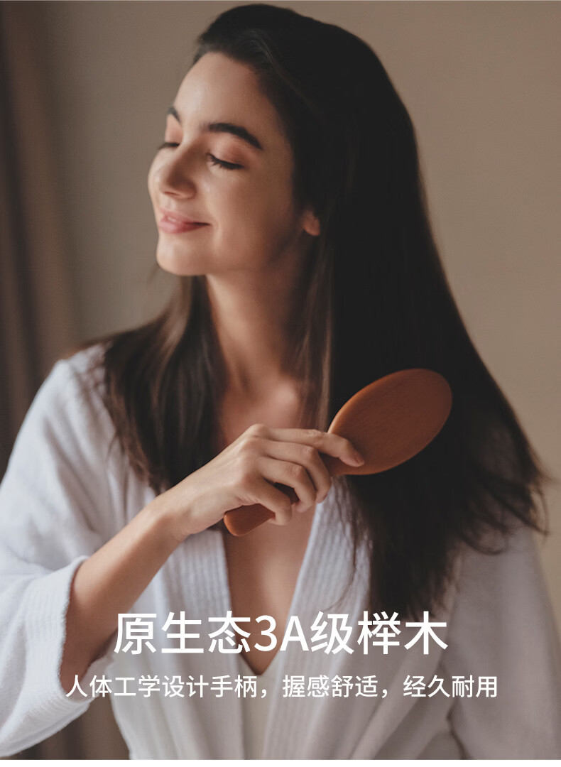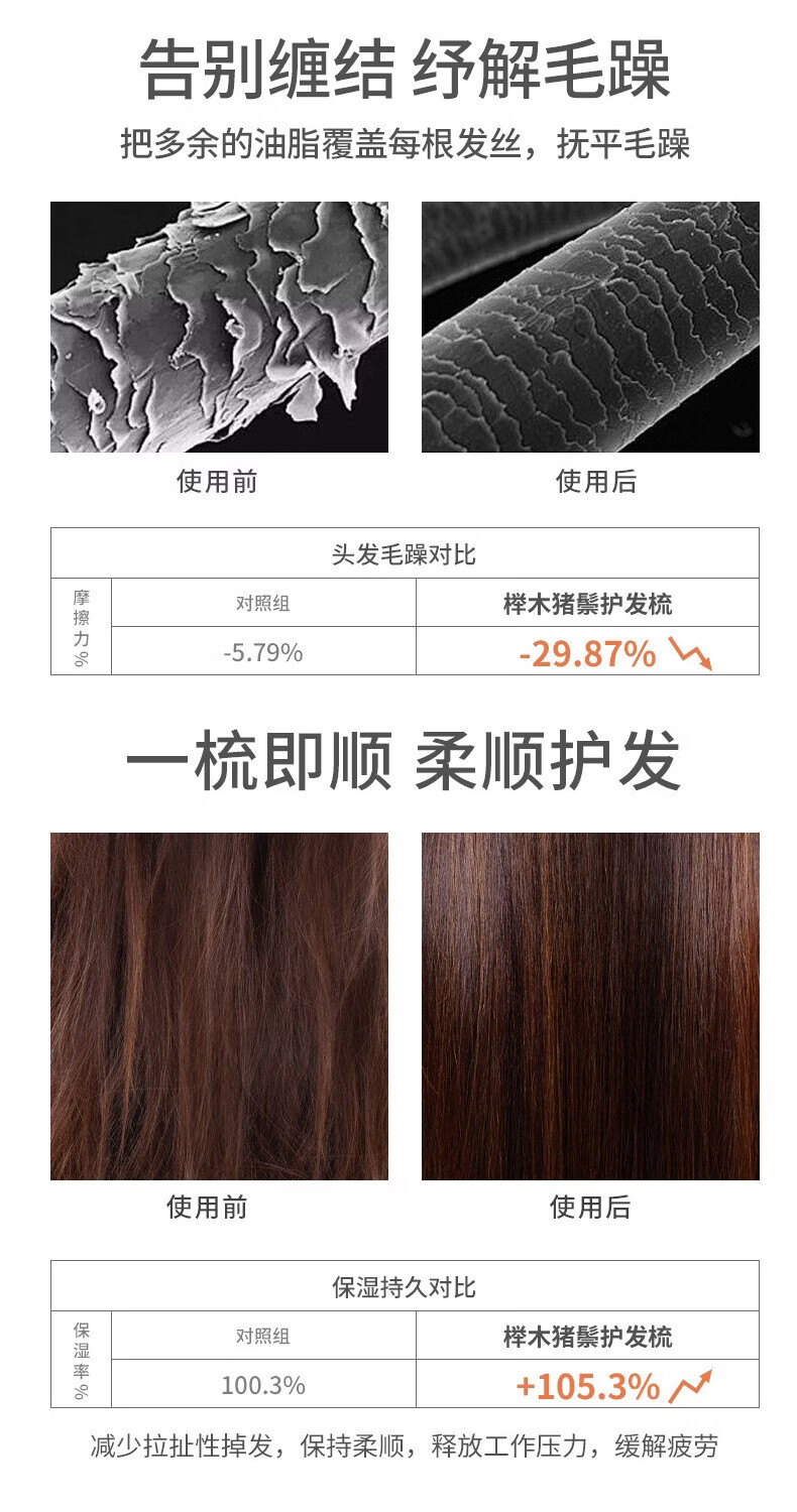 KRRAMEL生日礼物梳子礼物实用礼品送员工女生猪鬃梳礼盒 榉木猪鬃护发梳(尺寸:7x23cm)