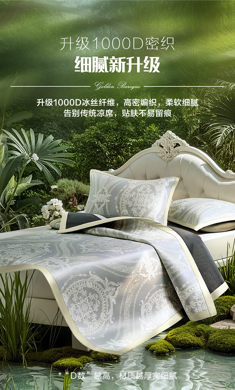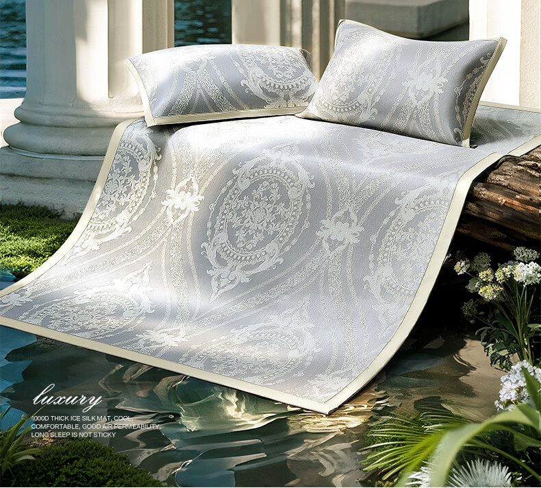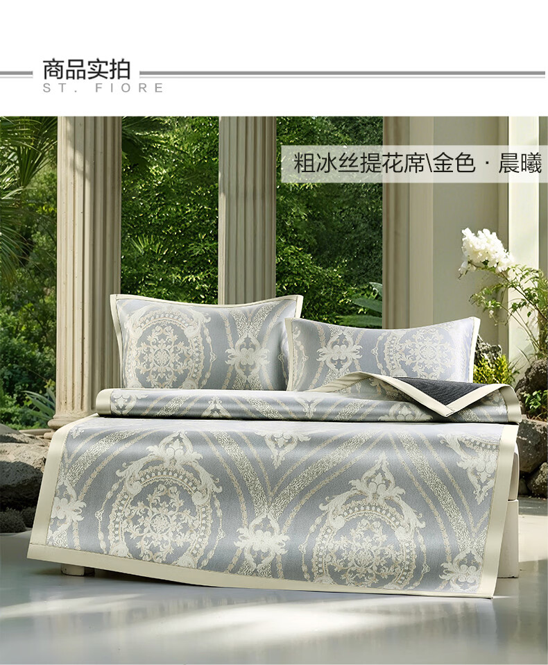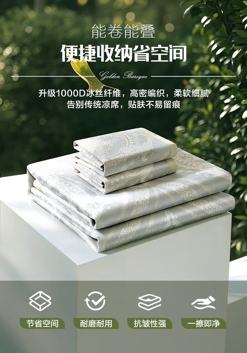 富安娜家纺1000D冰丝席 A类夏季凉感家用双人可折叠防滑空调软席 【A类】1000D提花席-晨曦 两件套 1.2米床适用