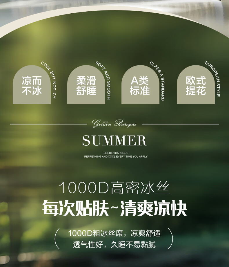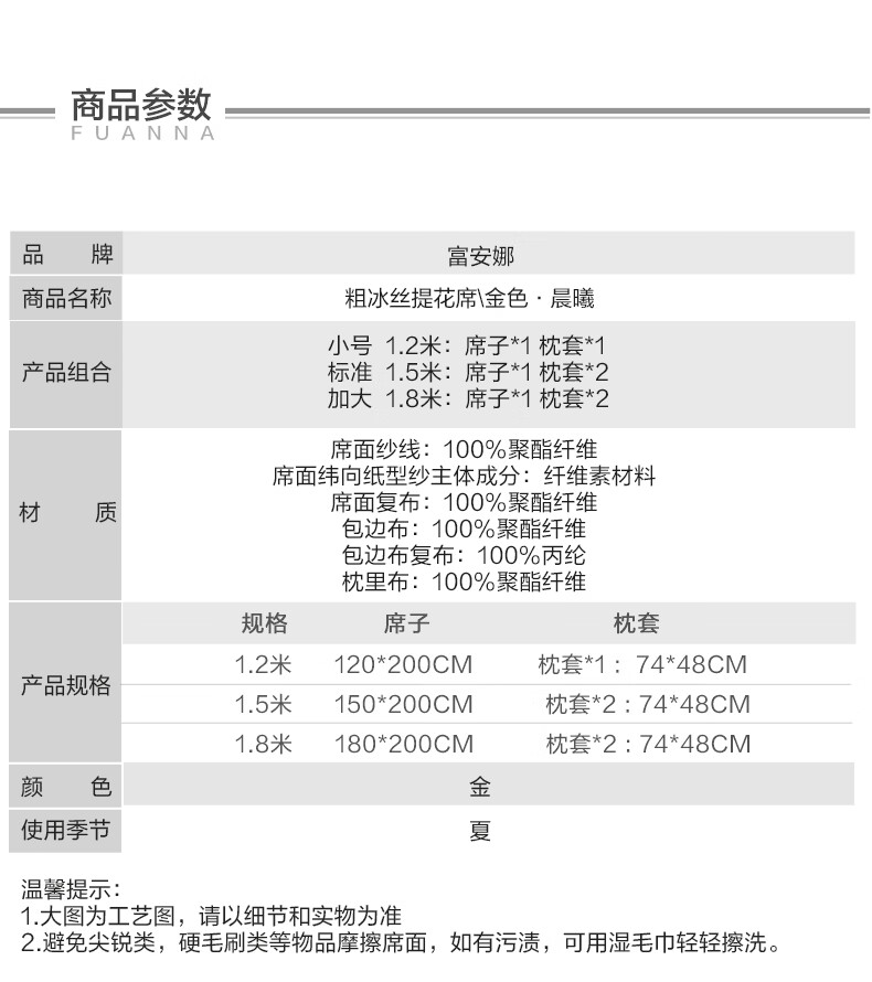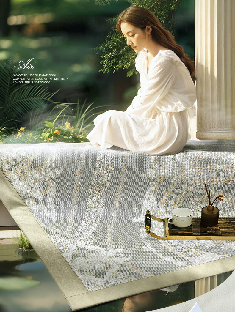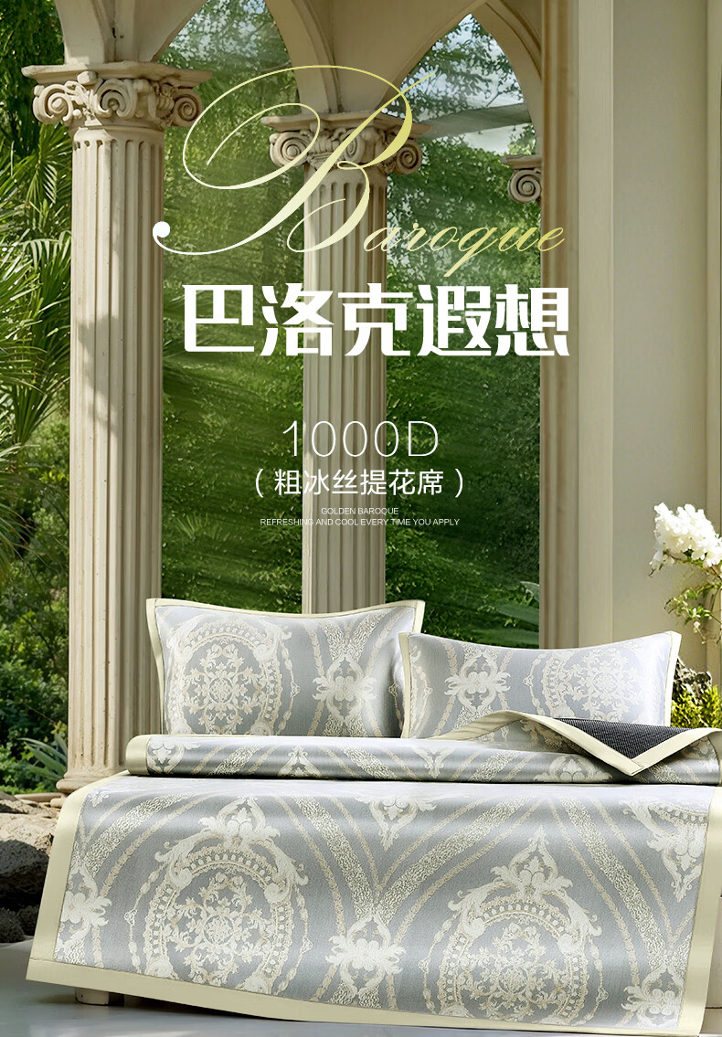 富安娜家纺1000D冰丝席 A类夏季凉感家用双人可折叠防滑空调软席 【A类】1000D提花席-晨曦 两件套 1.2米床适用