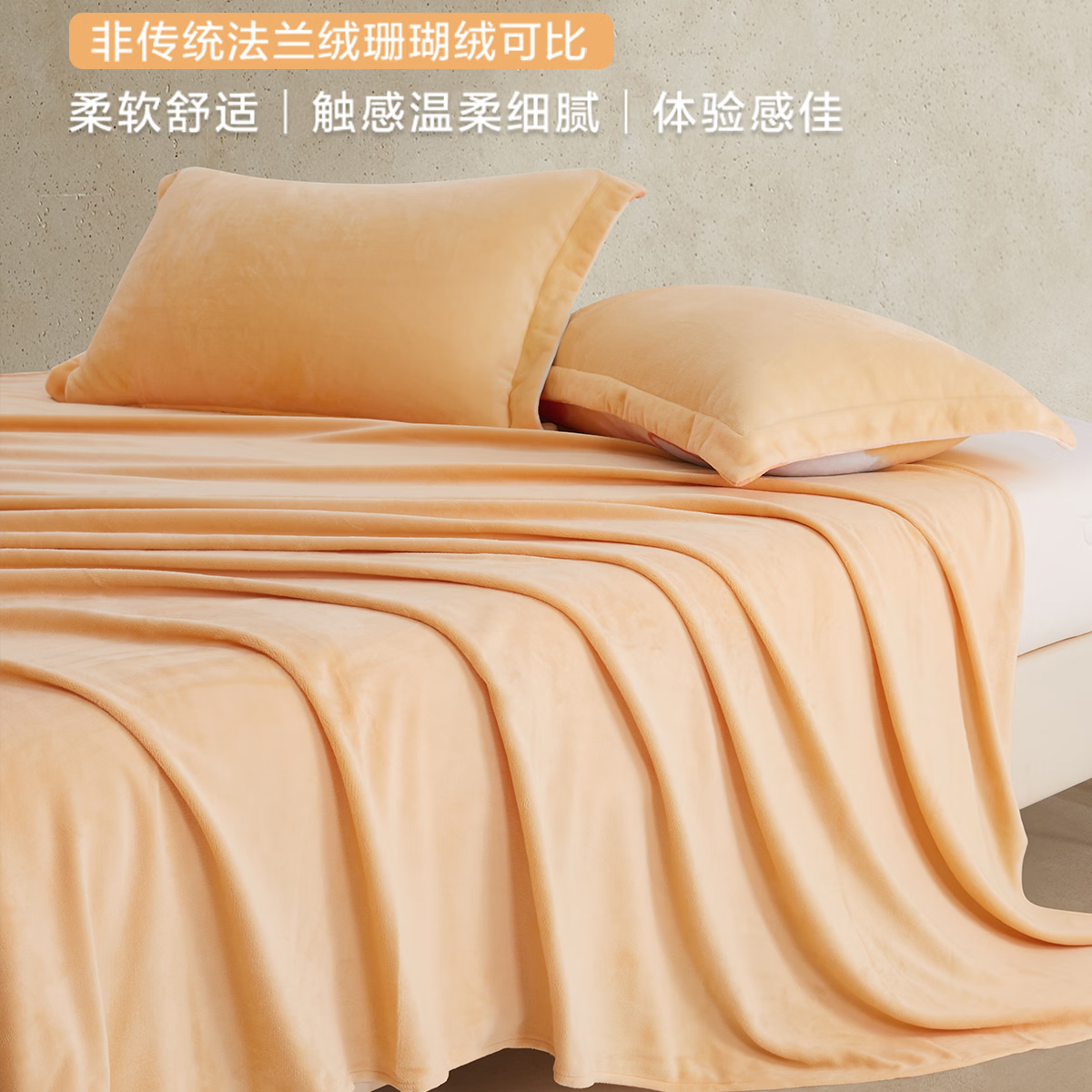 博洋(BEYOND)超大炕单榻榻米大床单单件3米被单牛奶绒单人加厚珊瑚绒双人 保暖绒床单单件套—简约(黄) 180*245cm