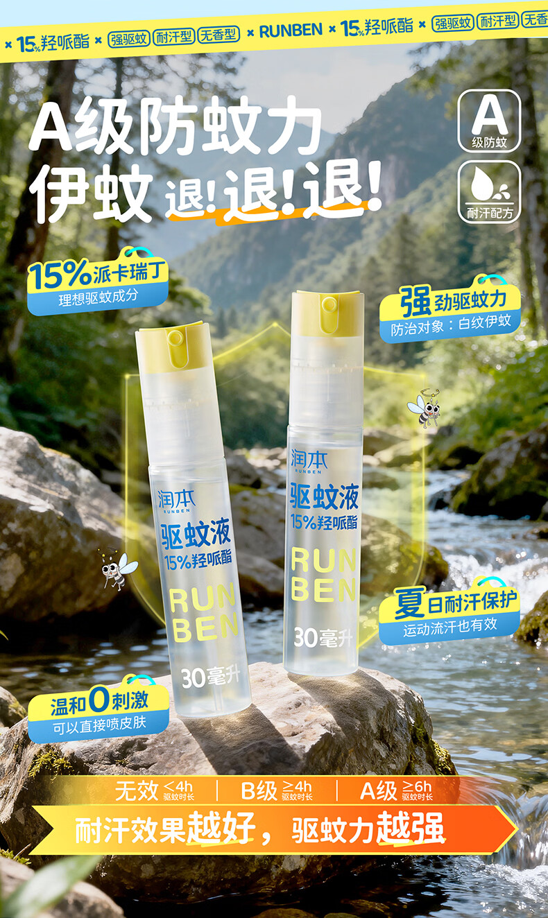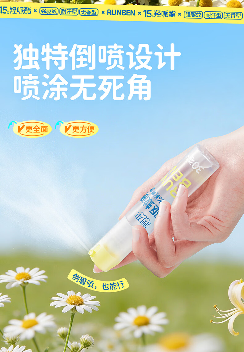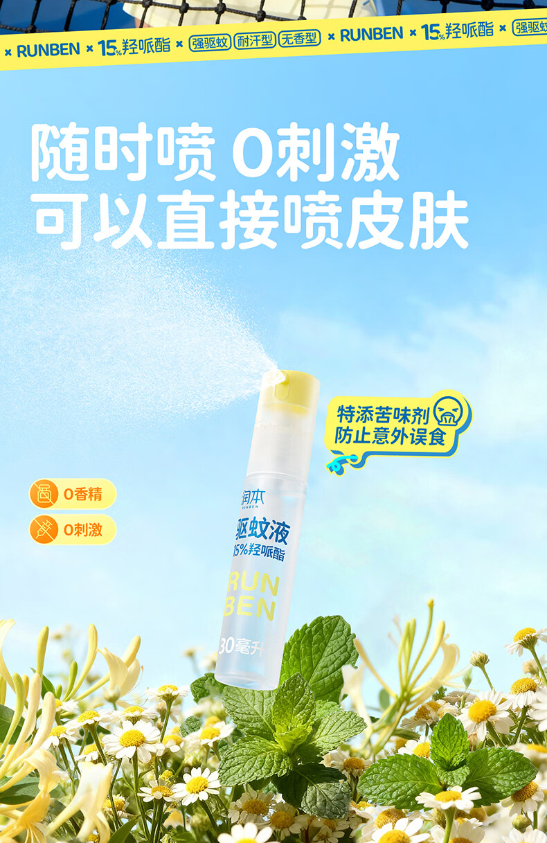 润本驱蚊液驱蚊喷雾花露水户外防蚊虫叮咬驱蚊水派卡瑞丁防蚊喷雾 30ml 2瓶 【强效驱蚊8h】王牌爆款
