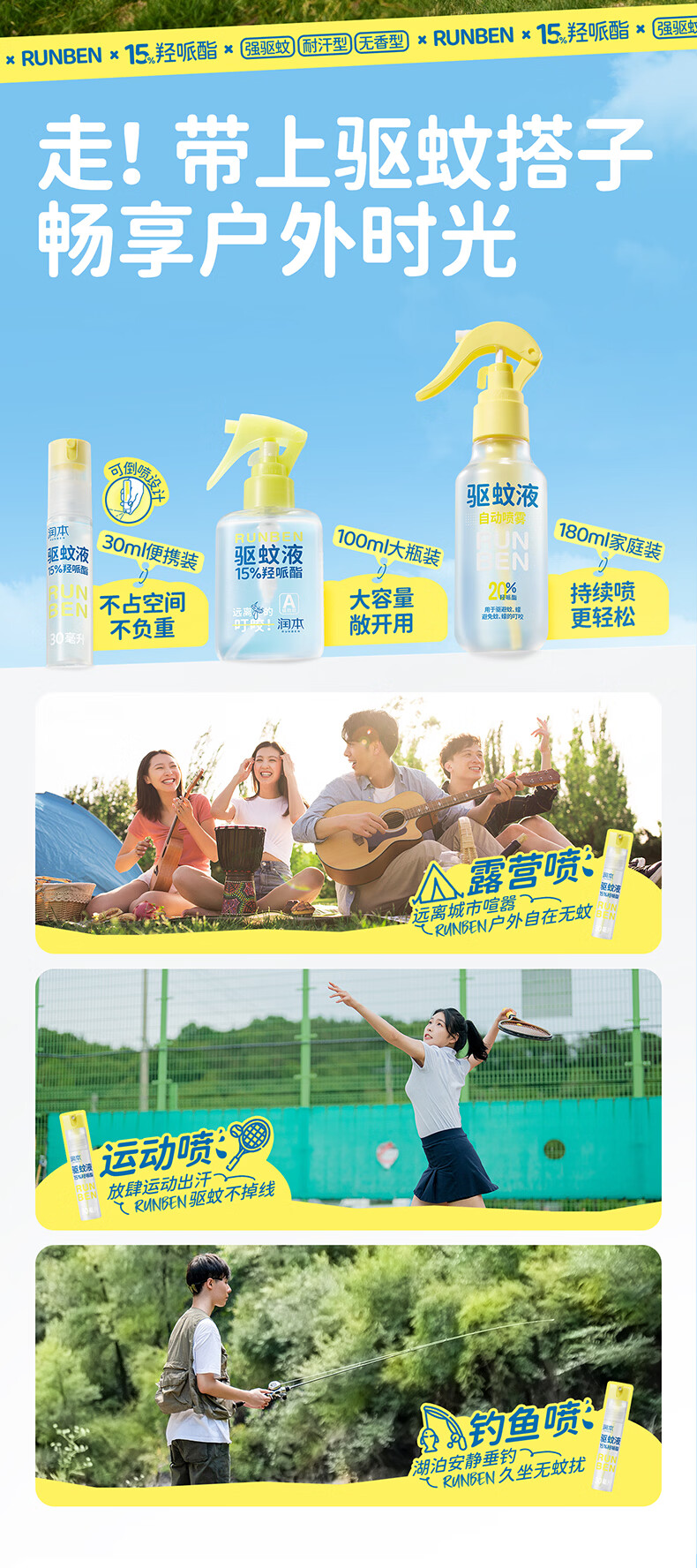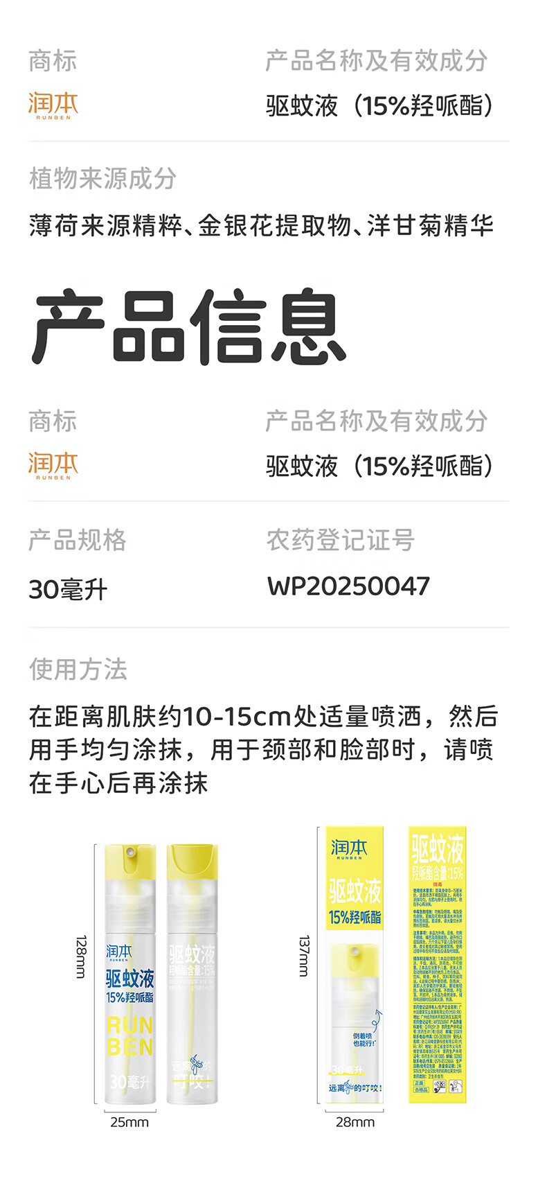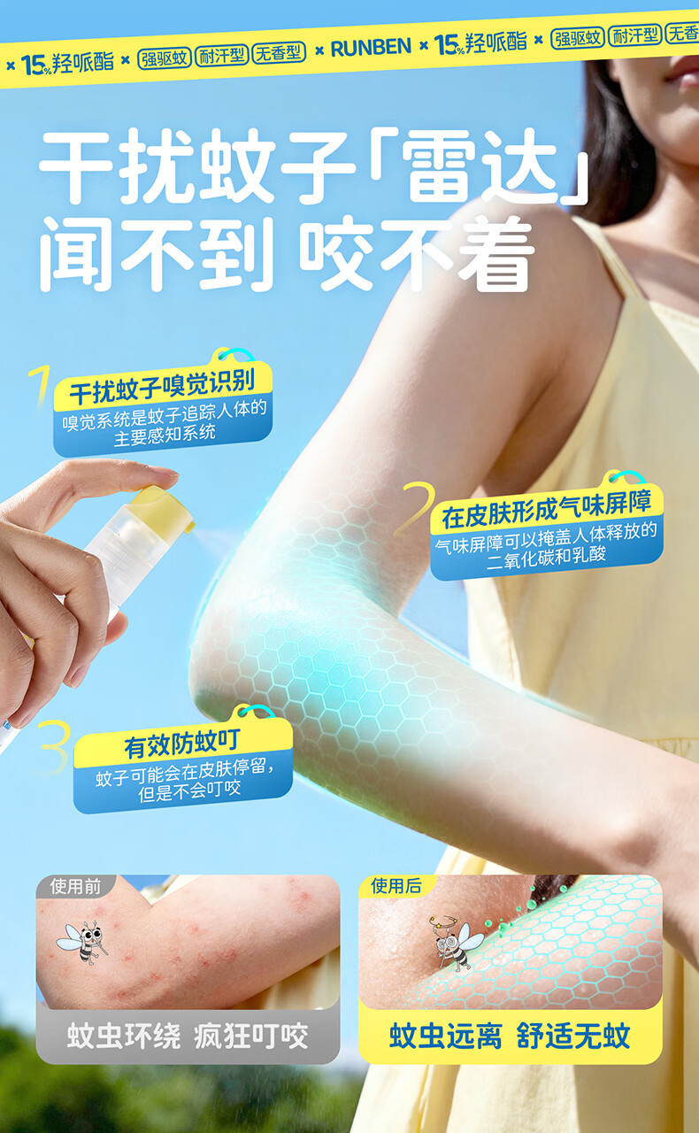 润本驱蚊液驱蚊喷雾花露水户外防蚊虫叮咬驱蚊水派卡瑞丁防蚊喷雾 30ml 2瓶 【强效驱蚊8h】王牌爆款