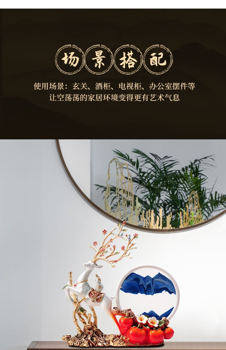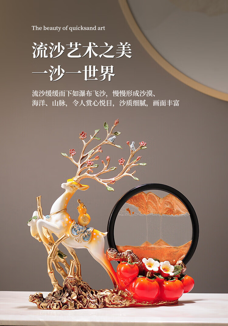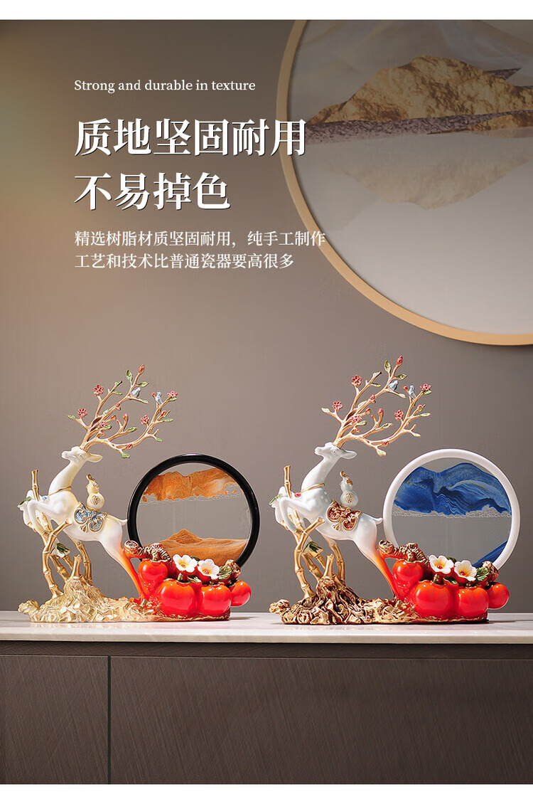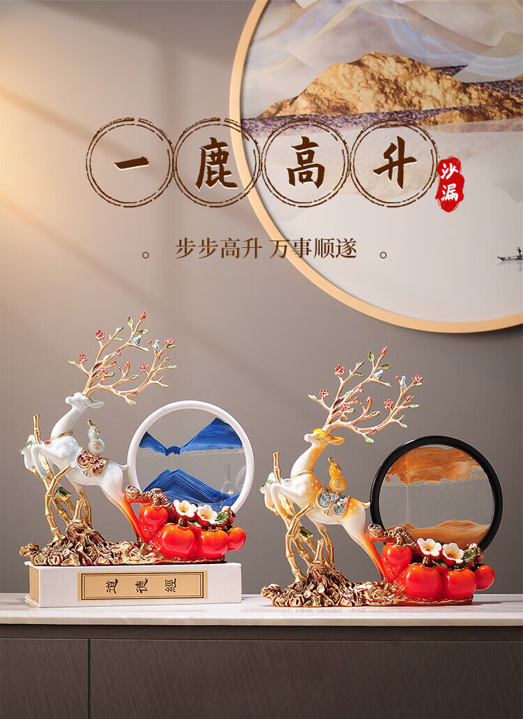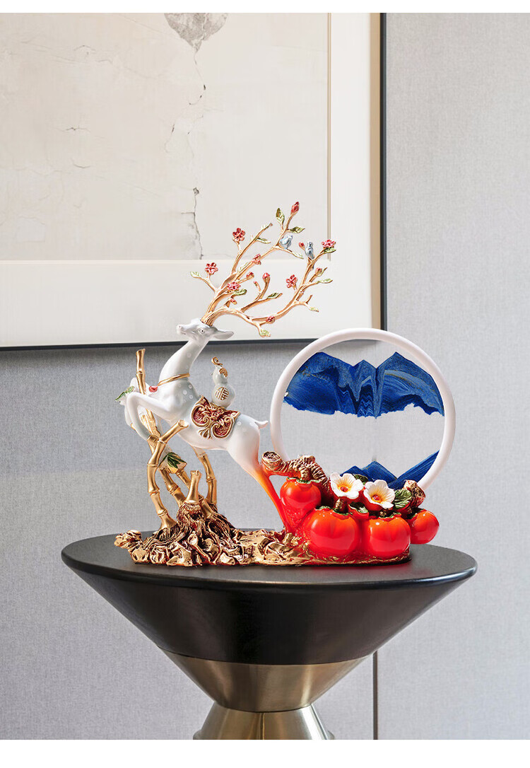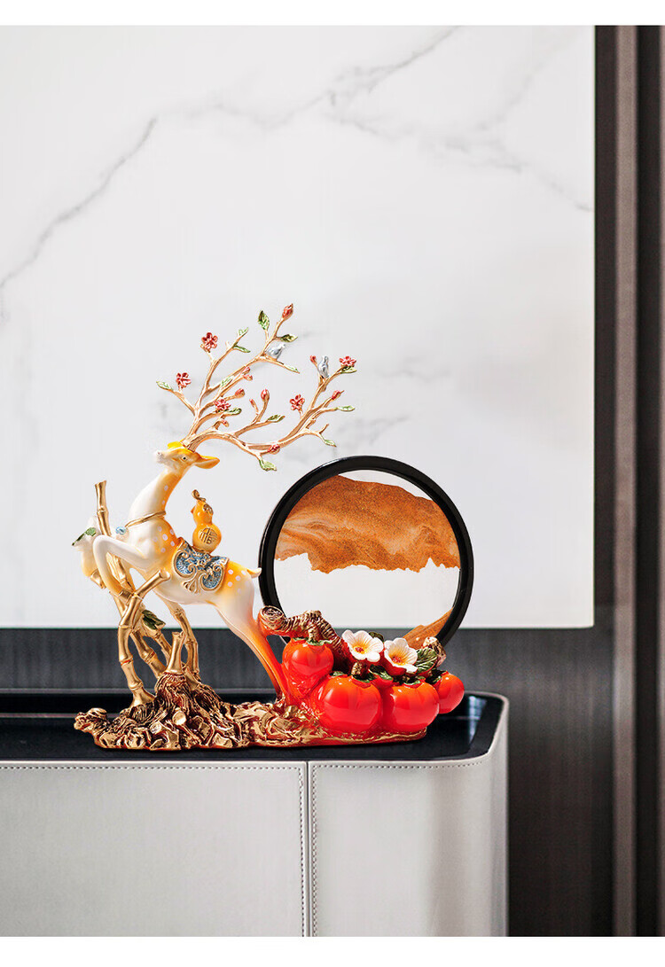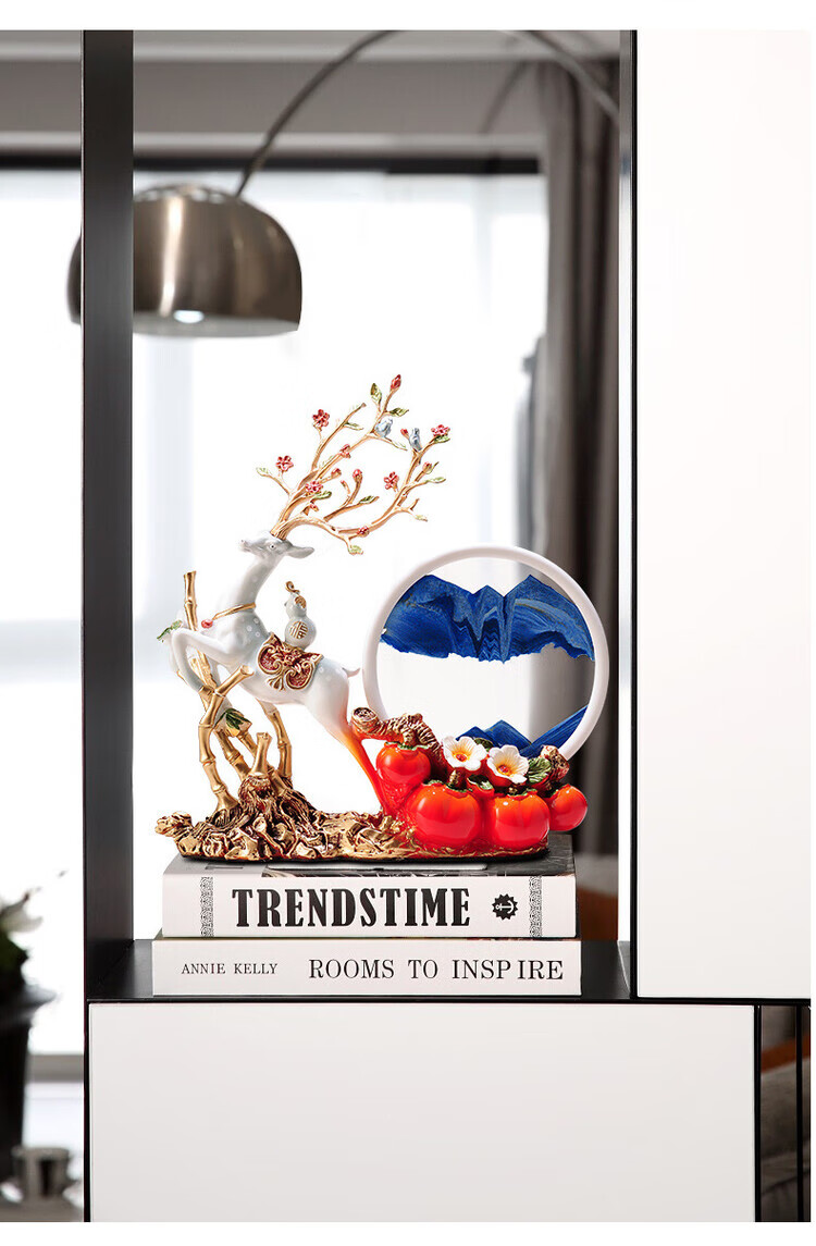 OYKTN创意流沙画沙漏鹿摆件事事如意柿子家居客厅玄关电视柜酒柜装饰品 一“鹿”高升(雾蓝)+黑款黄沙