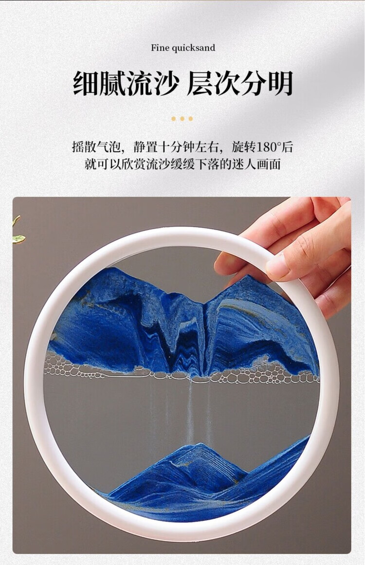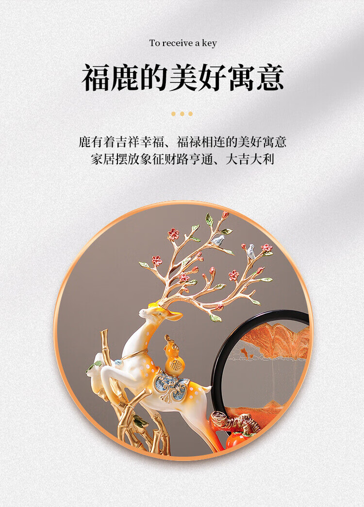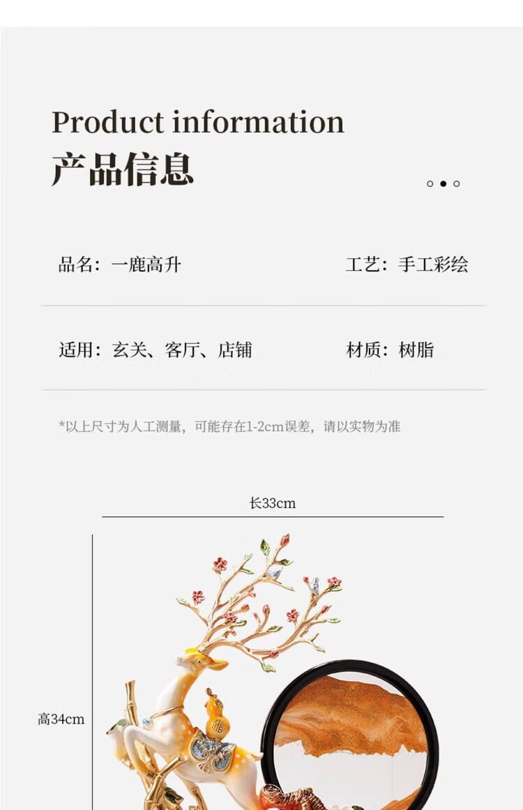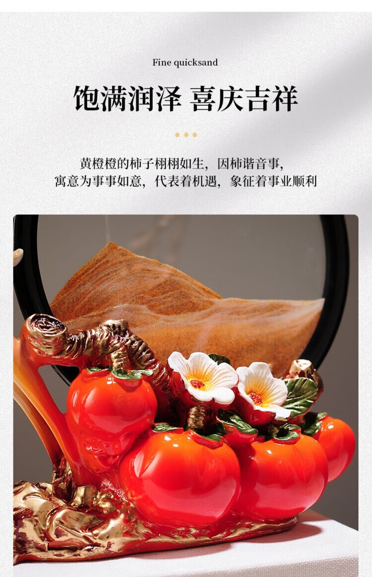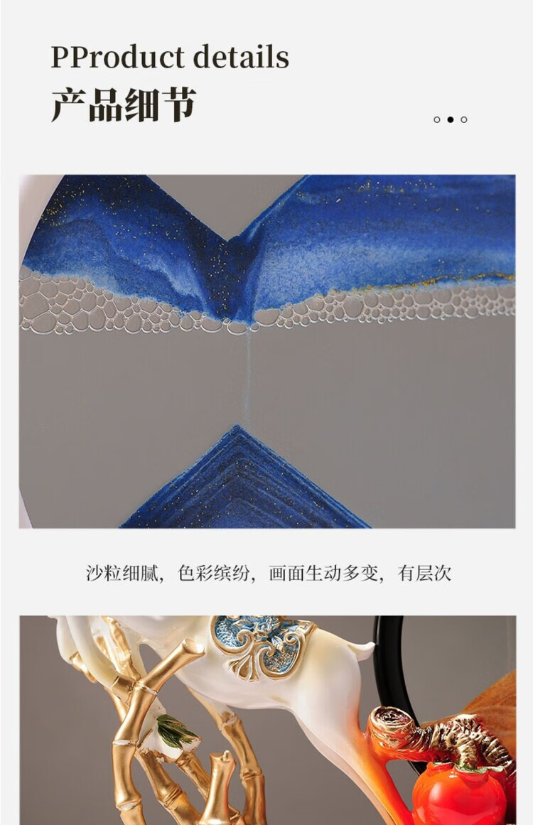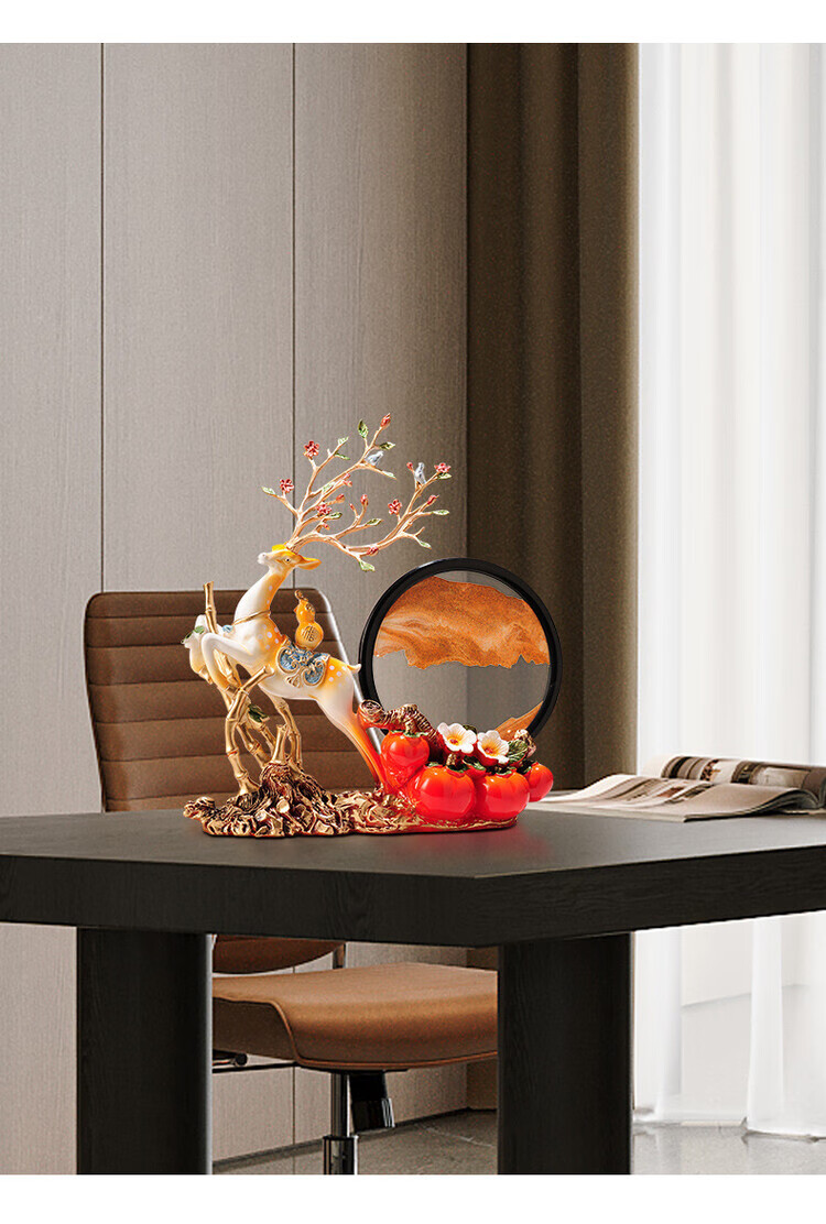 OYKTN创意流沙画沙漏鹿摆件事事如意柿子家居客厅玄关电视柜酒柜装饰品 一“鹿”高升(雾蓝)+黑款黄沙