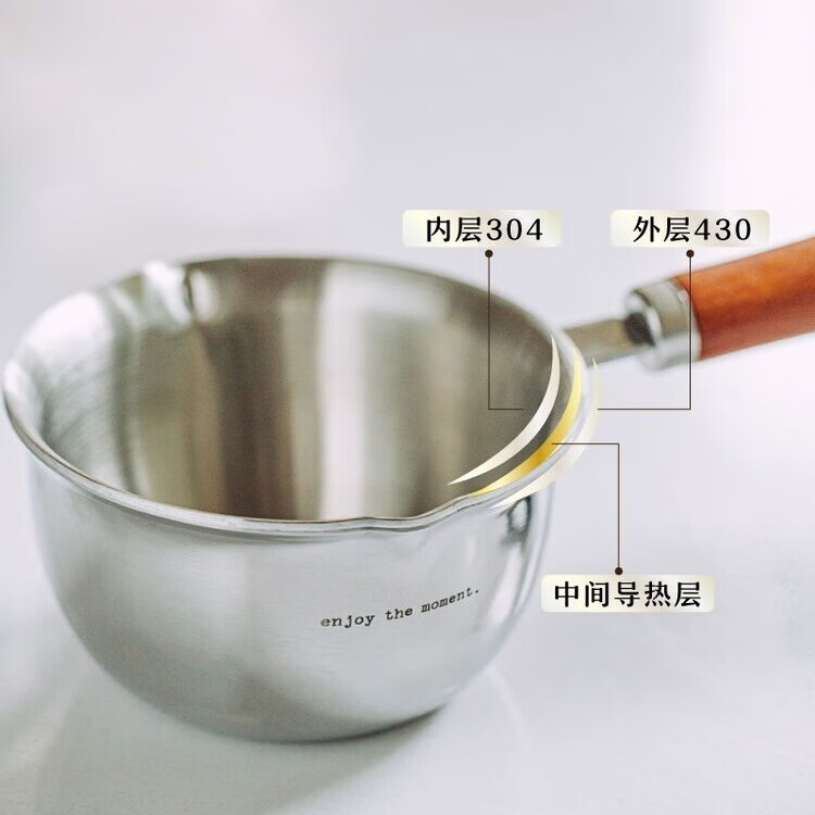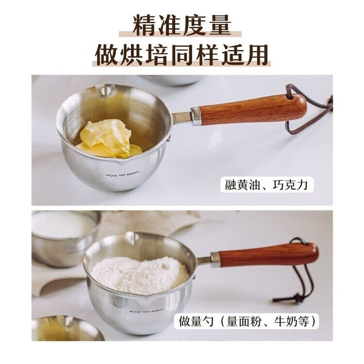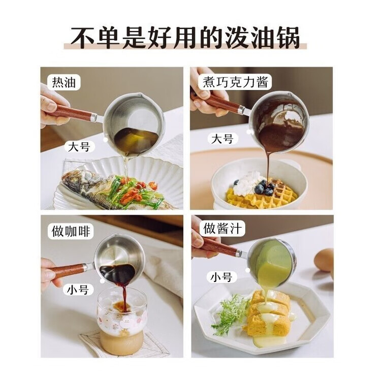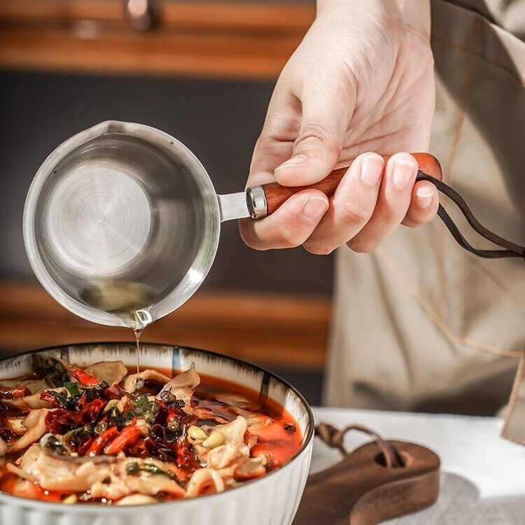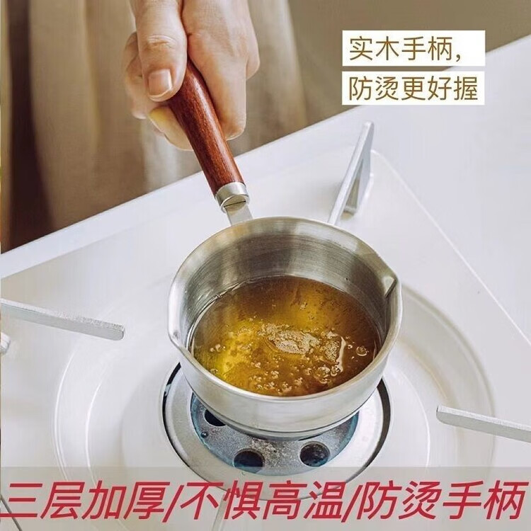 喆系德国泼油小锅厨房不锈钢热油神器家用烧油炝油淋油浇油迷你小油锅 【三层钢】 1cm 小号【120ml-实木手柄】