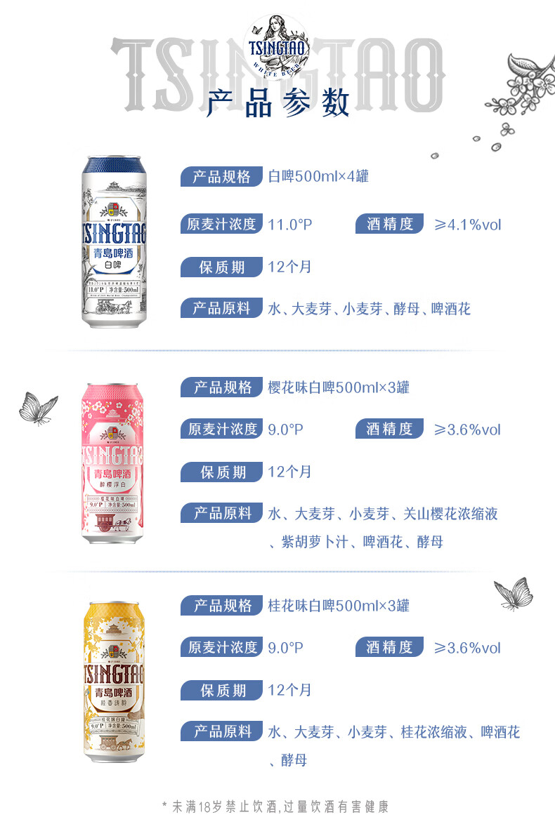 青岛啤酒精酿白啤500ml*10罐礼盒装 (白啤*4+樱花*3+桂花*3) 新老包装随机