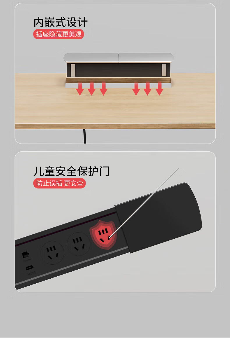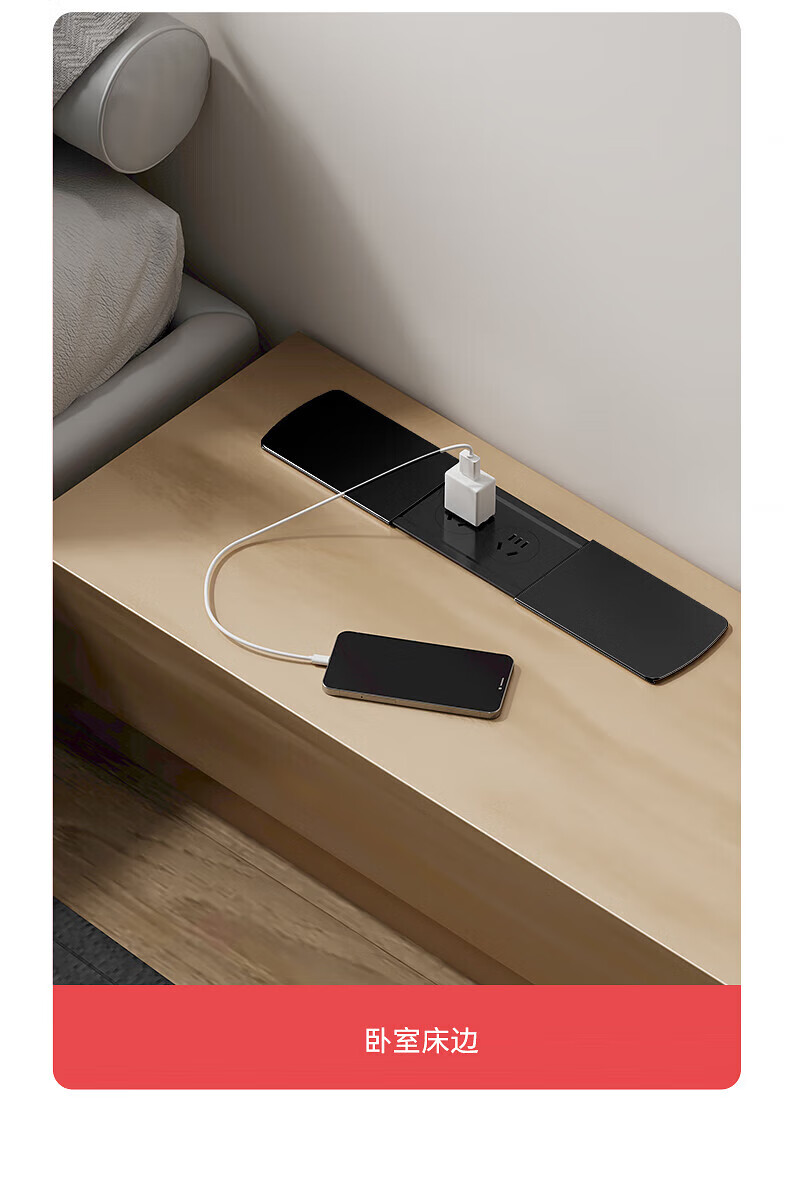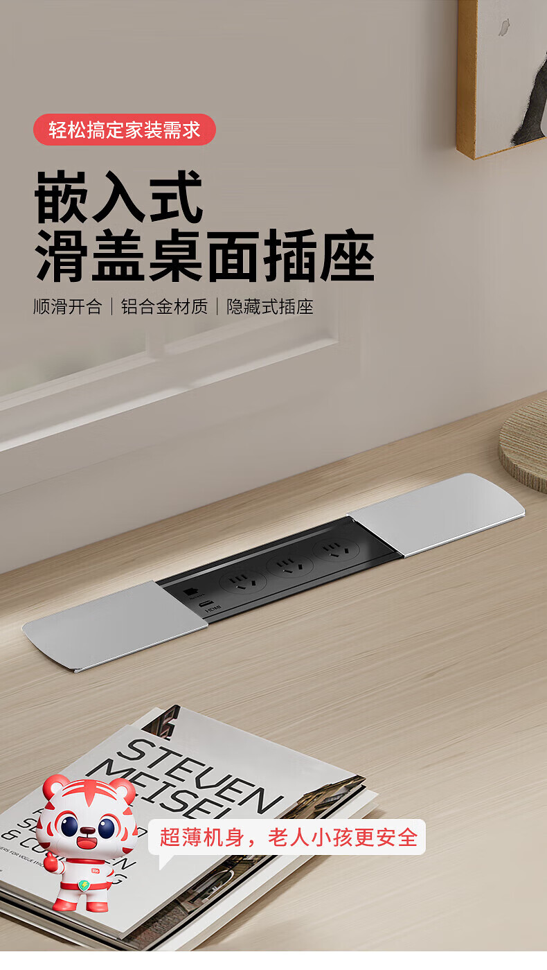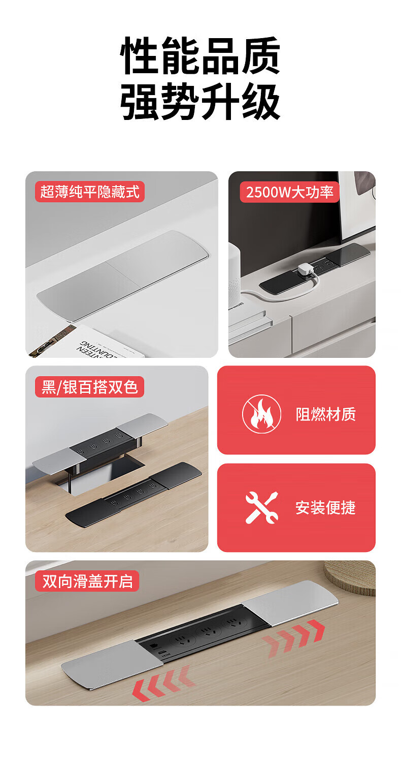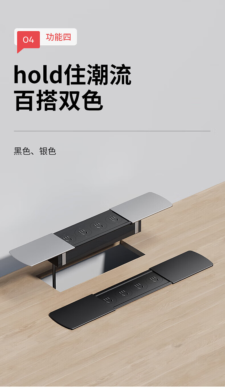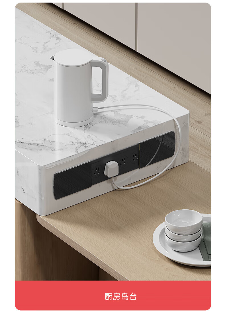 国际电工嵌入式隐藏插座滑盖岛台桌面多功能USB接线板带线办公室床头柜 银色【四位五孔】无底座和线