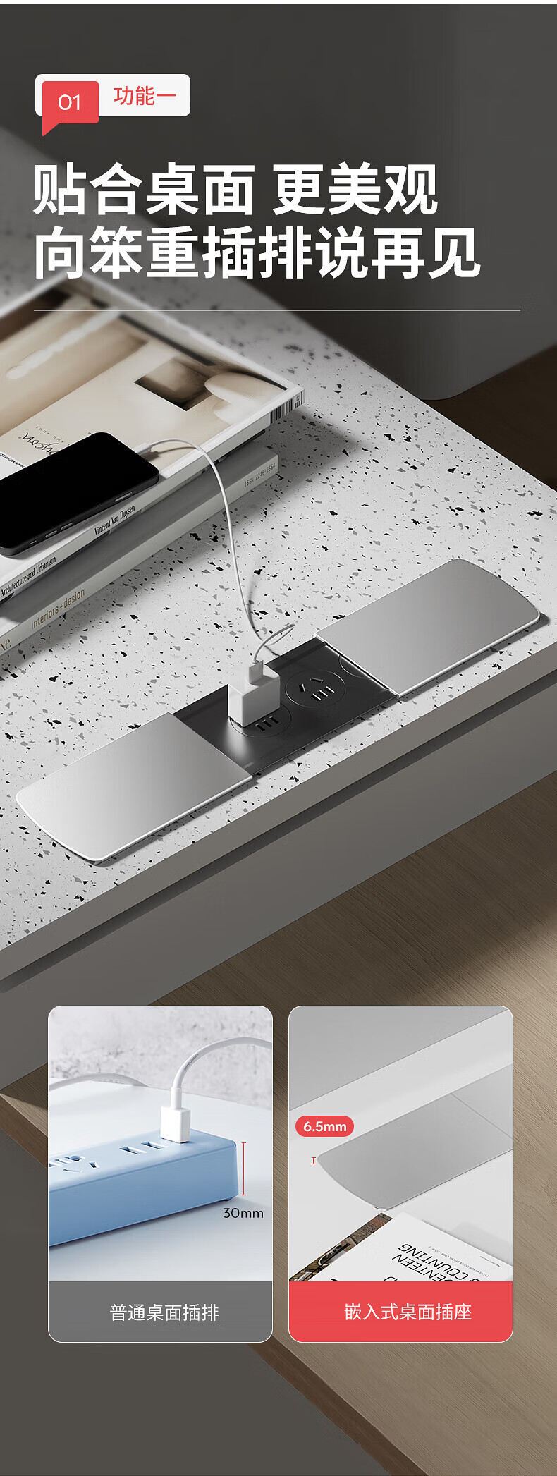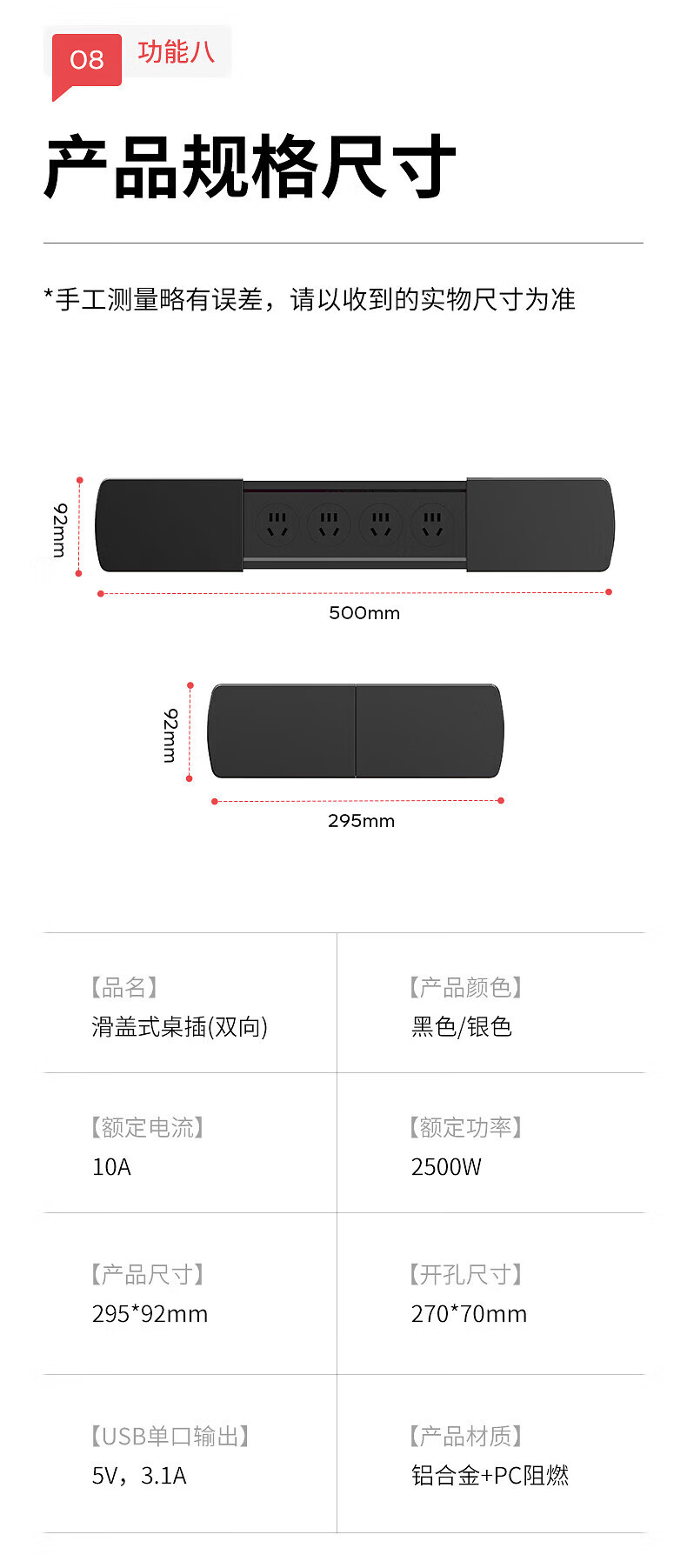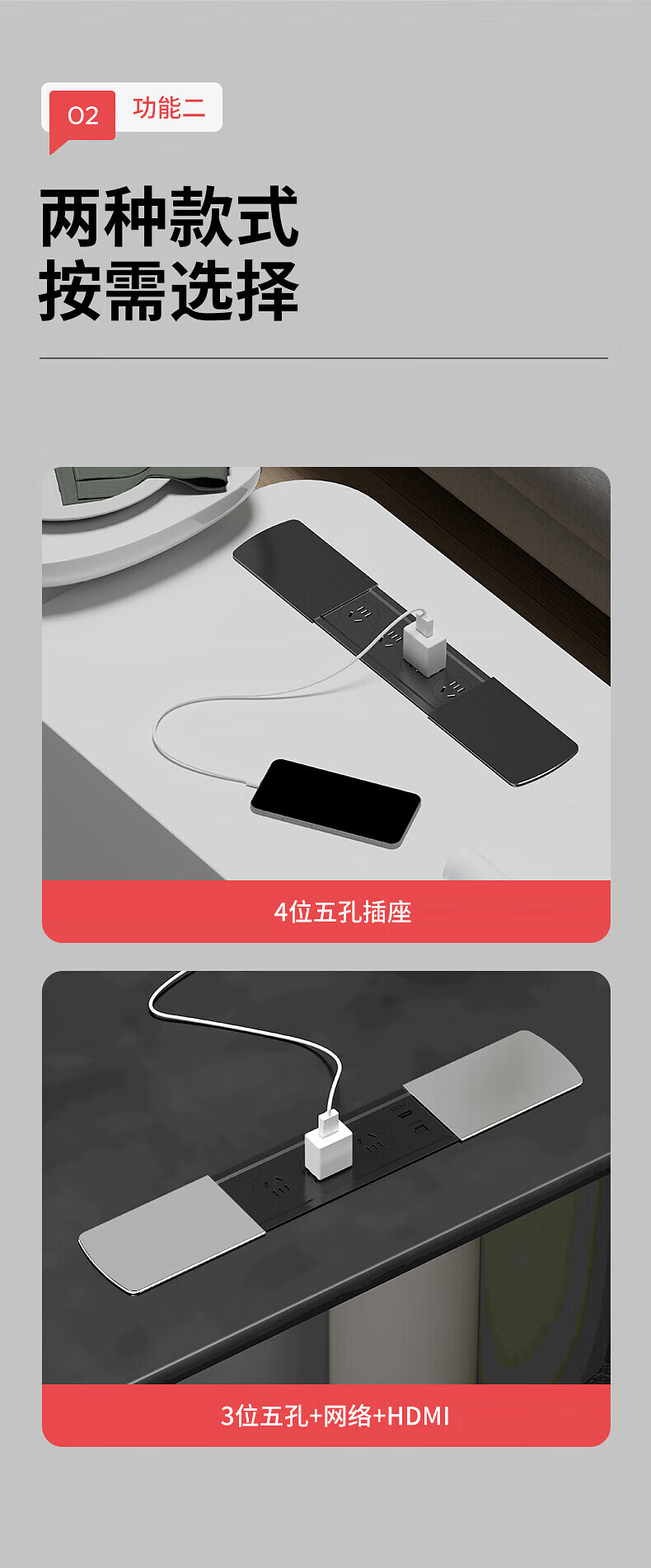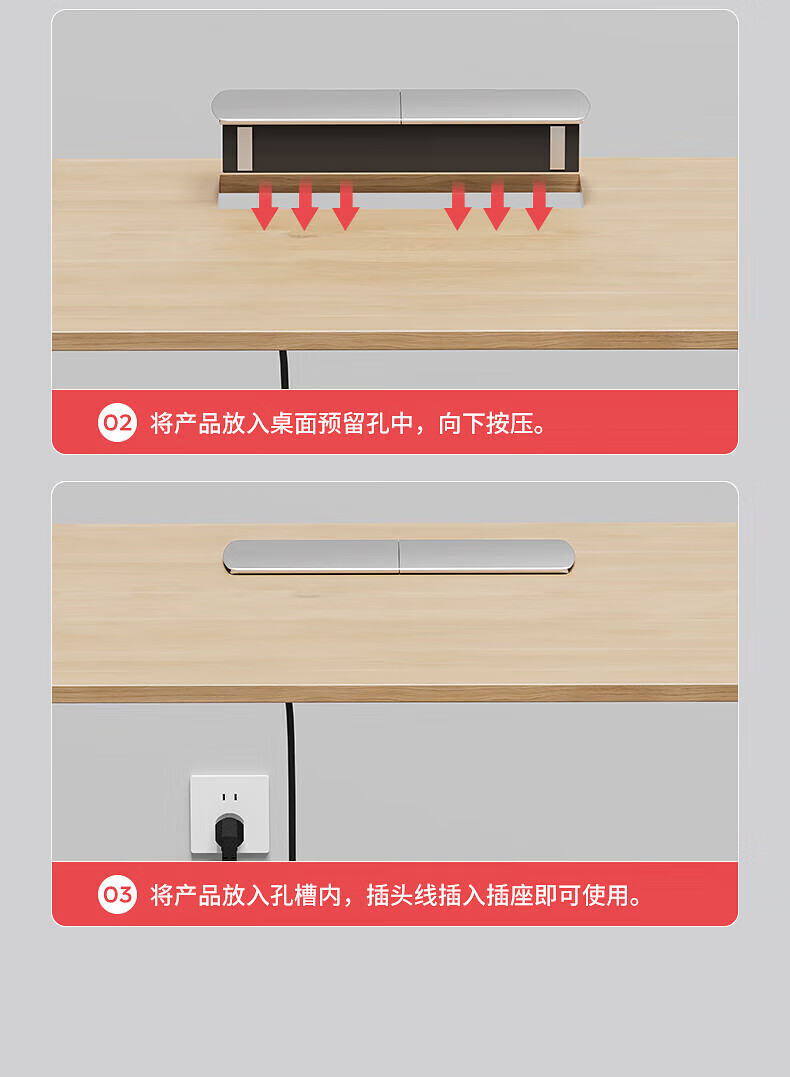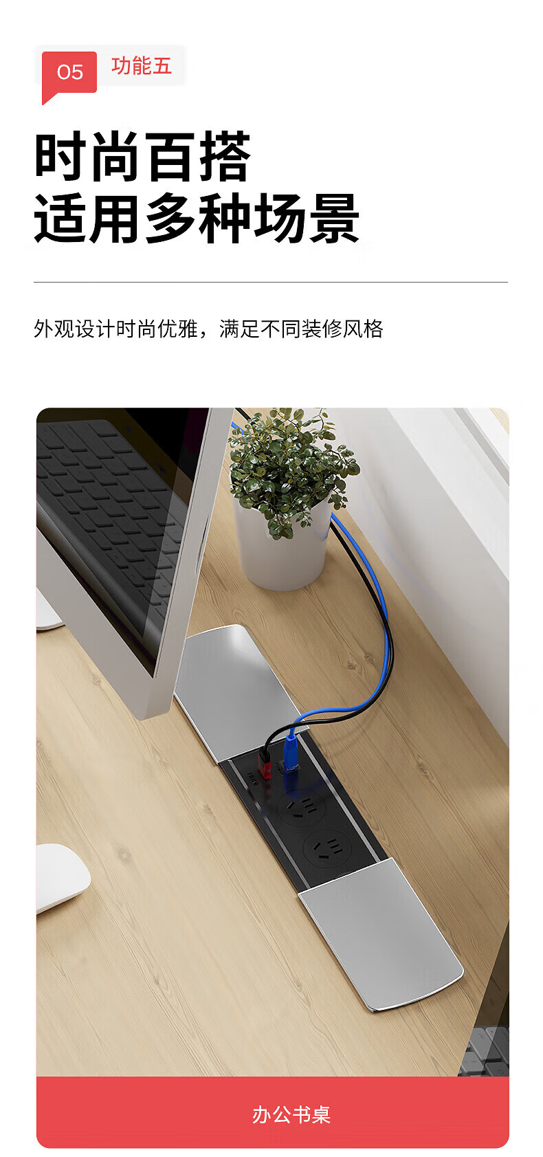 国际电工嵌入式隐藏插座滑盖岛台桌面多功能USB接线板带线办公室床头柜 银色【四位五孔】无底座和线