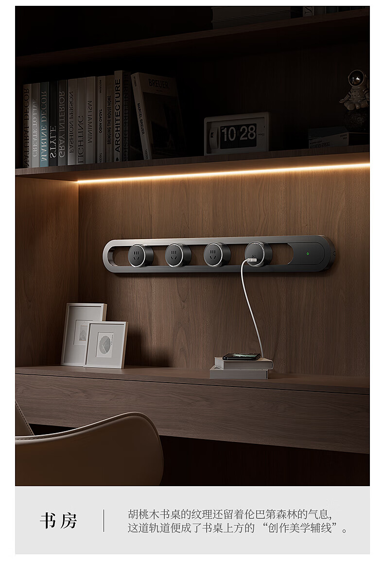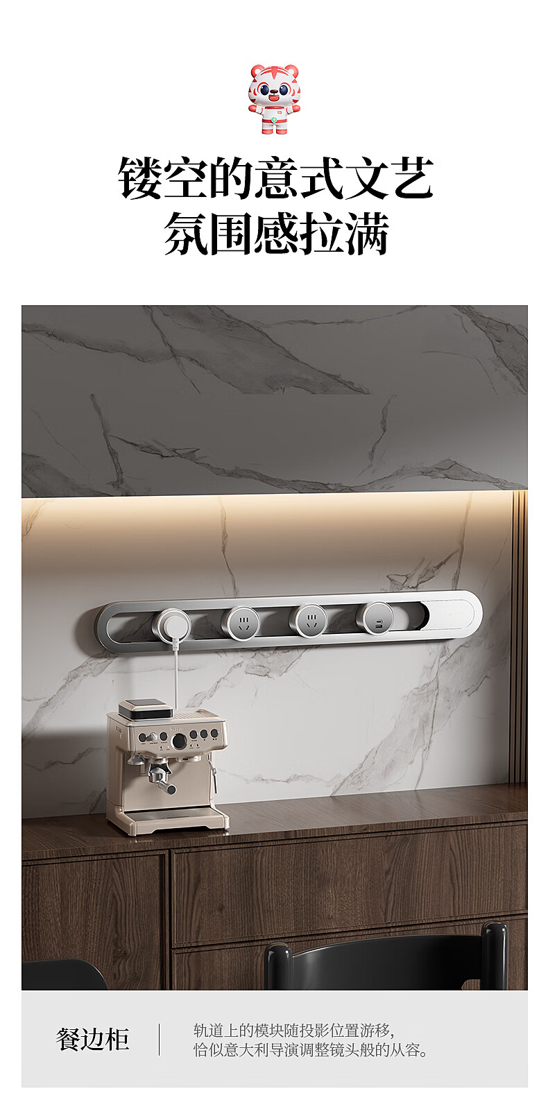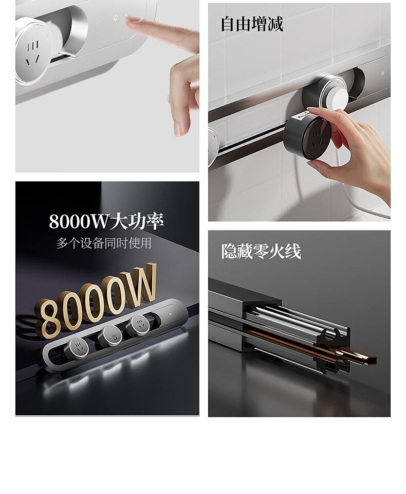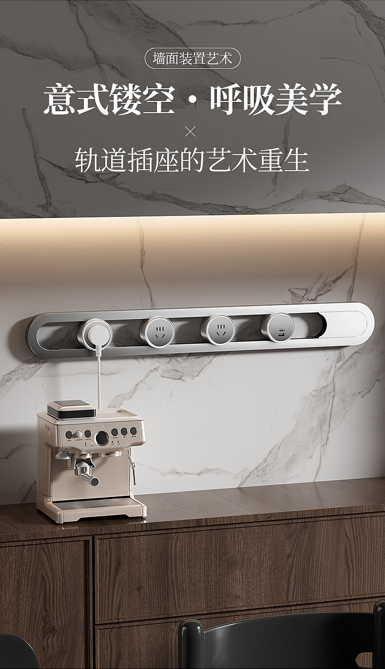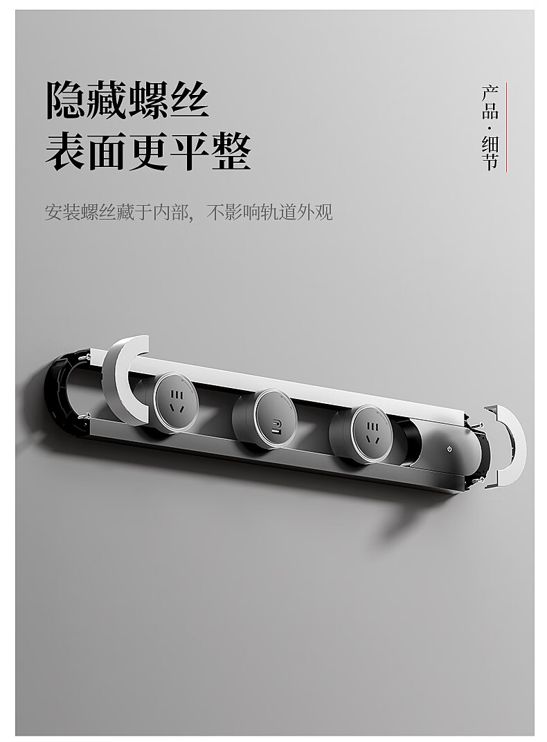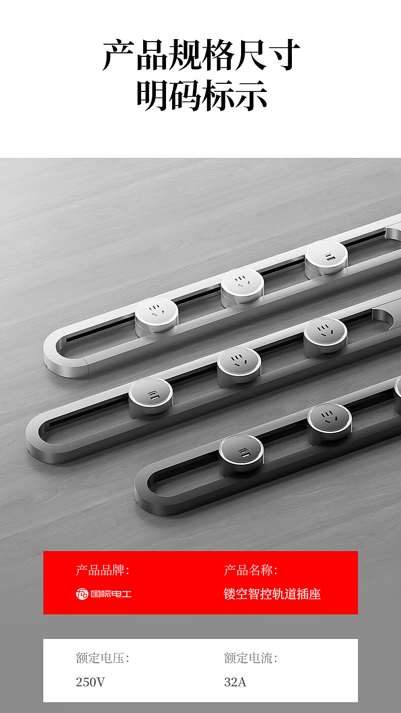国际电工轨道插座镂空明装家用高端智控餐边柜可移动导轨滑轨带开关插排 银色-40cm+2个五孔【镂空/防过载】