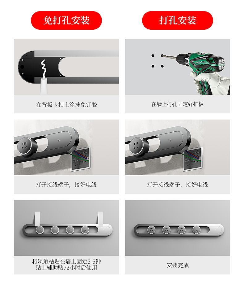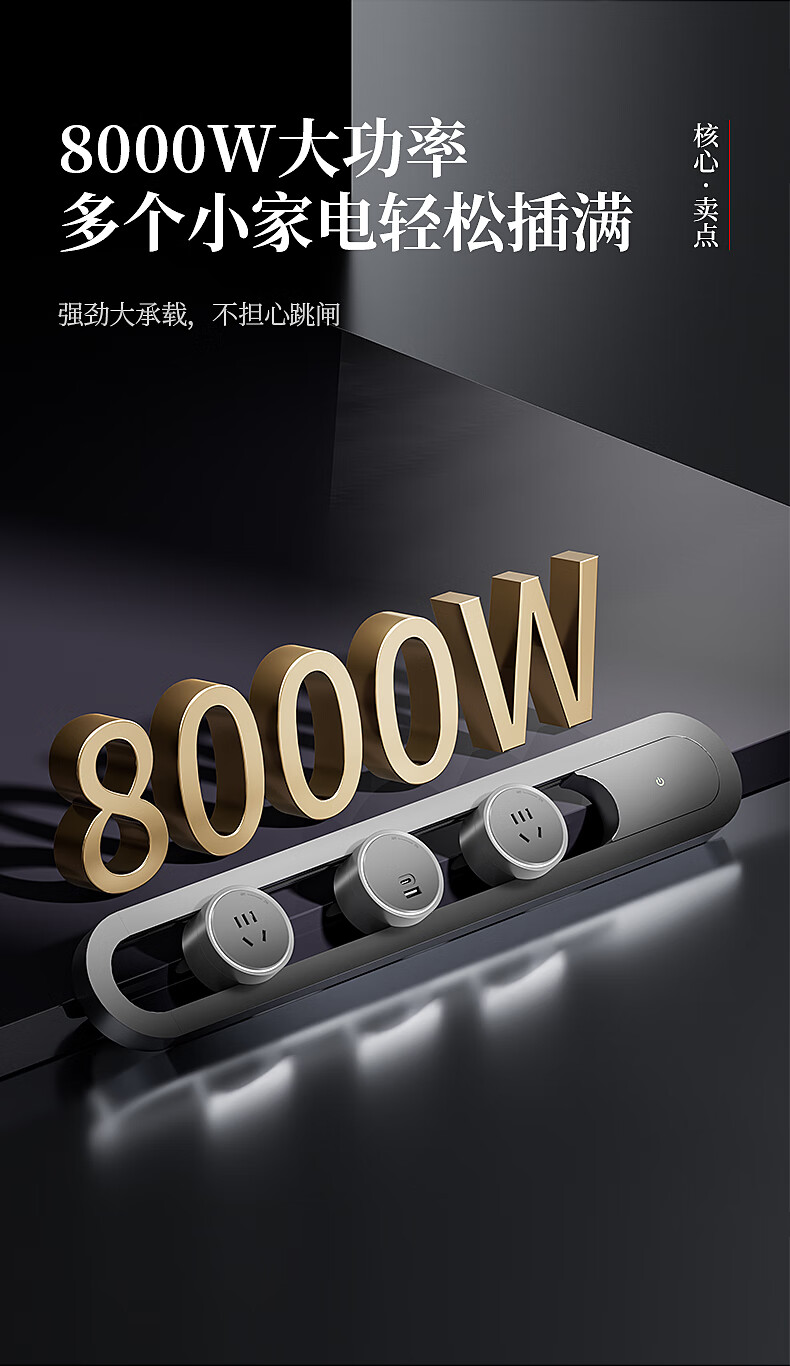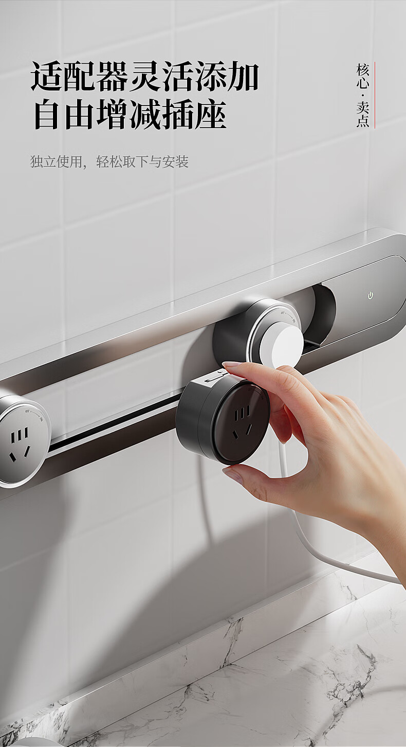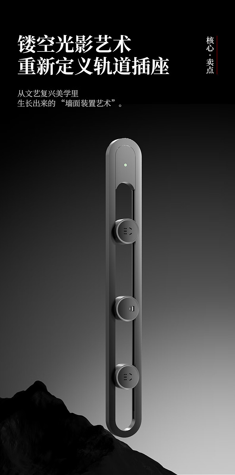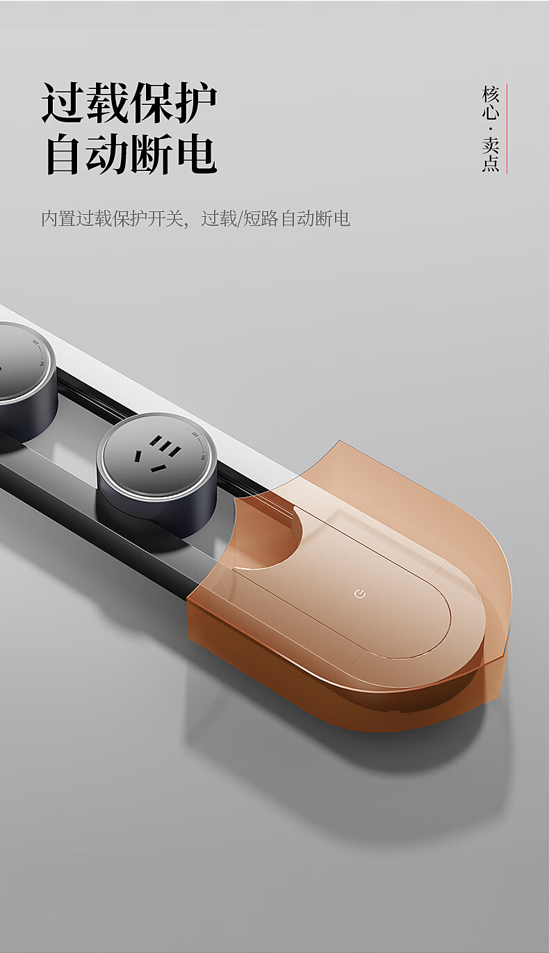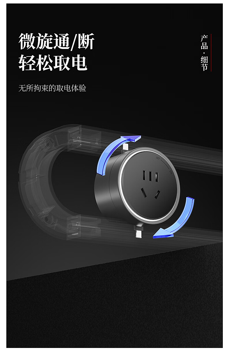 国际电工轨道插座镂空明装家用高端智控餐边柜可移动导轨滑轨带开关插排 银色-40cm+2个五孔【镂空/防过载】