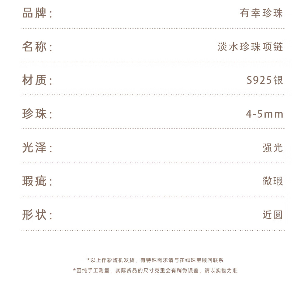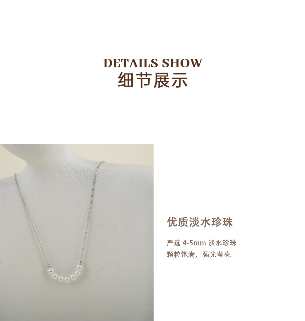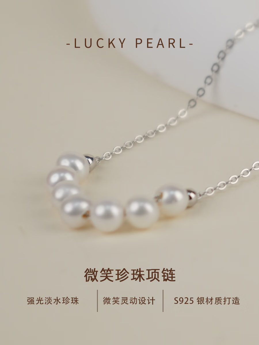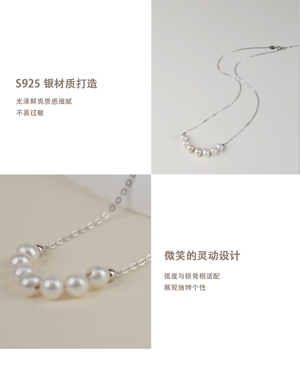 有幸珍珠项链 S925银淡水珍珠项链4-5mm微笑锁骨链颈饰送女友生日礼物 4-5mm 近圆/强光 链长约45cm