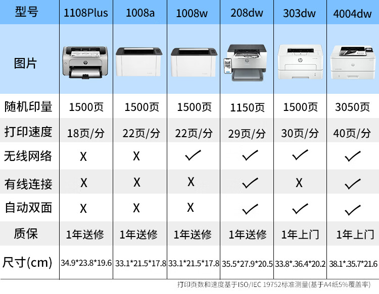 惠普(HP)P1108plus A4黑白激光打印机 家用商用办公打印机 简约小巧单打印 USB线连接 1108plus不支持Win8/7/MacOS系统