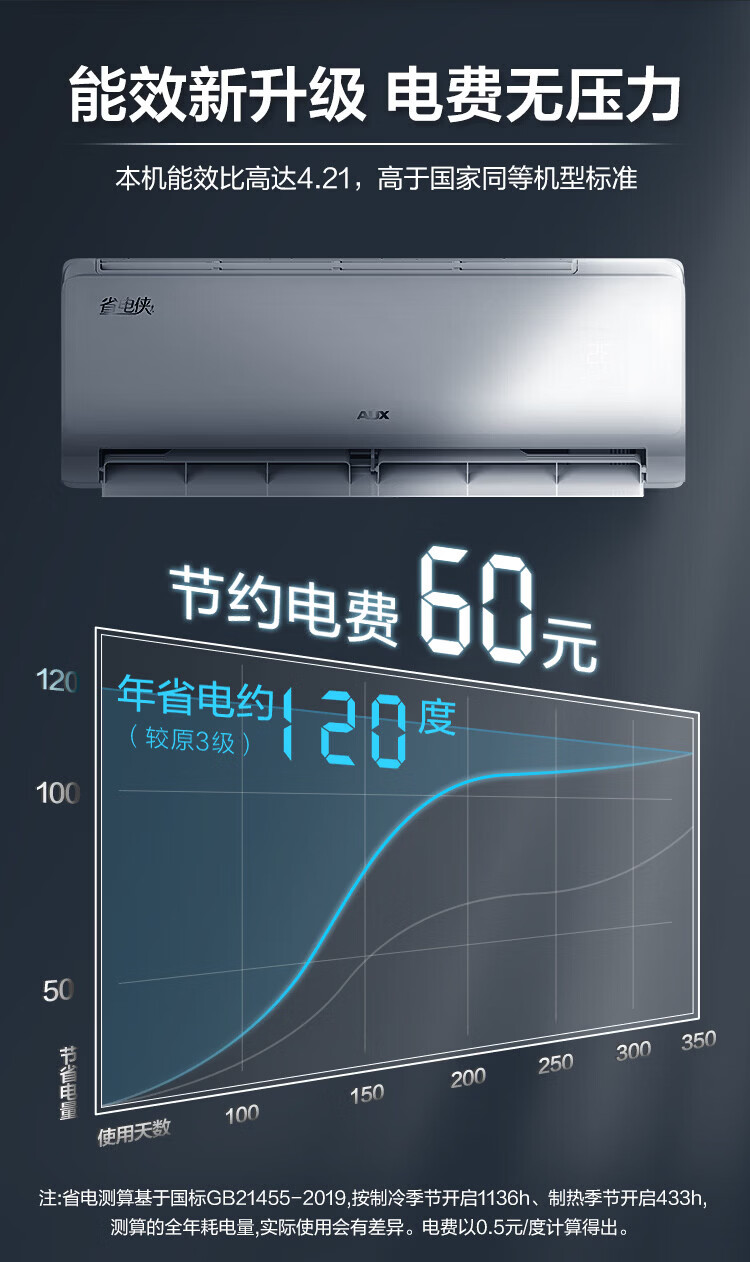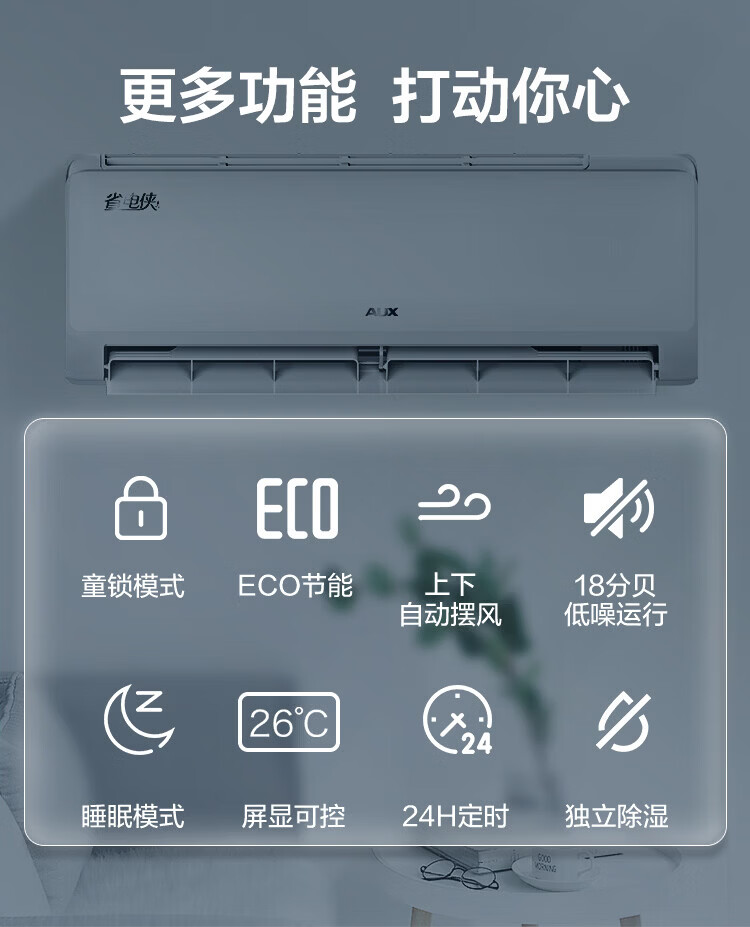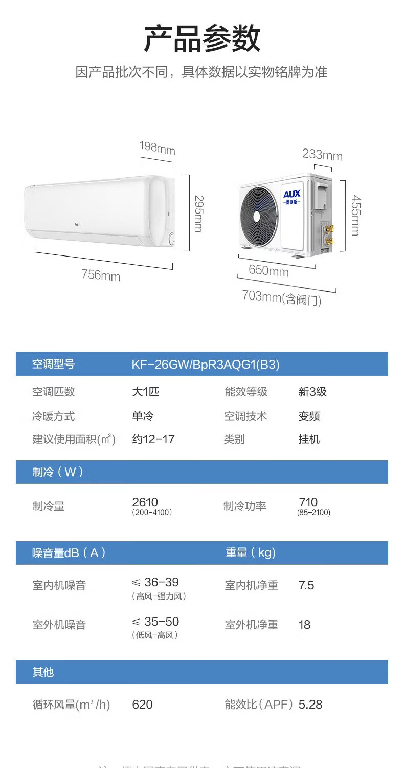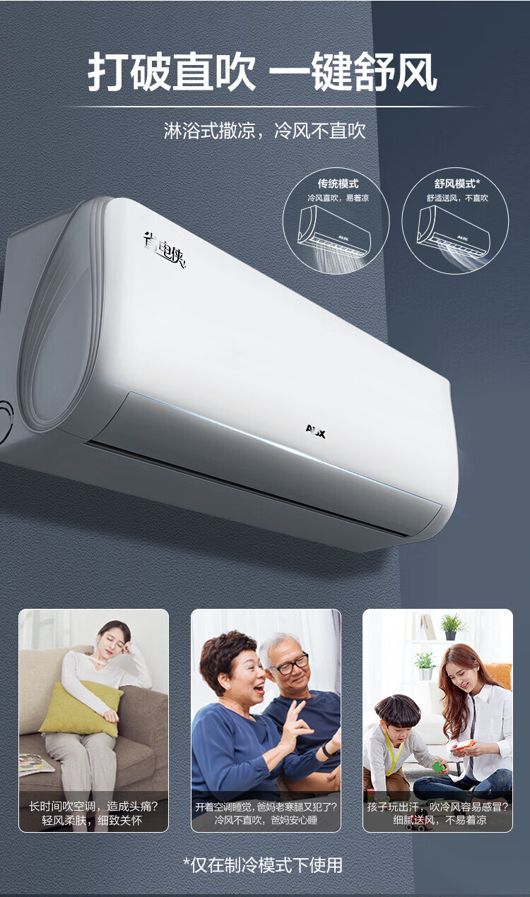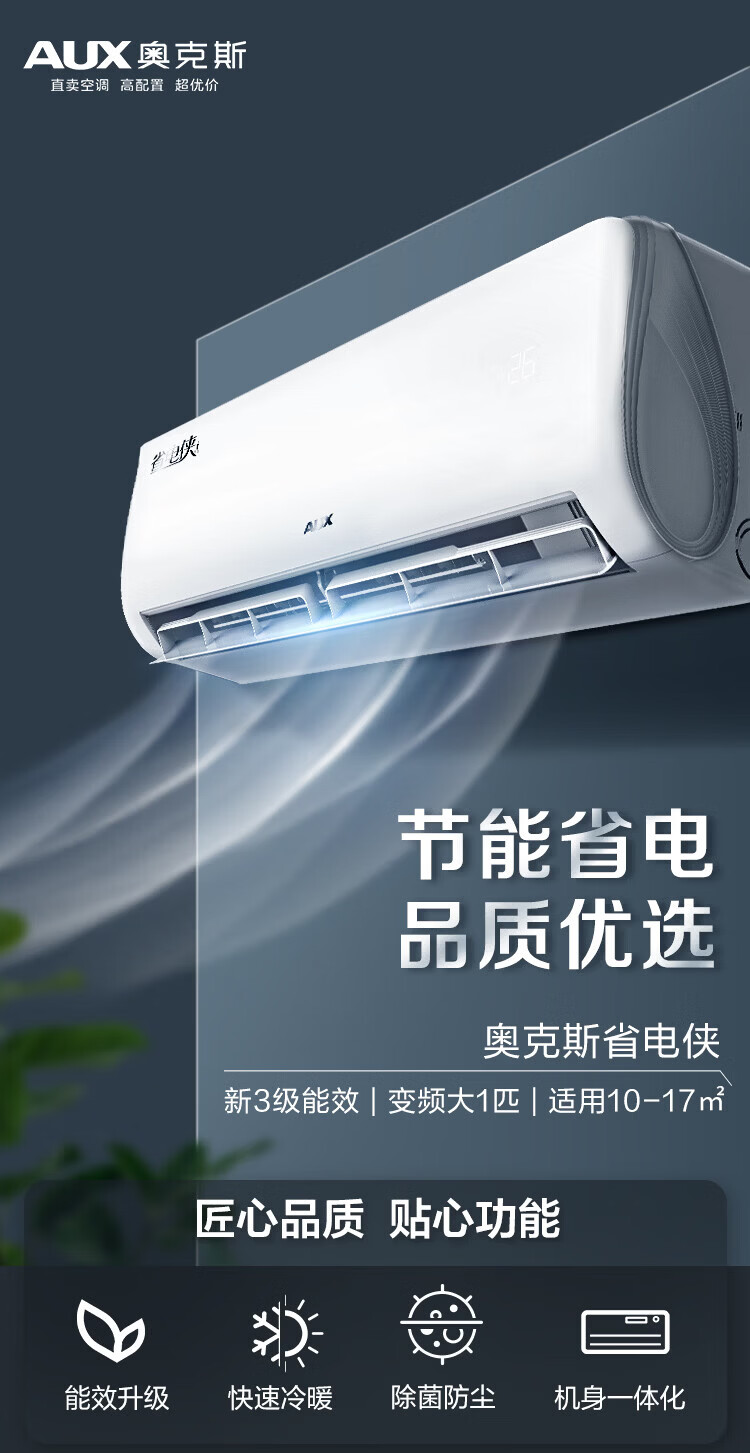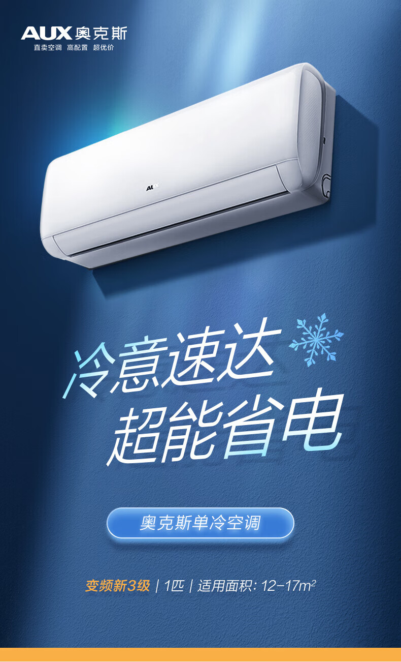 奥克斯(AUX)空调挂机大1匹/1.5匹 新一级/三级能效 变频冷暖 自清洁 家用卧室出租房壁挂式节能空调 以旧换新 大1匹 新三级能效【单制冷空调】10-17㎡