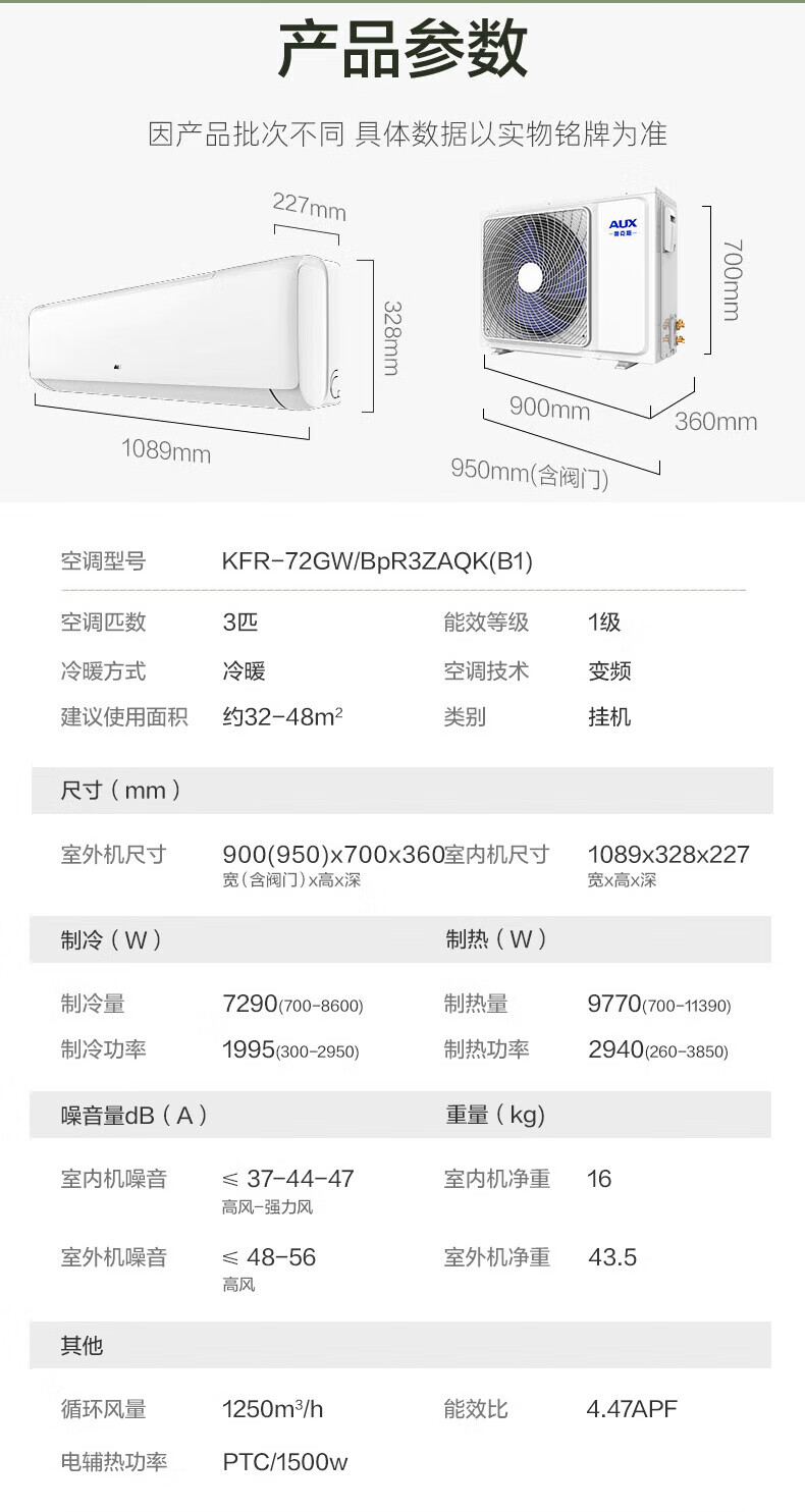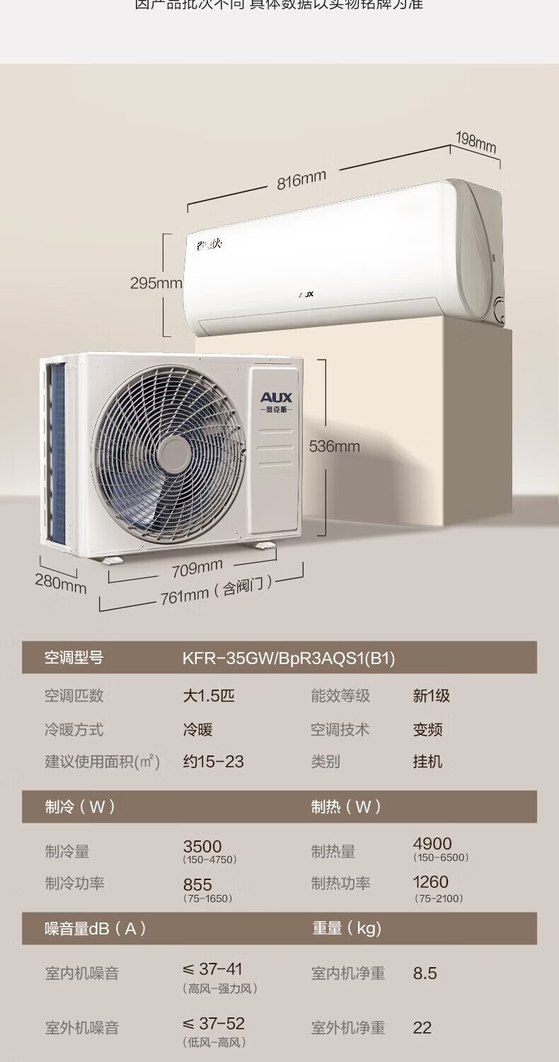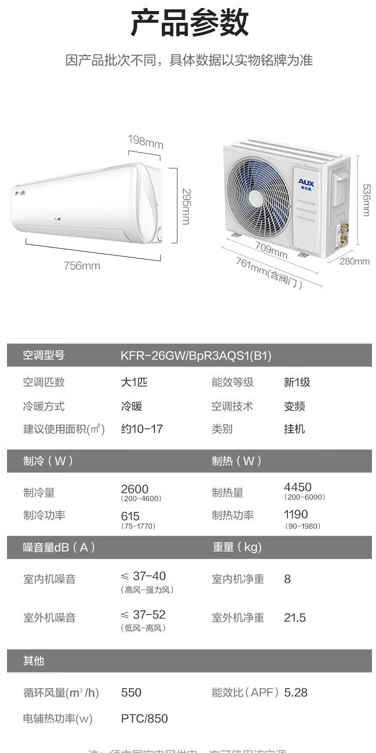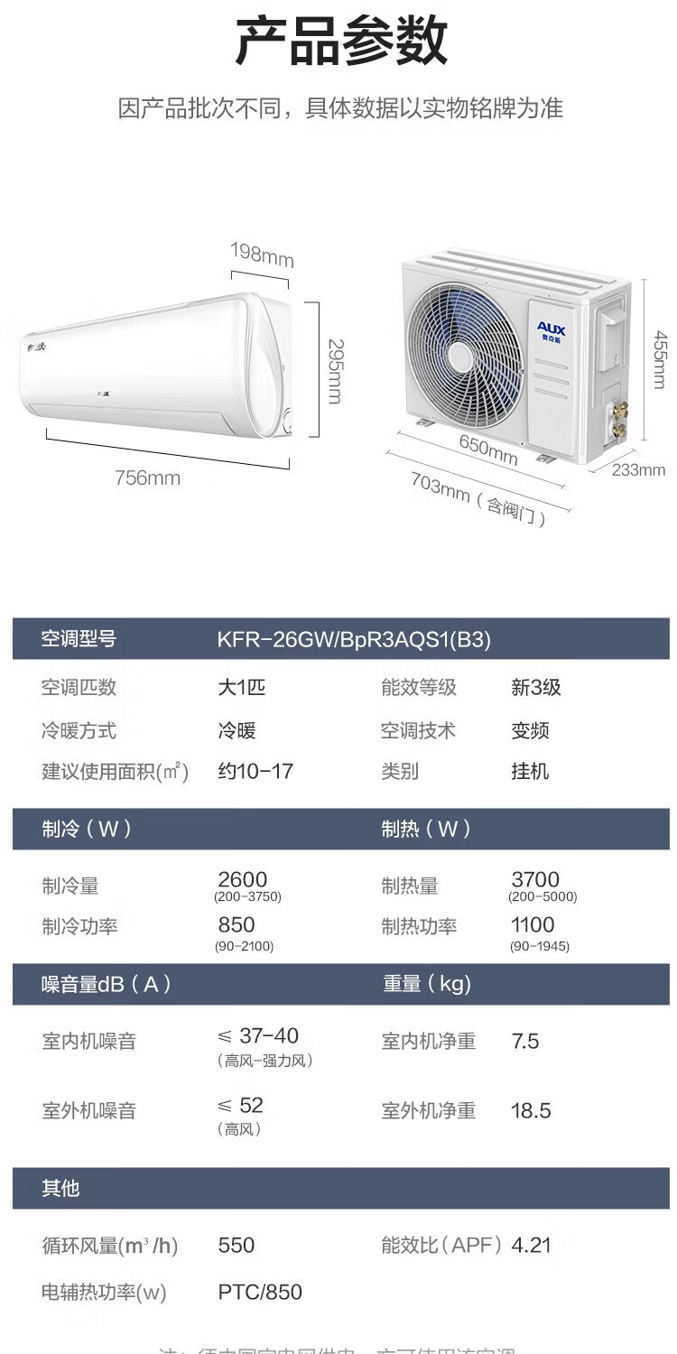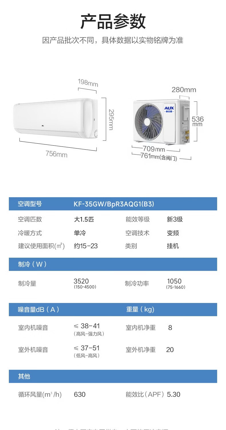 奥克斯(AUX)空调挂机大1匹/1.5匹 新一级/三级能效 变频冷暖 自清洁 家用卧室出租房壁挂式节能空调 以旧换新 大1匹 新三级能效【单制冷空调】10-17㎡