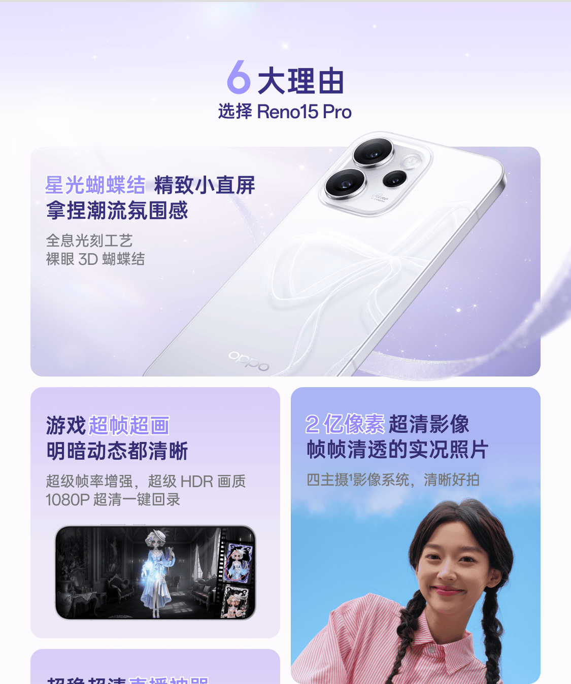 OPPO Reno15 Pro 12GB+256GB 星光蝴蝶结 2亿像素 无线充电 AI实况 直播拍照 5G智能手机 新品国家补贴