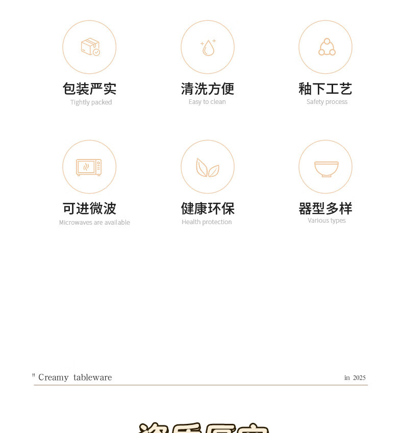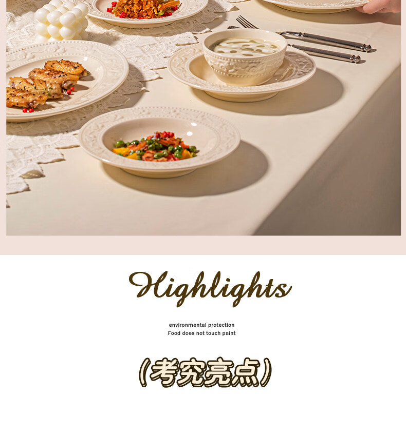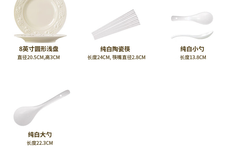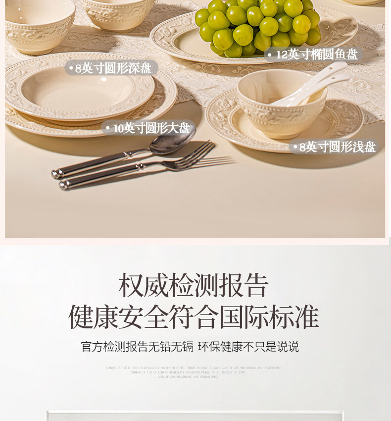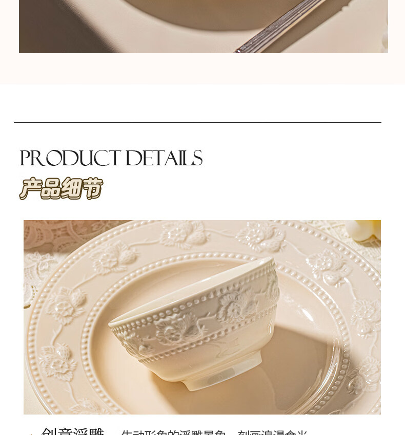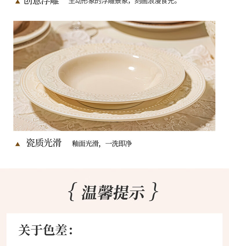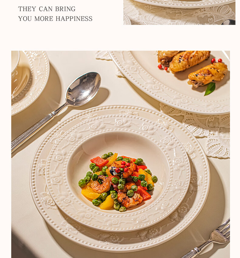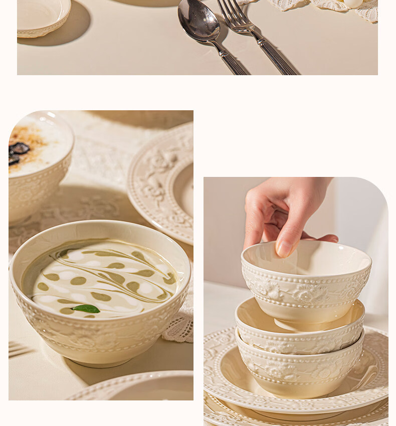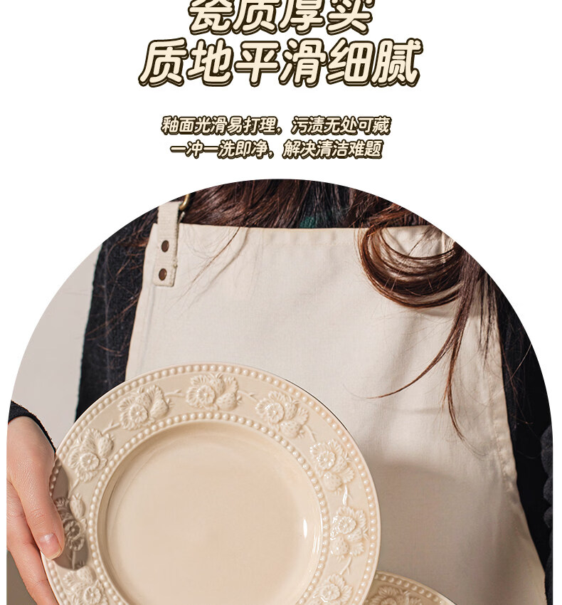 精缔陶瓷JINGDI釉下彩2025浮雕法式奶油风碗碟套装家用高颜值餐具套装碗盘乔迁 【80%用户购买】奶白6人食31件【送砂锅】