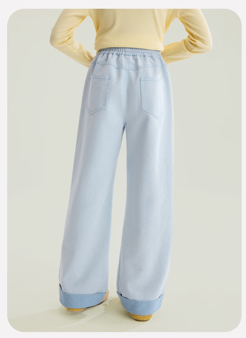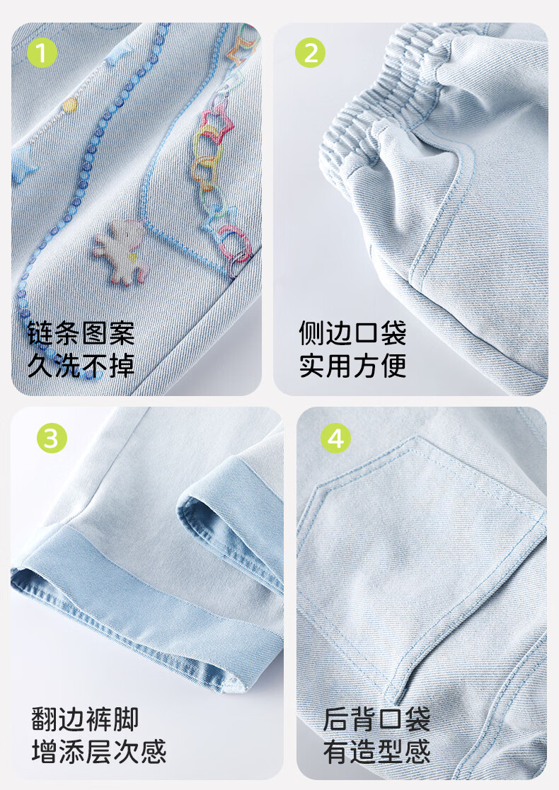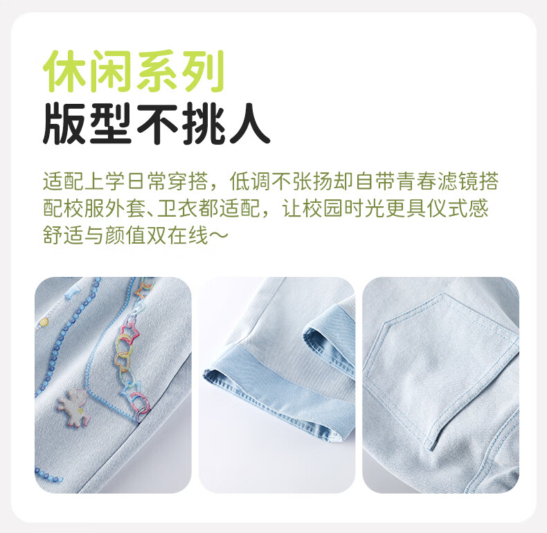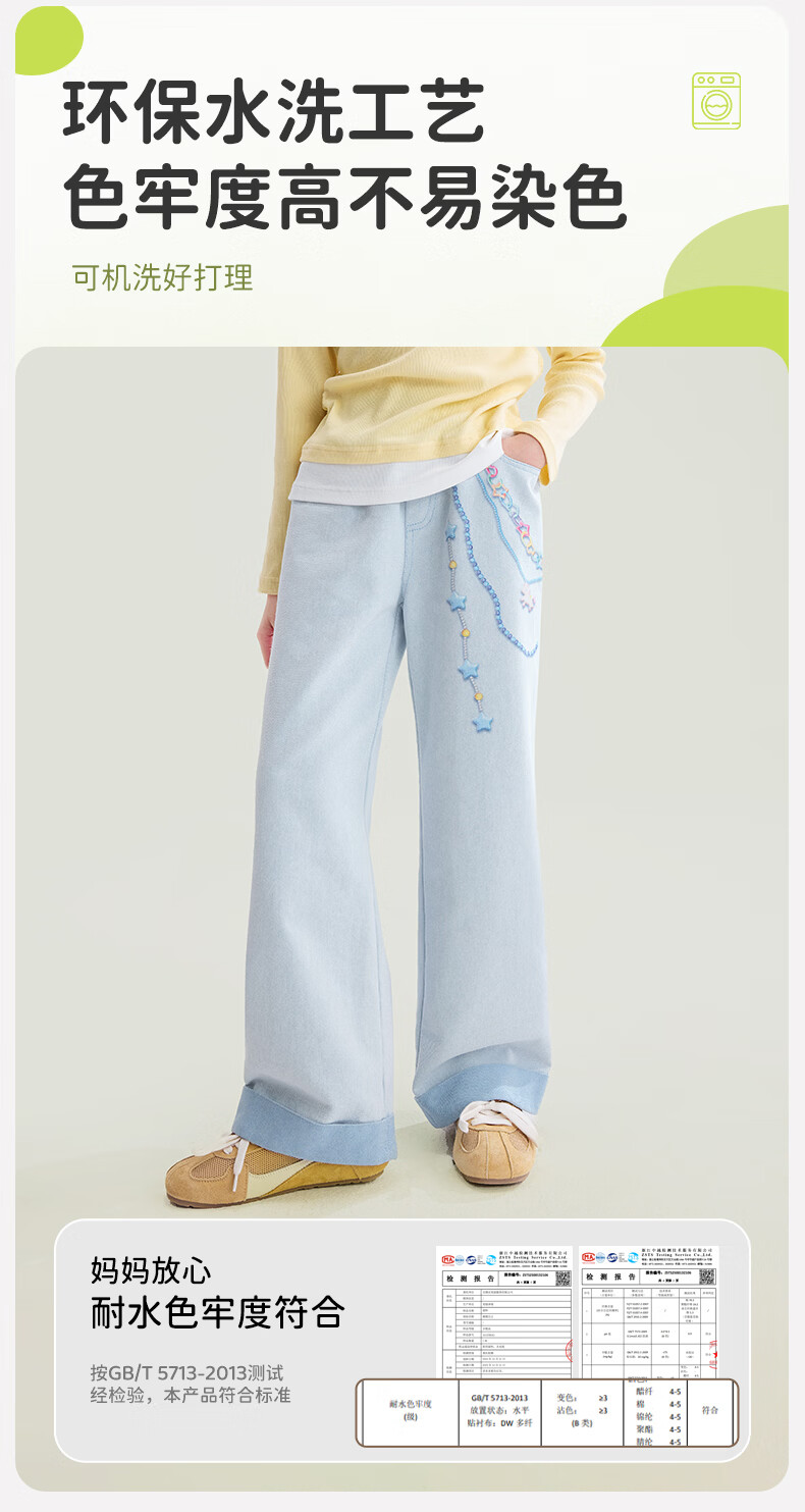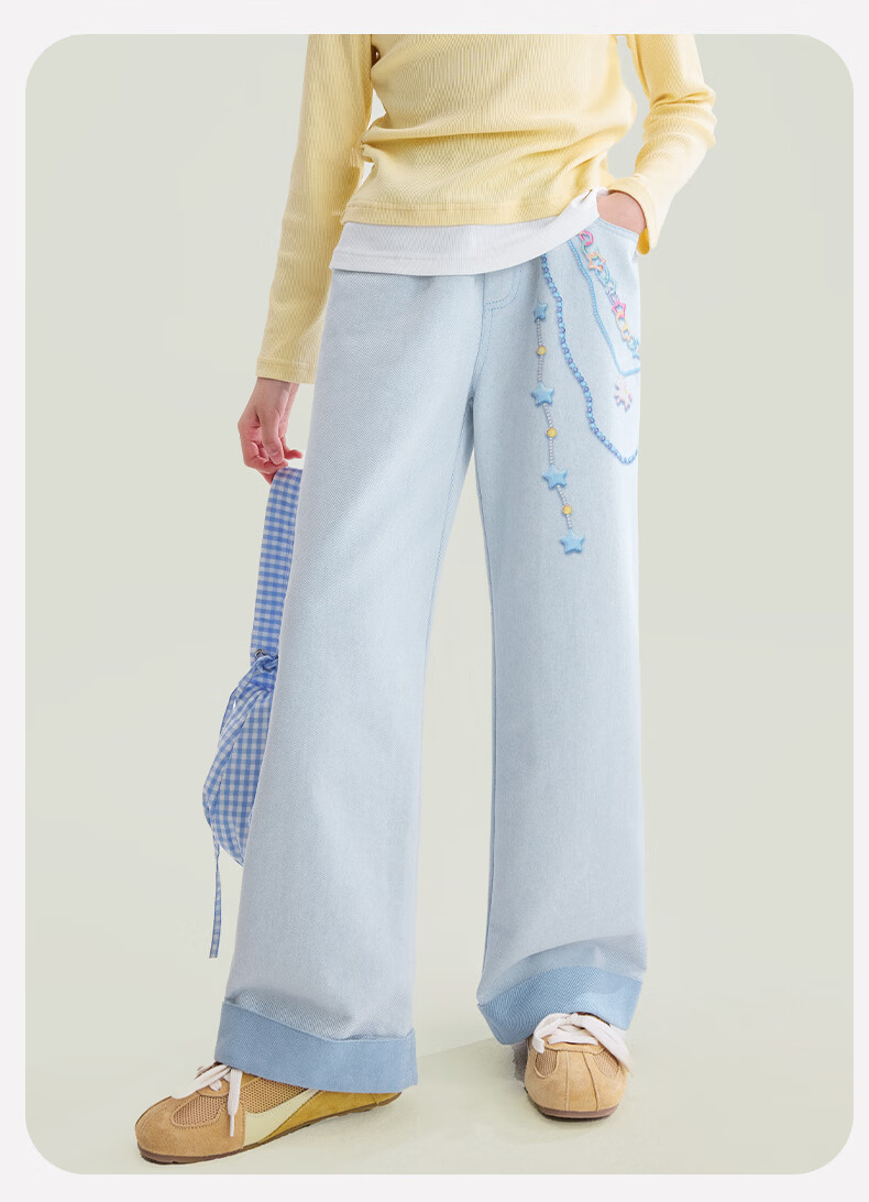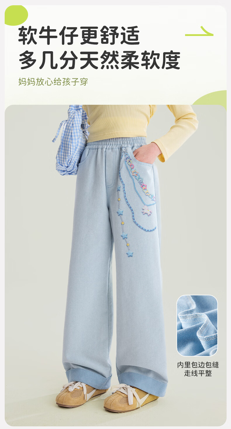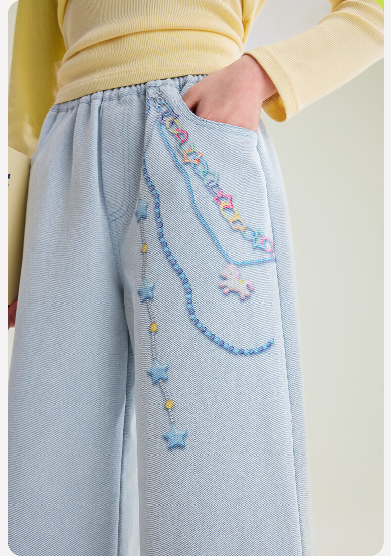 媛媛公主女童星星印花软牛仔裤26春秋新款儿童裤子中大童时尚宽松直腿裤 浅蓝色 110