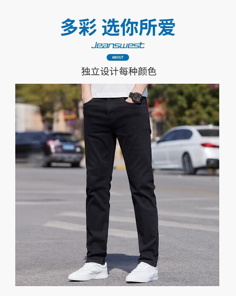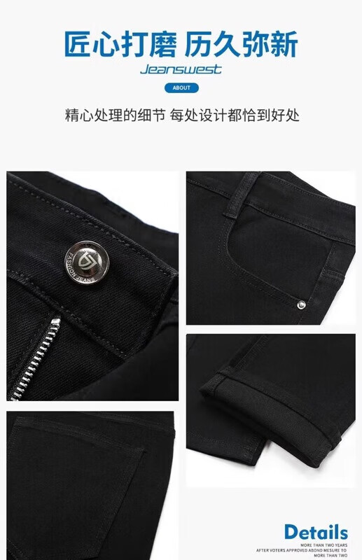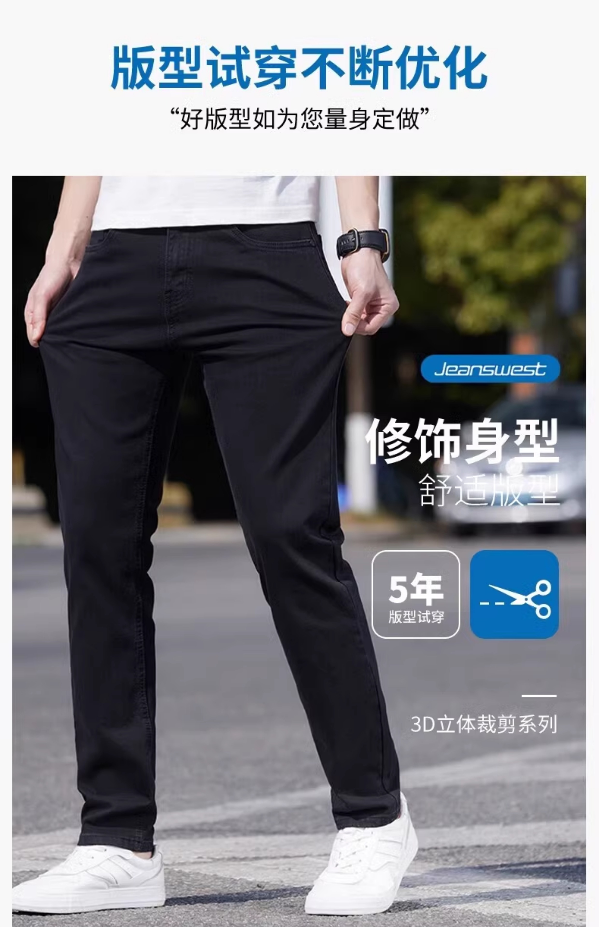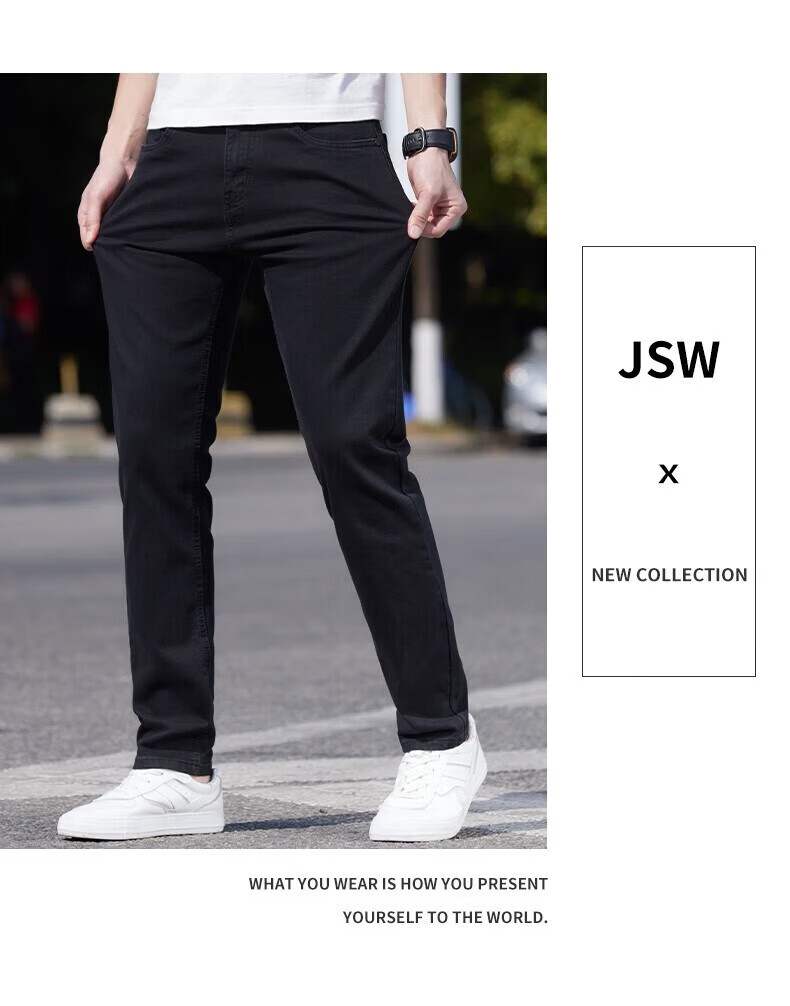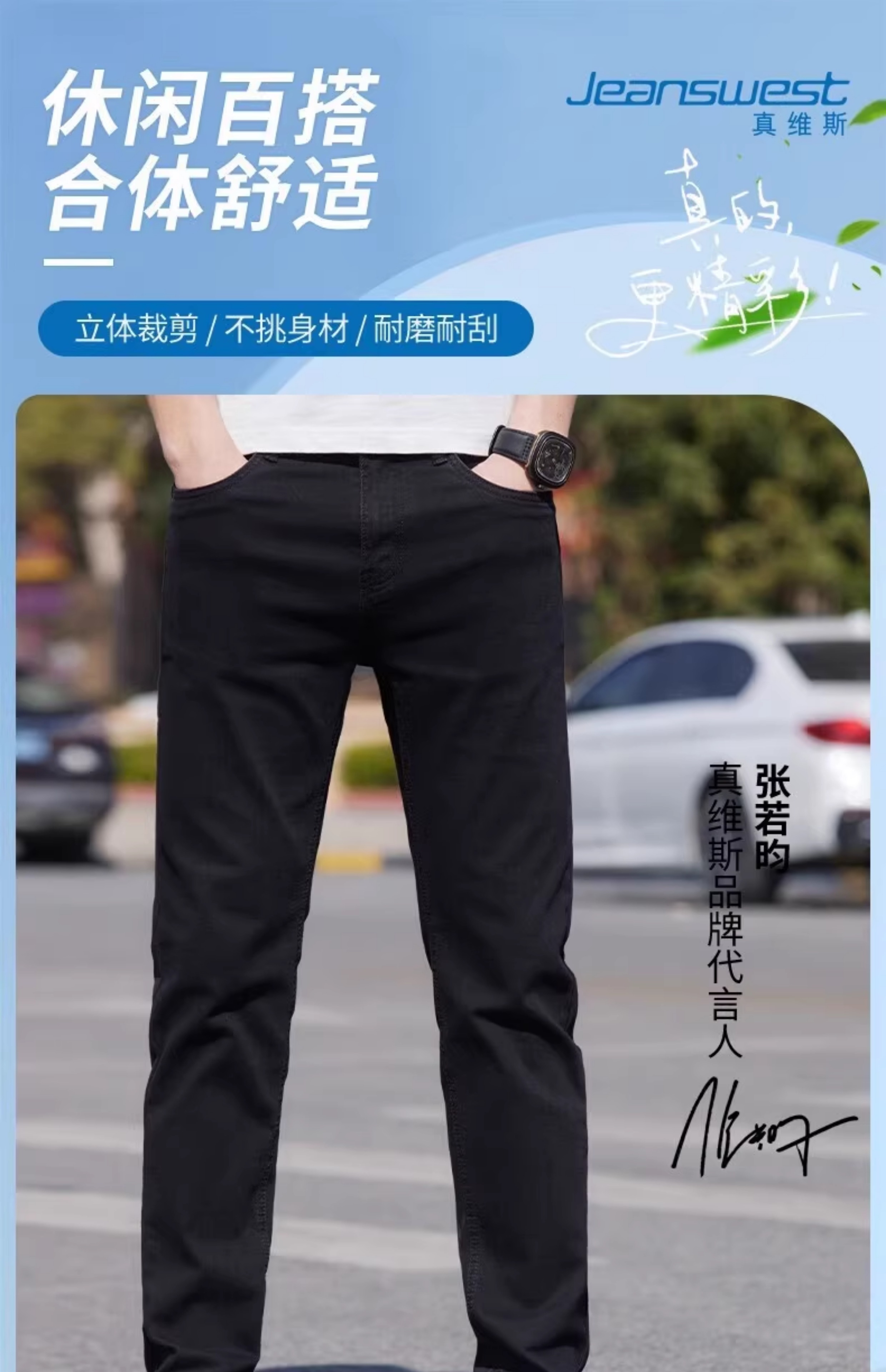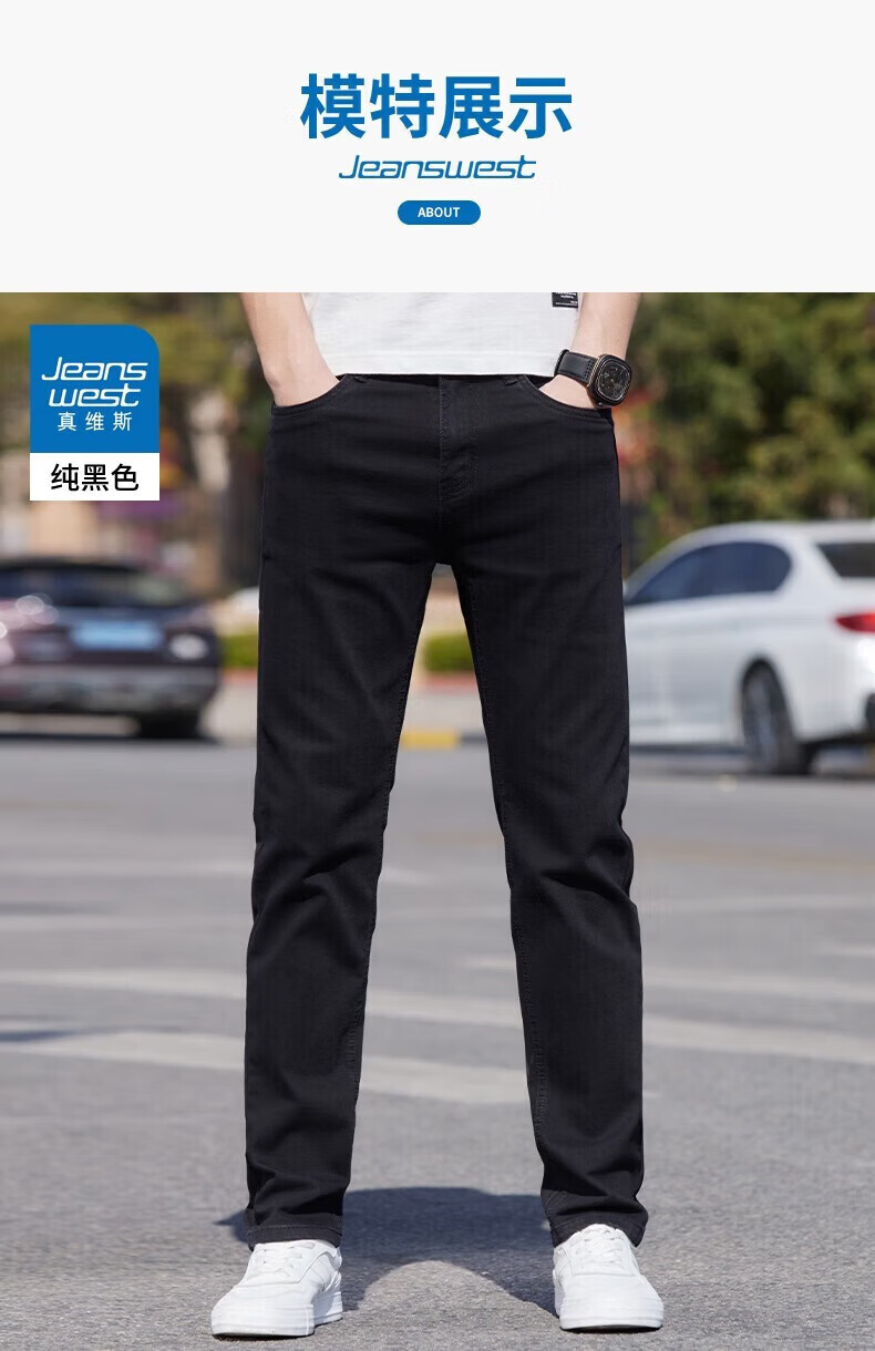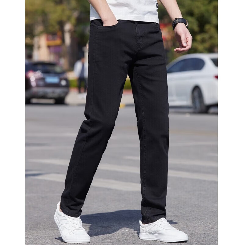 真维斯(Jeanswest)牛仔裤男直筒春季新款潮流柔软棉弹舒适纯黑男士长裤子男装 2108黑色加绒 28
