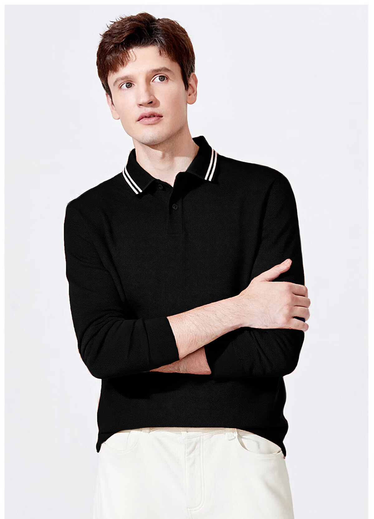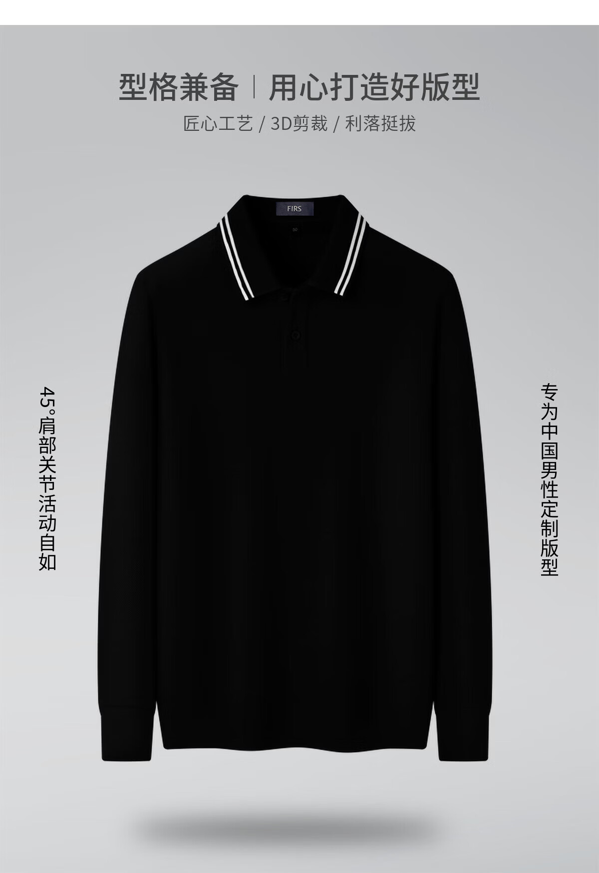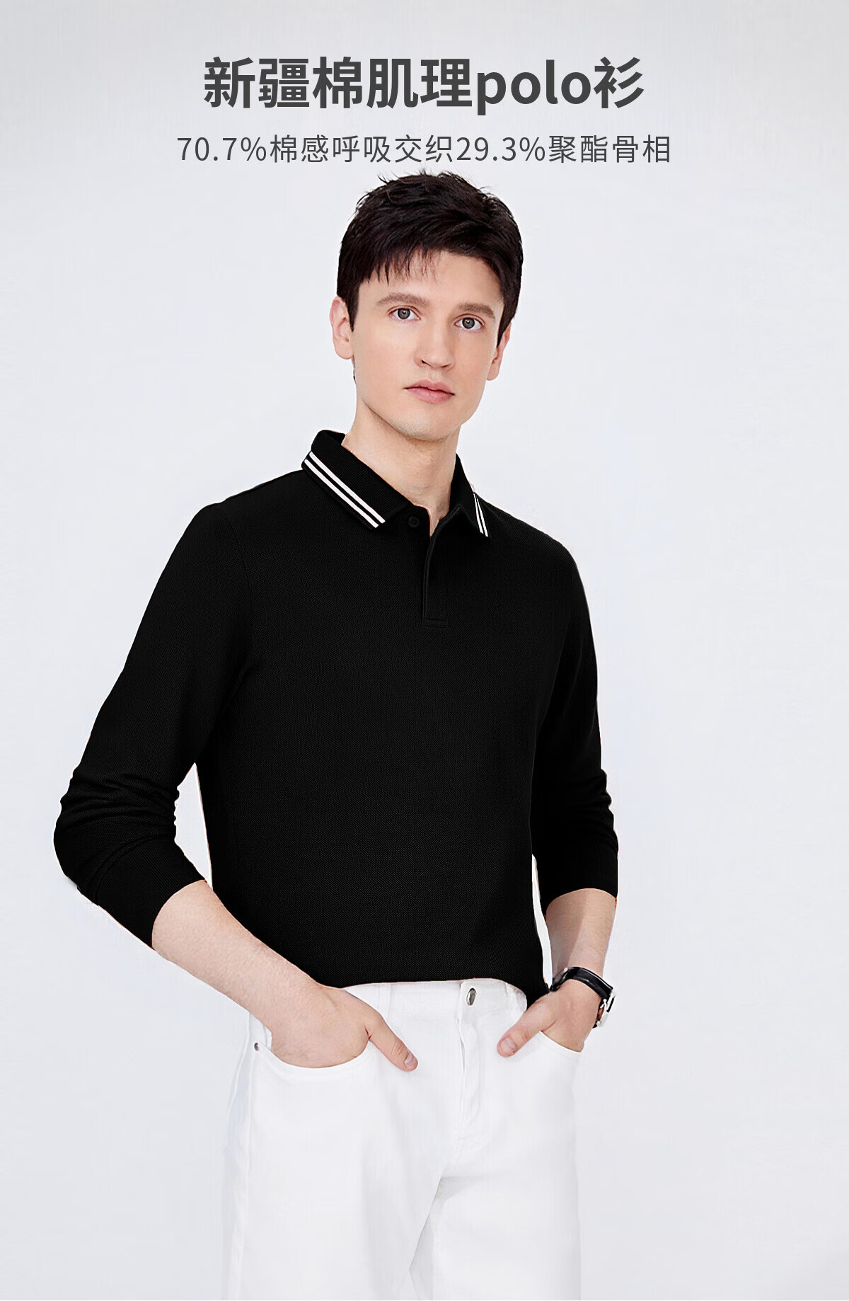 杉杉(FIRS)【天然棉柔】翻领长袖T恤男2025秋季新款百搭商务休闲POLO通勤衫 黑色 M 170/88A