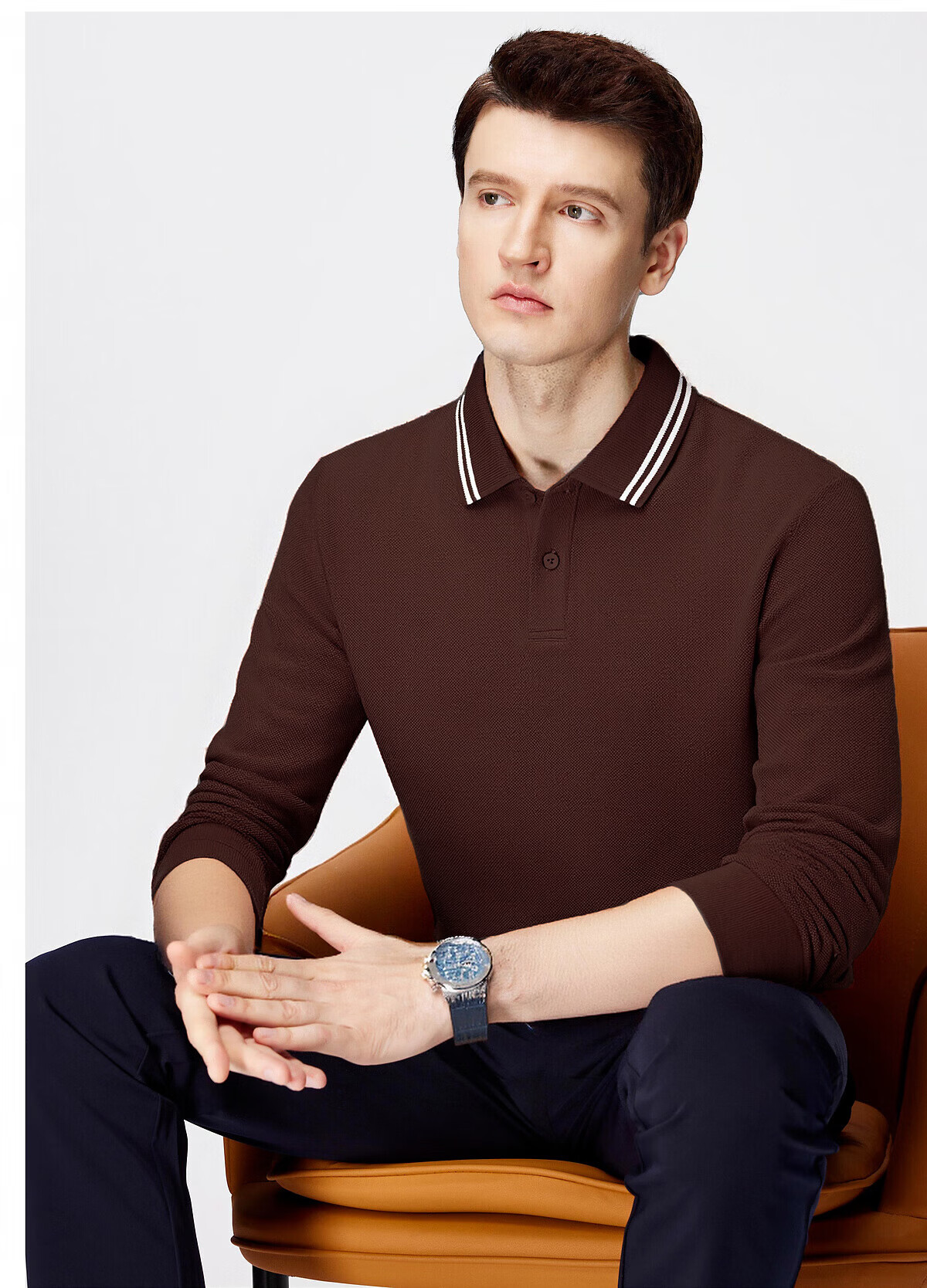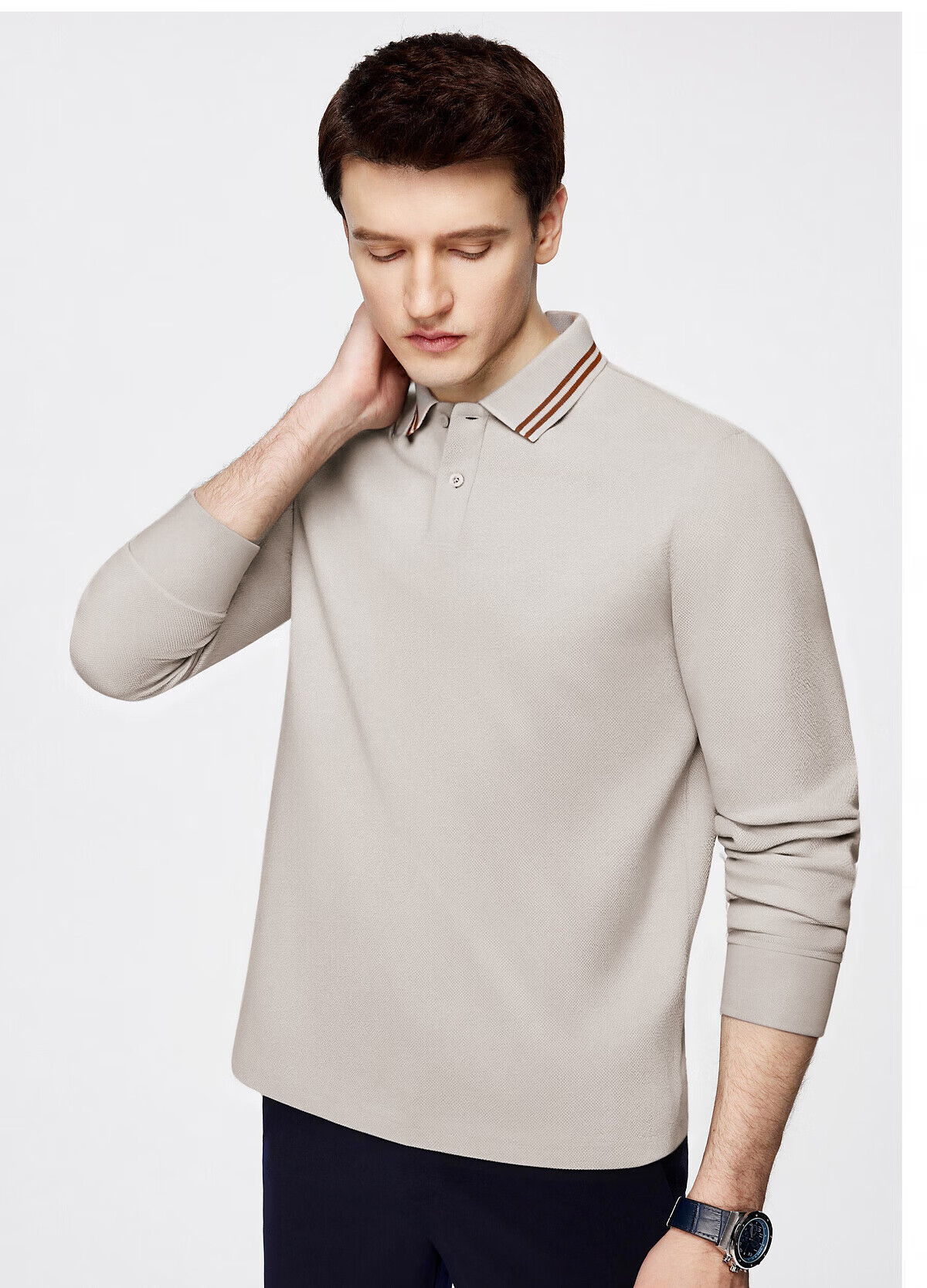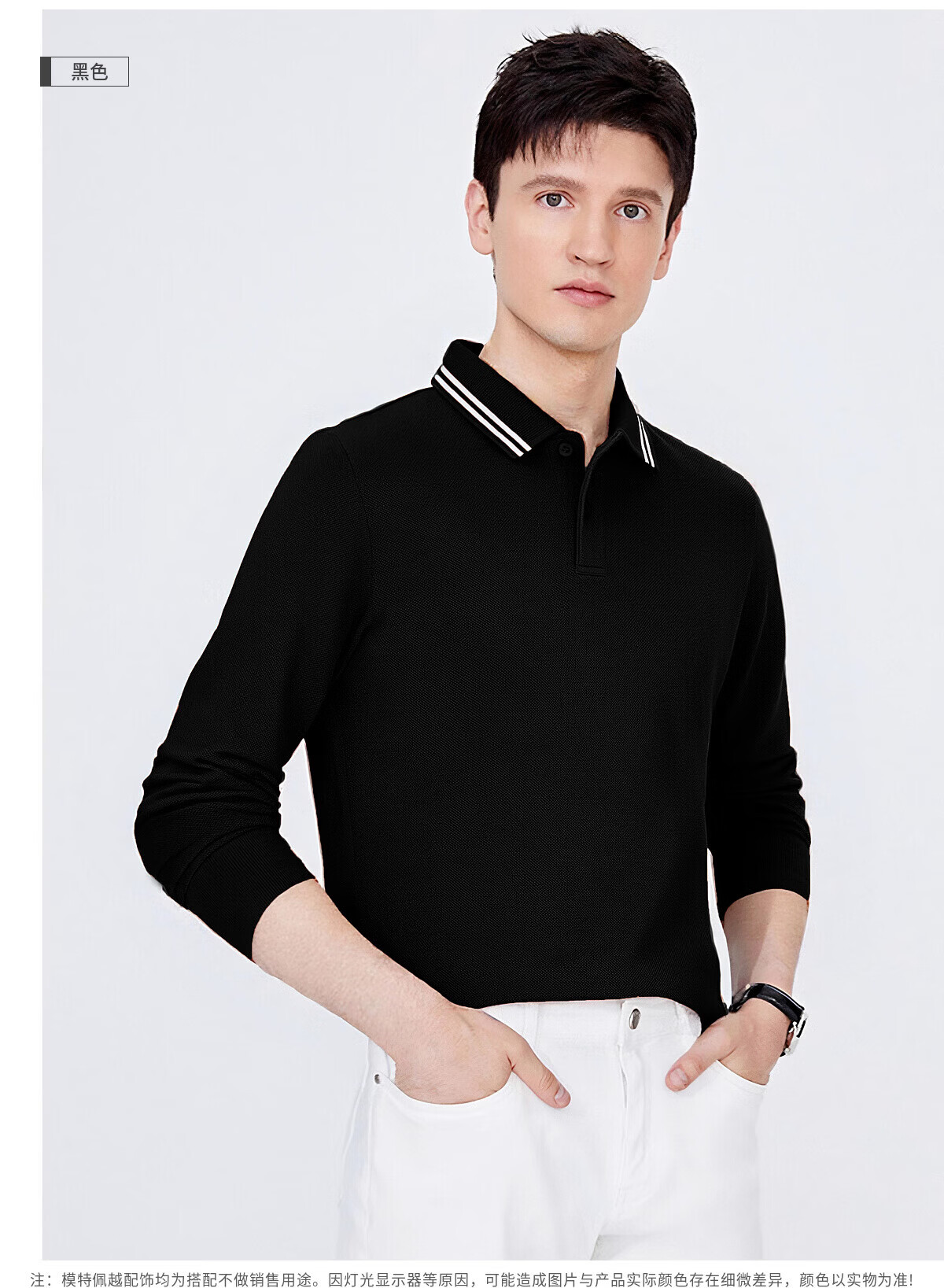杉杉(FIRS)【天然棉柔】翻领长袖T恤男2025秋季新款百搭商务休闲POLO通勤衫 黑色 M 170/88A